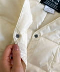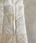 ダウンは天然由来の素材であるため、稀に濃い色の羽が混入することがあり、表面に透けて見える場合がございます。※こちらは不良品ではございません。返品や交換につきましてはご対応いたしかねますので、あらかじめご了承ください。(解消方法:少し目立つ箇所がございましたら両手で少し揉んで頂くと目立たなくなります。)