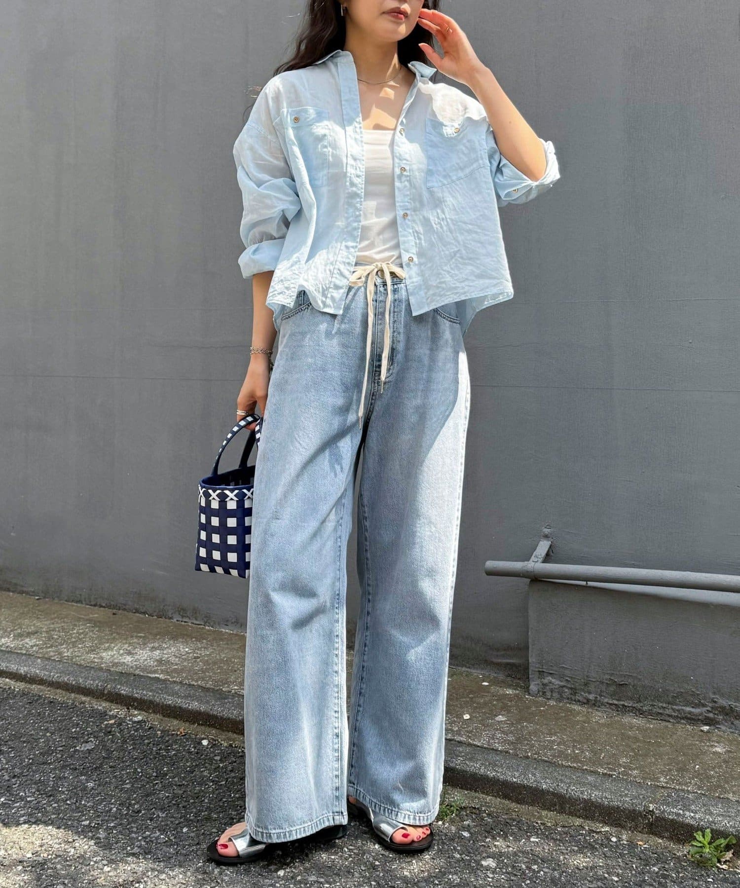 ・ウエストのコードは内側でも結べ、気分やコーデによってコードを見せたり、コードを内側で結んでスッキリ見えも叶います
