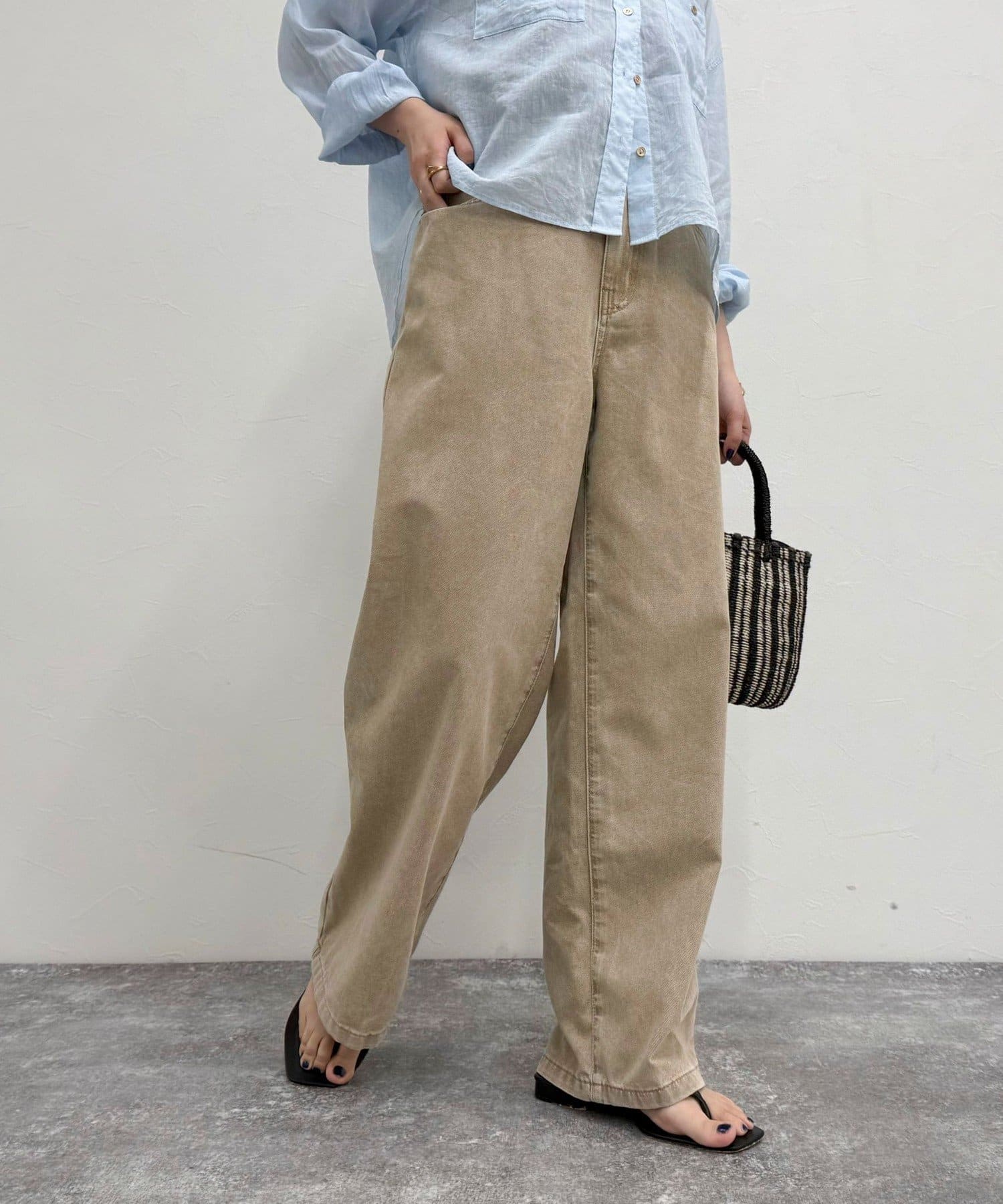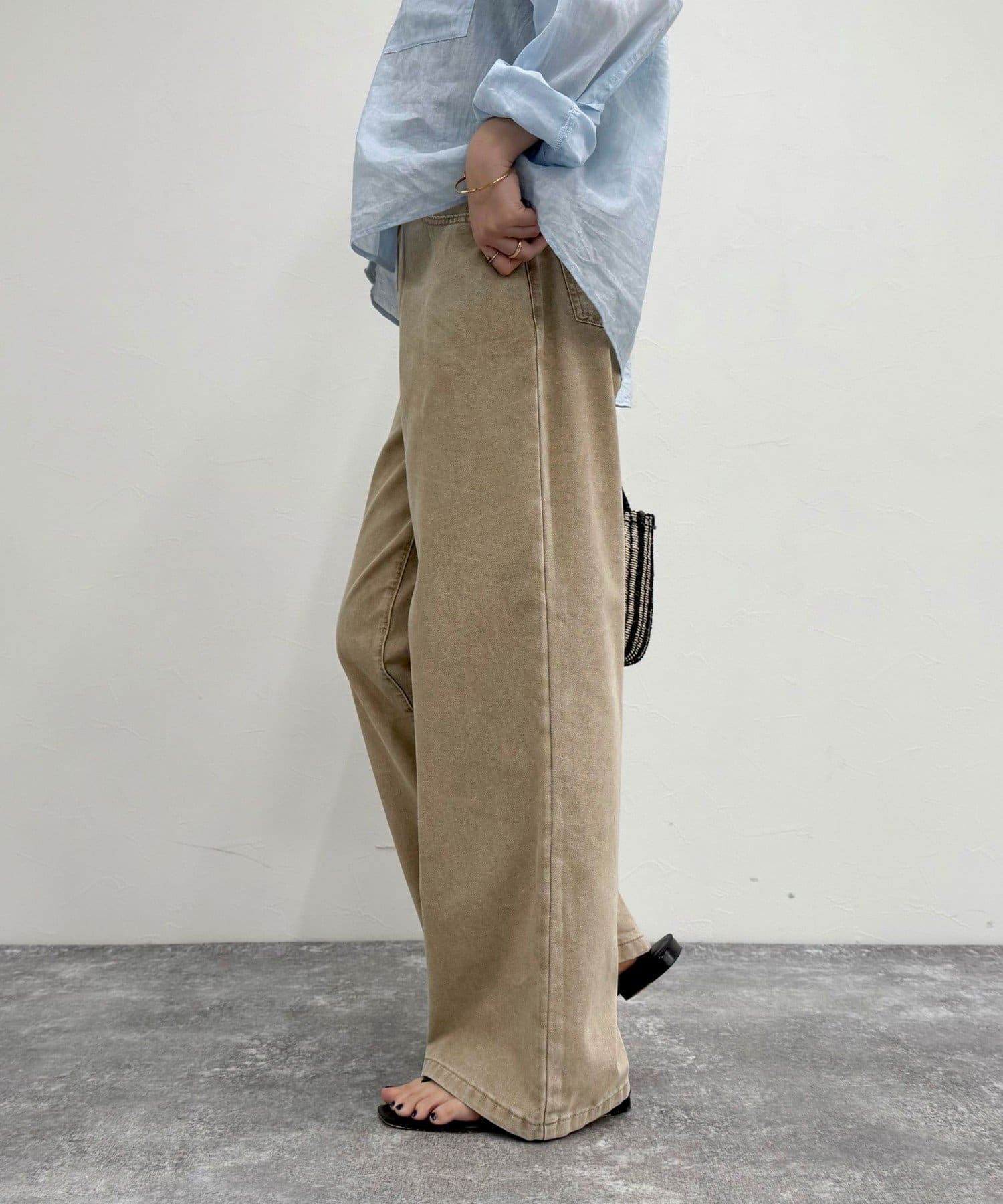 独特な色感が魅力的なブリーチデニム5ポケイージーパンツ