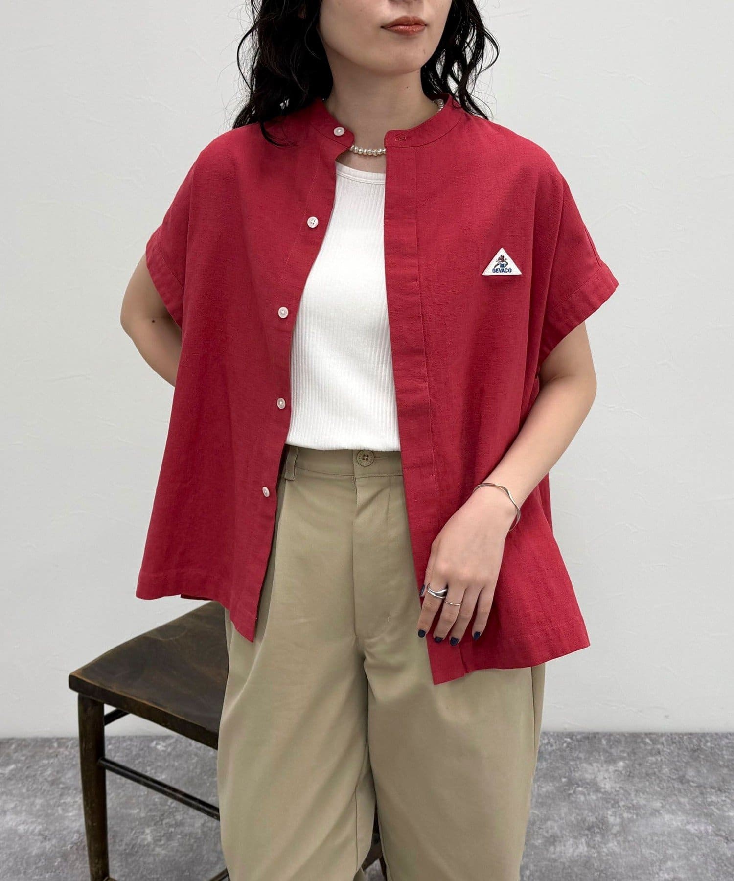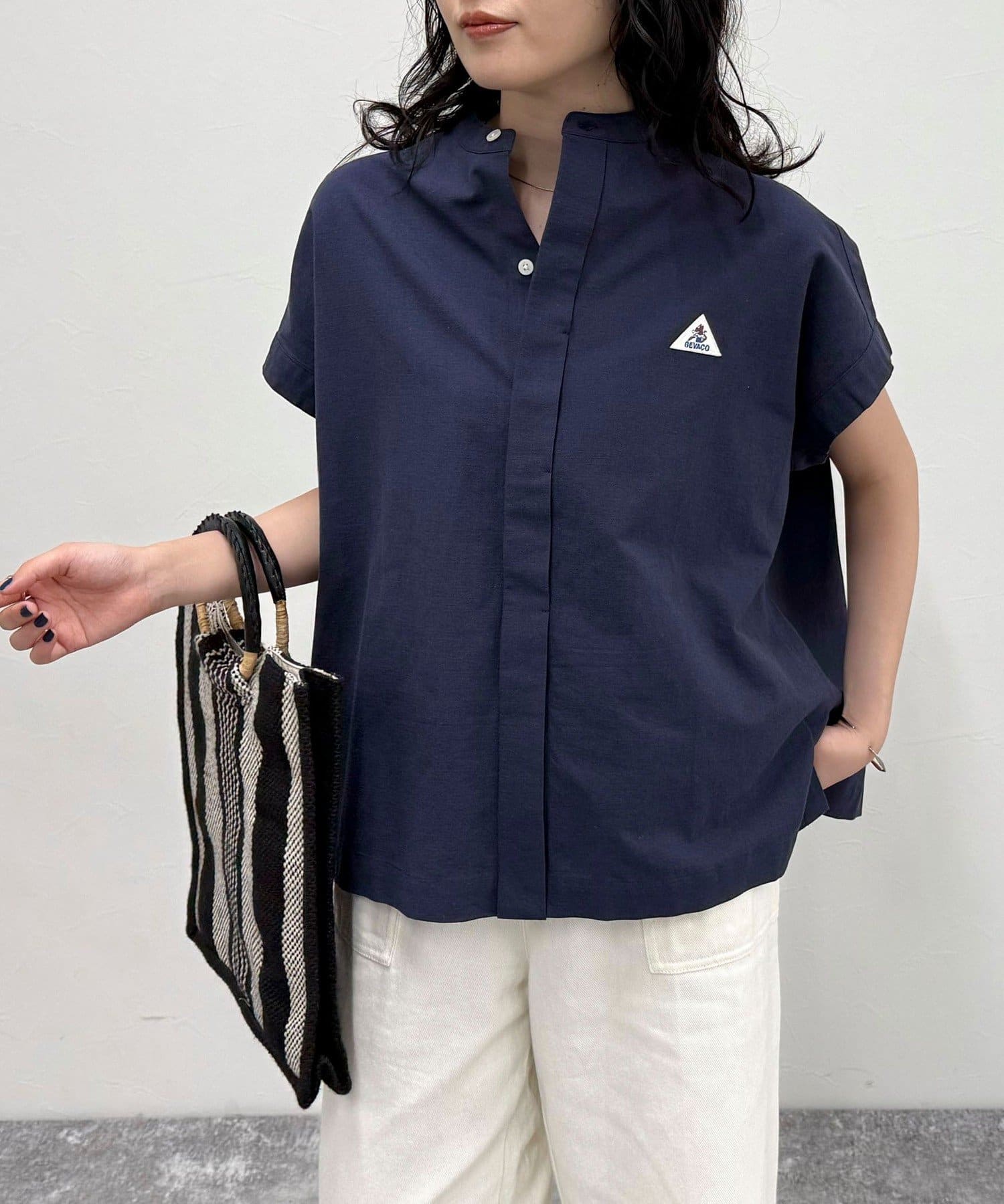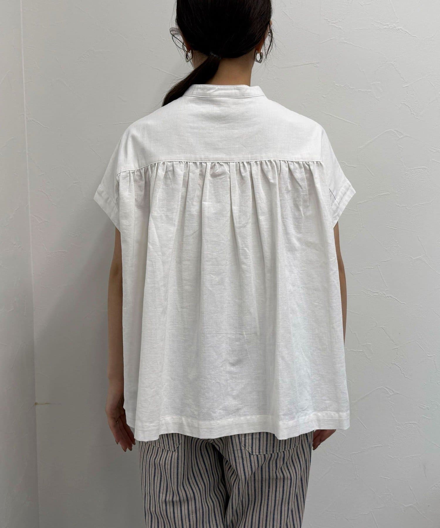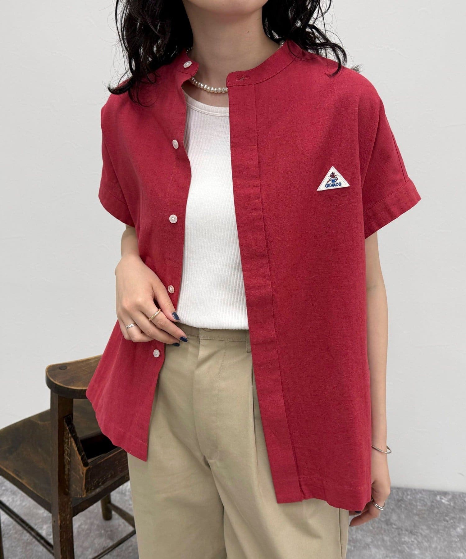 【GEVACO/ゲバコ】バンドカラーフライフロントフレンチスリーブシャツ