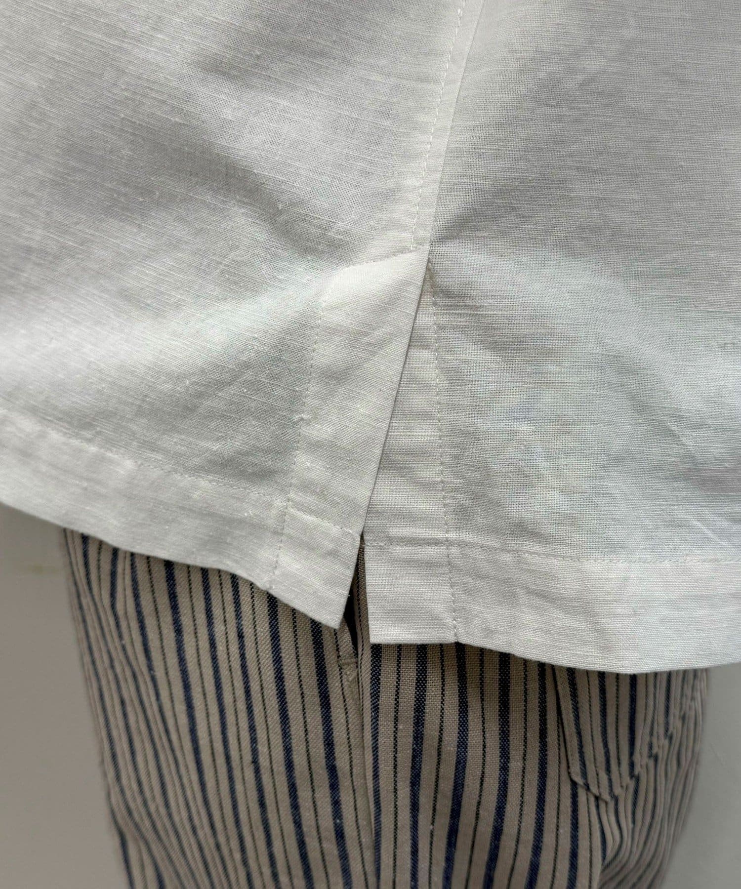 ・爽やかな風合いが魅力的なハンドカラーレンチスリーブシャツです