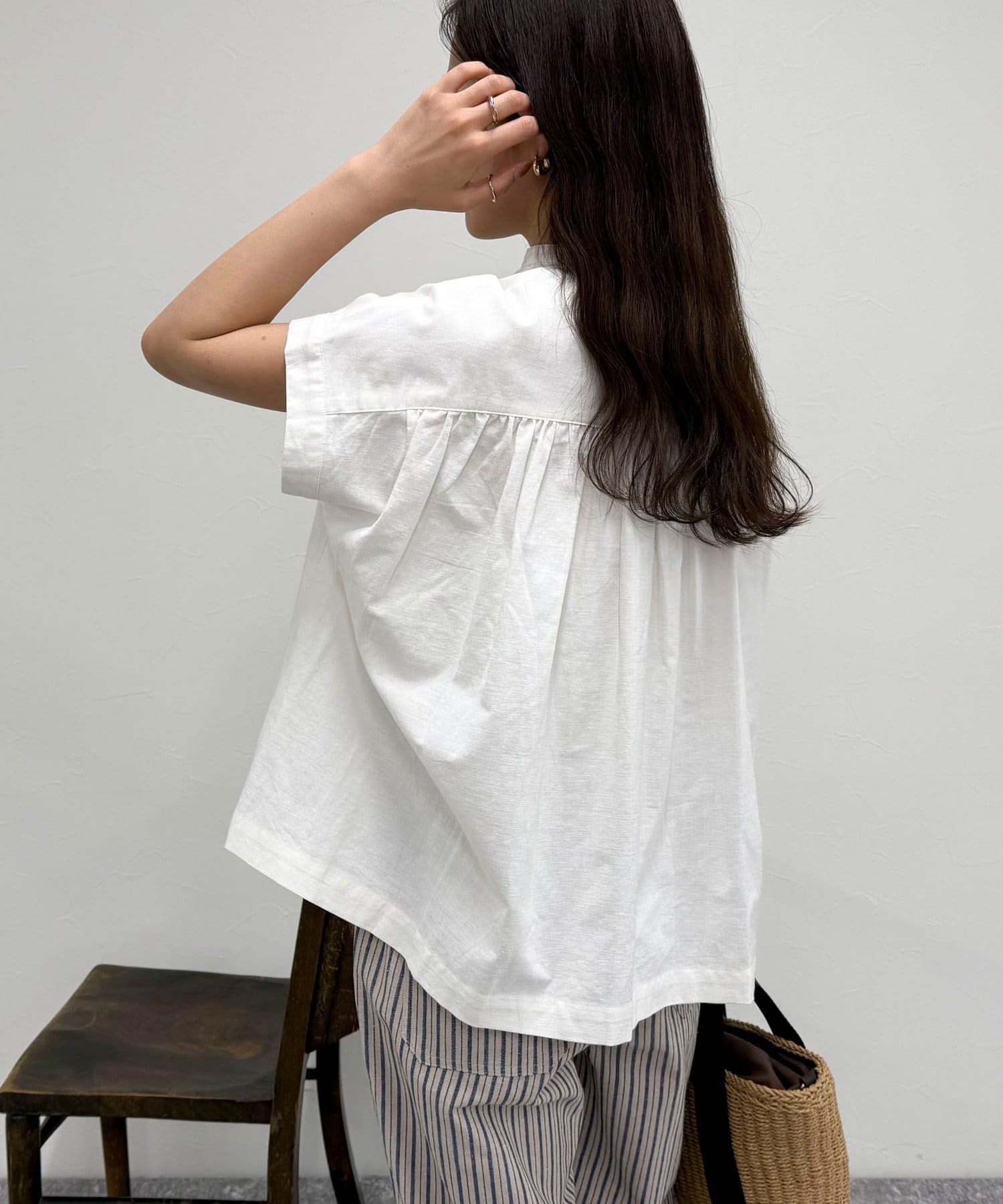 軽い着心地が魅力的なフレンチスリーブシャツ