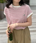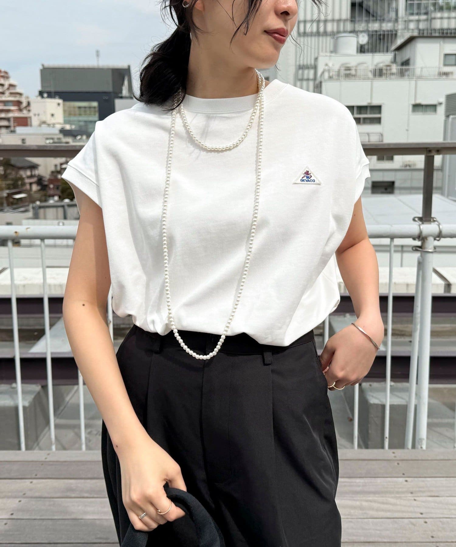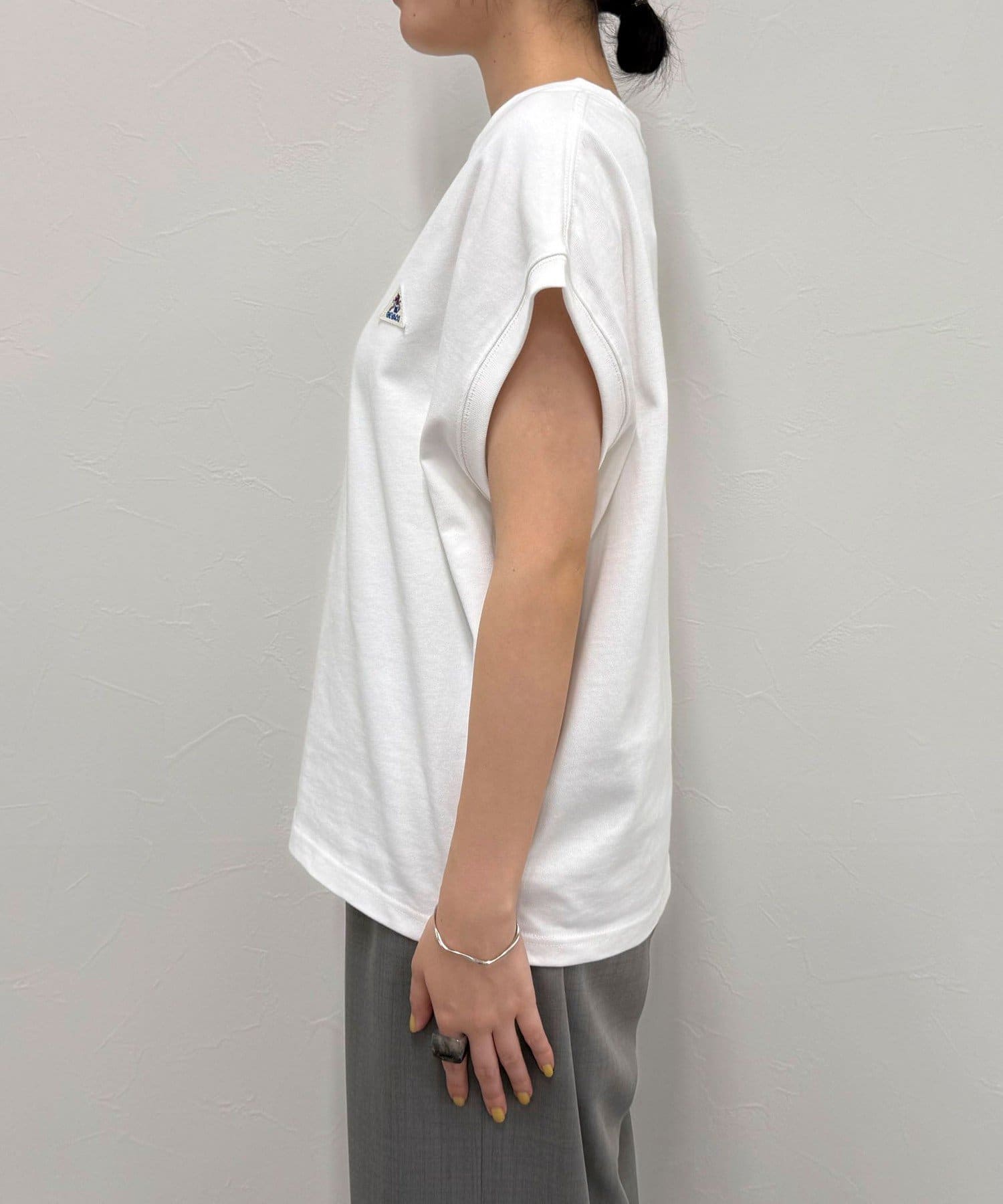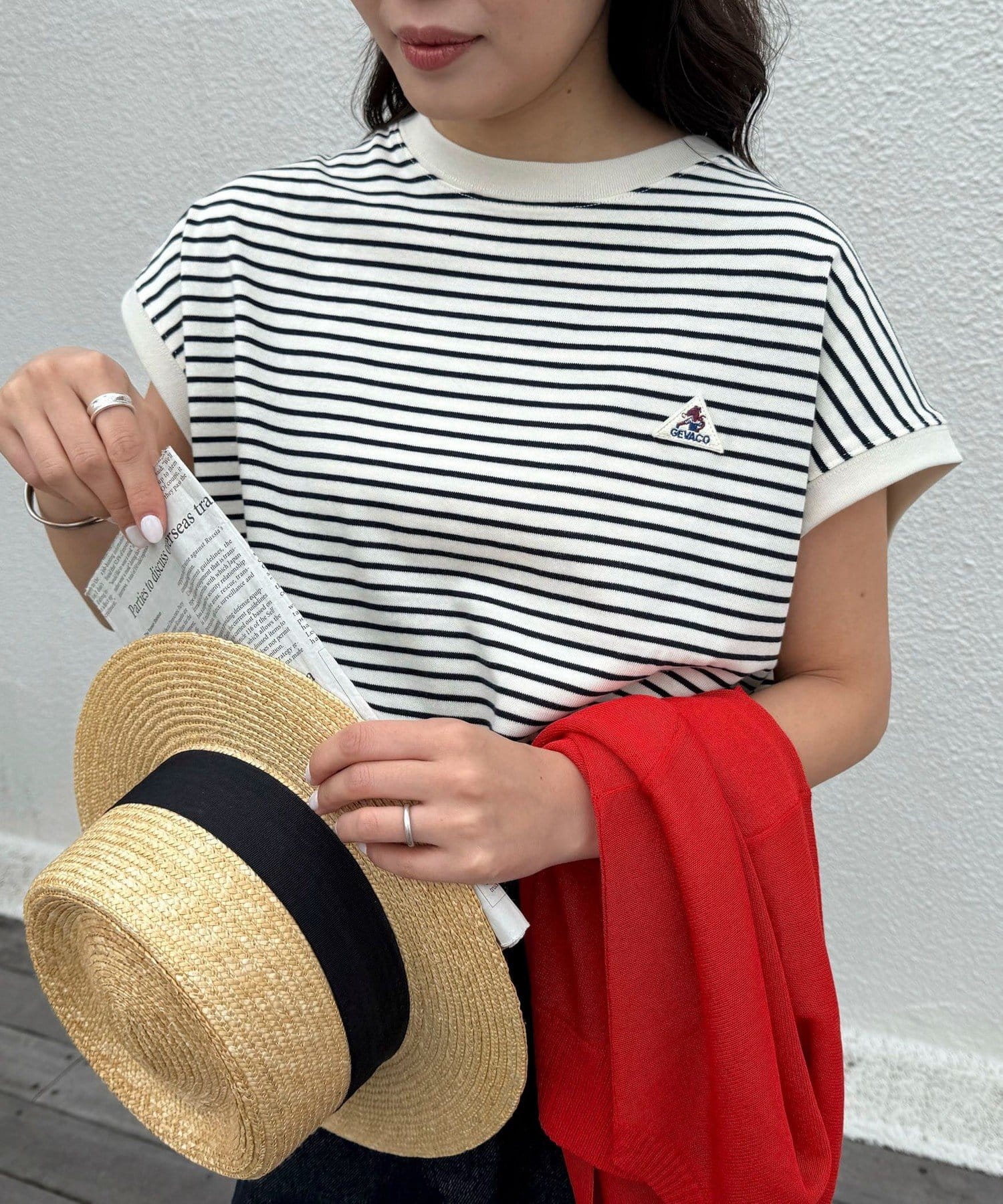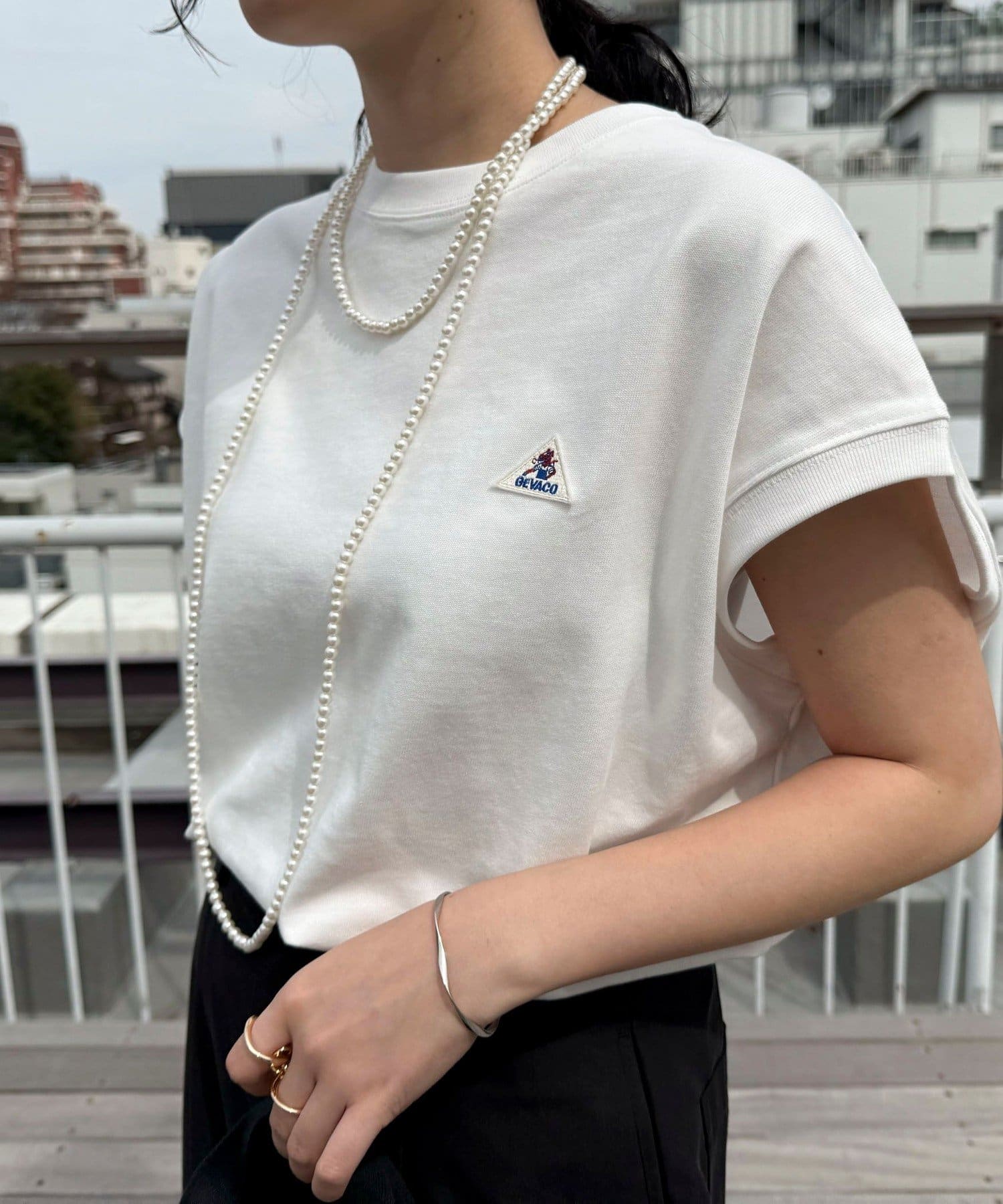 ・胸元入っているさりげないGEVACOのロゴがポイントのフレンチスリーブTシャツです