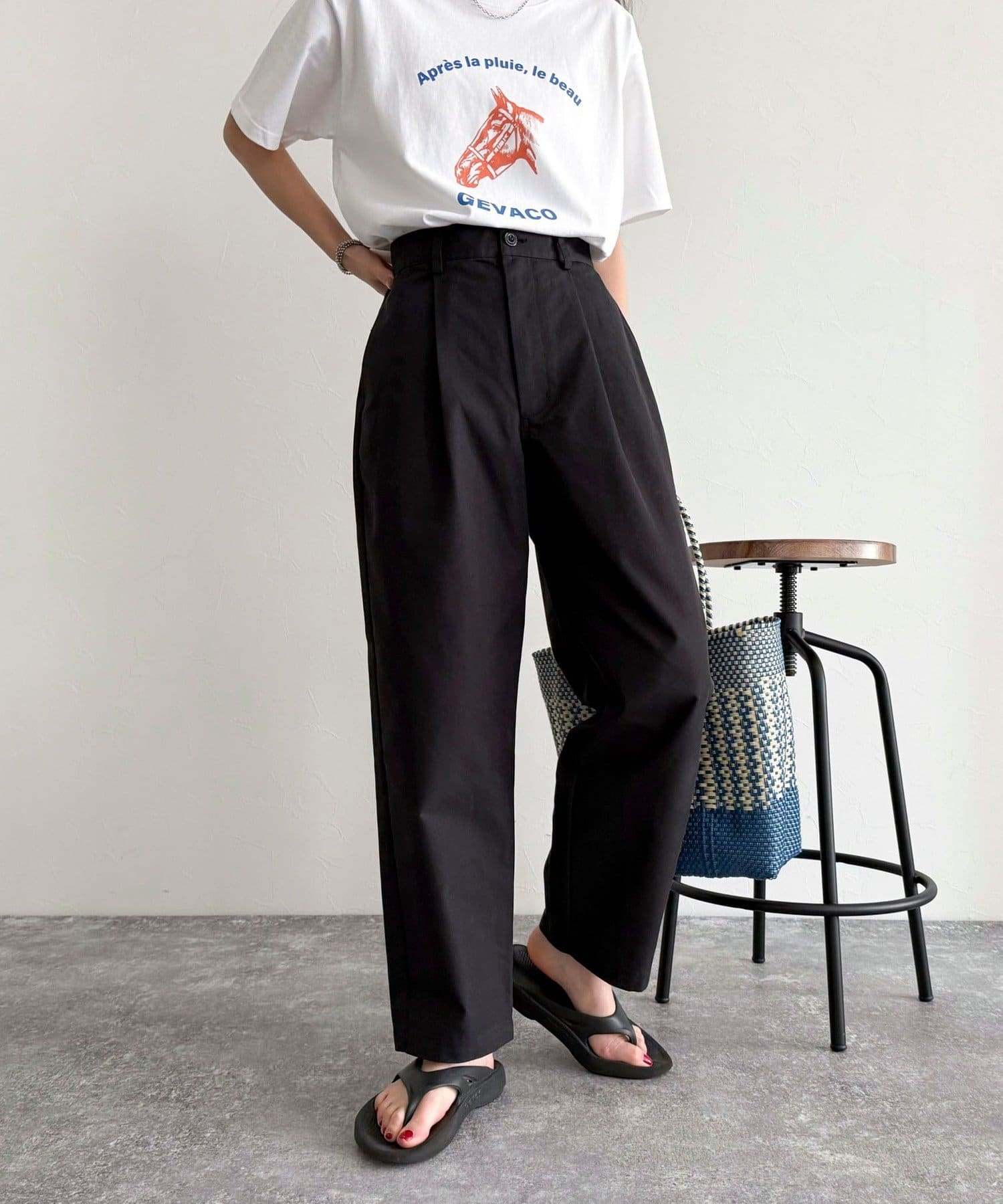 ・程よくワイドなテーパードシルエットが美脚効果を叶えてくれるパンツです