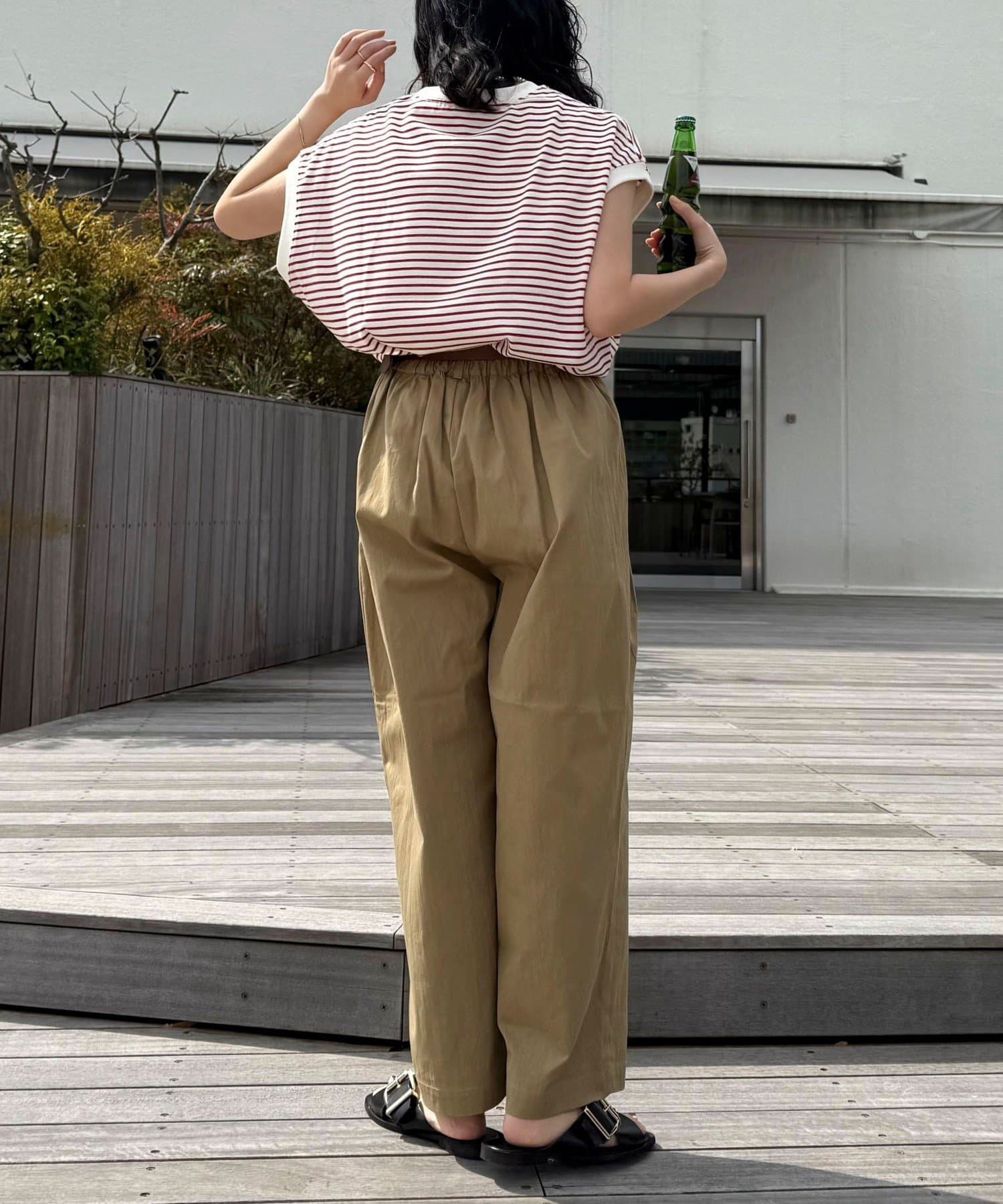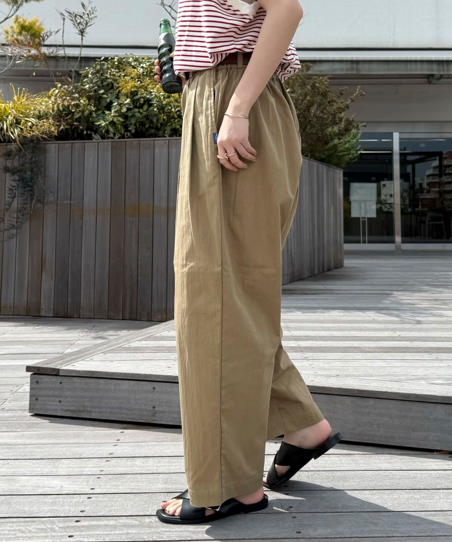 ・ゆったりと履けるテーパードシルエットとウエストゴム仕様で楽ちんなパンツ