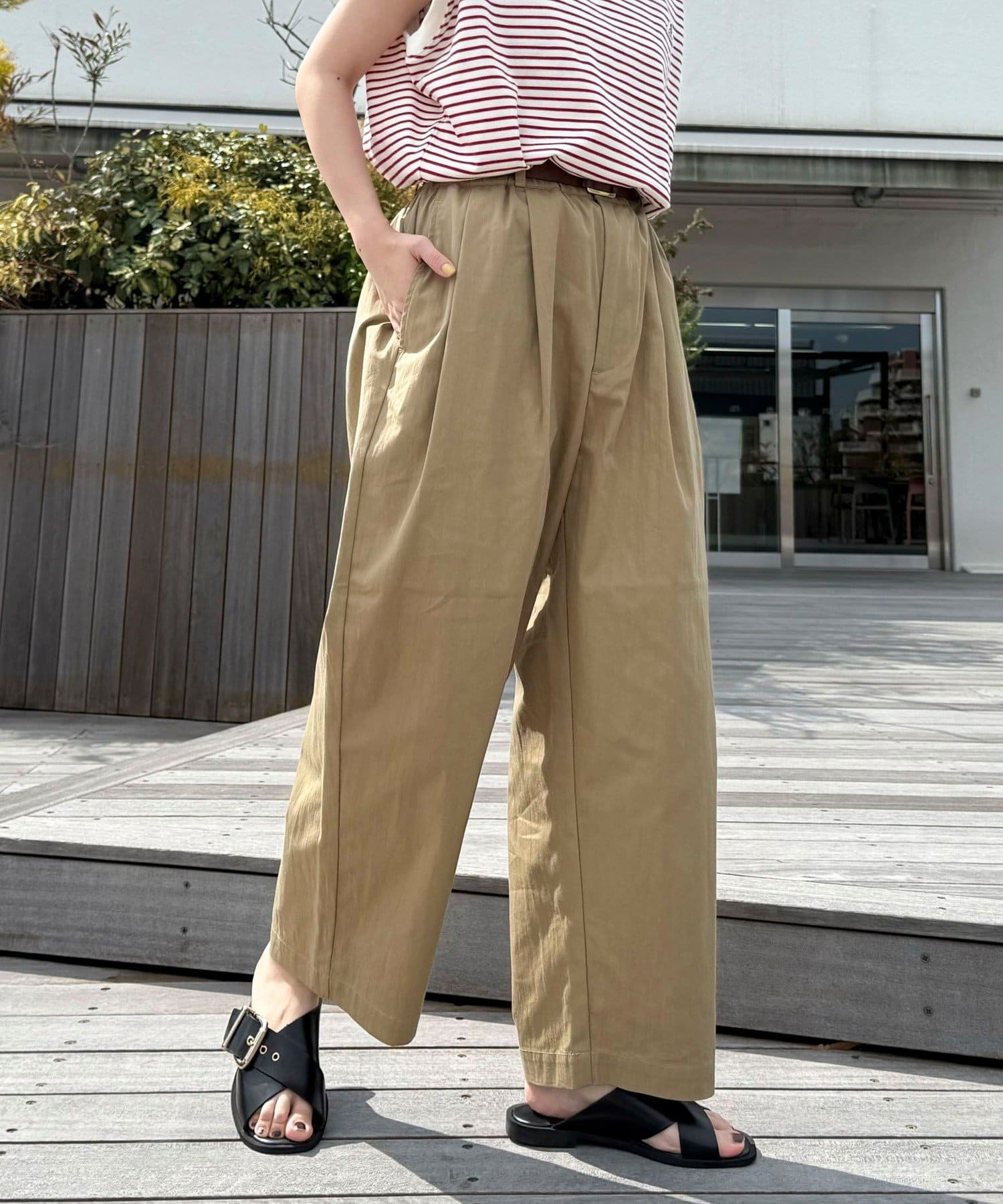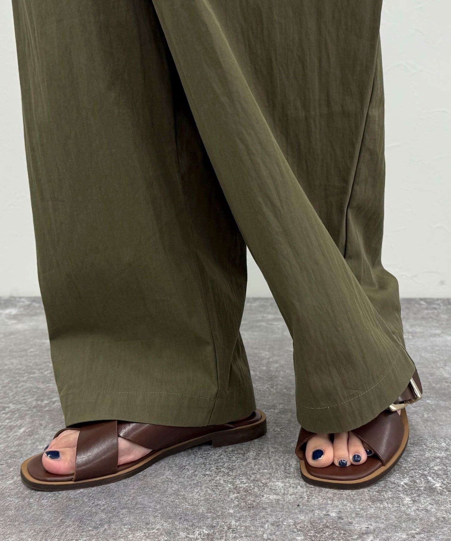・ややハリのある素材と脚のラインを拾わないシルエットでスタイルアップを叶えてくれます