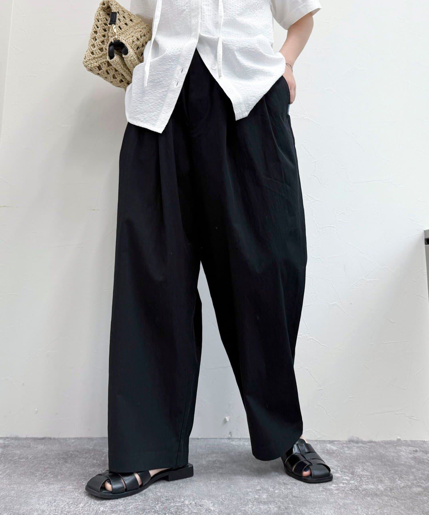ボリュームがポイントのテーパードパンツ