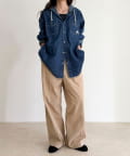 ・ゆったりめのシルエットと腰くらいの丈感で、バランスよく羽織れるのが魅力です