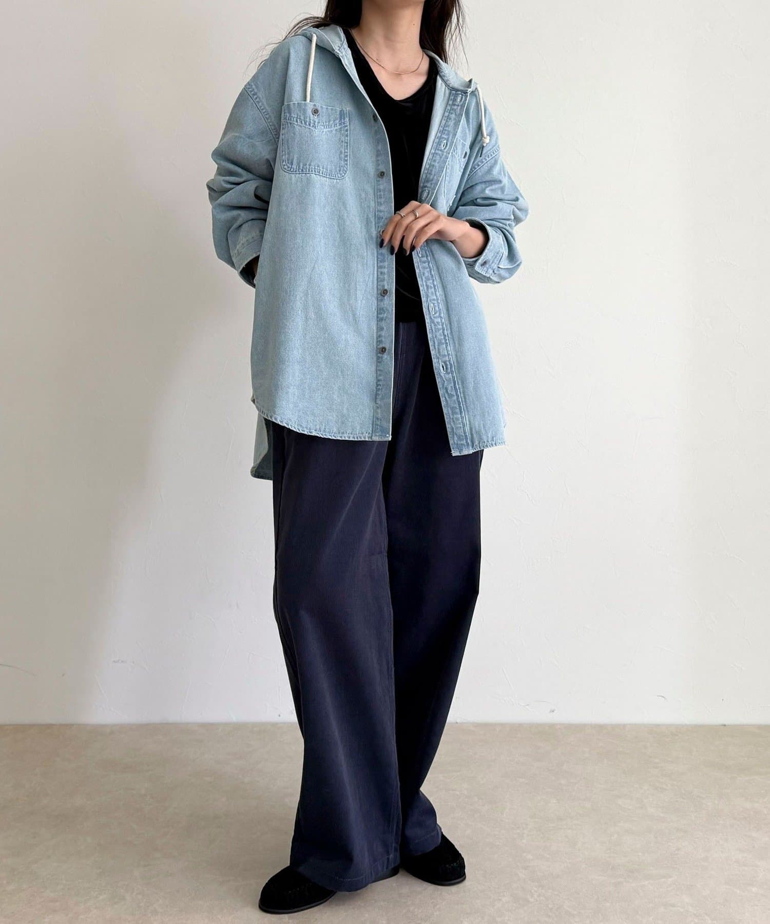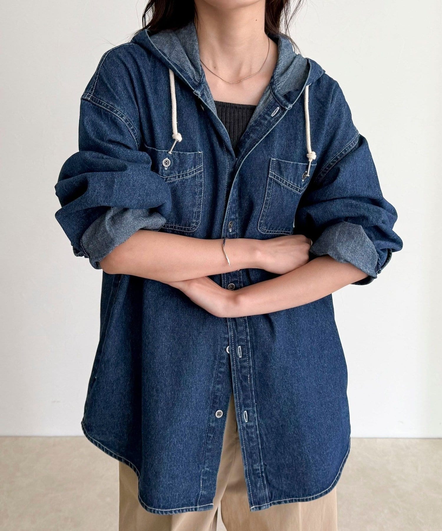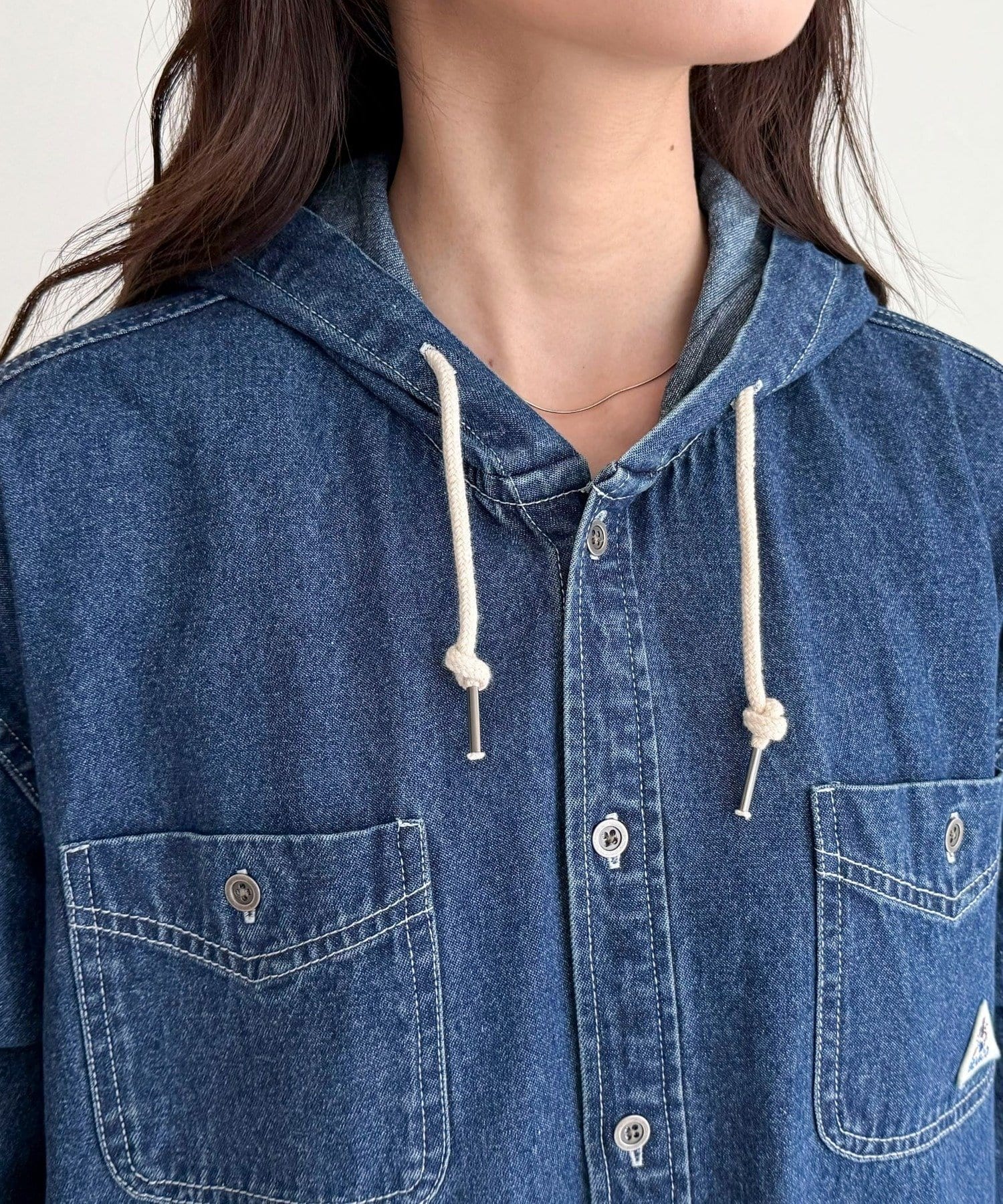 ・柔らかなデニム素材を使用し、ライトな着心地でロングシーズン活躍するデニムフーディーシャツ