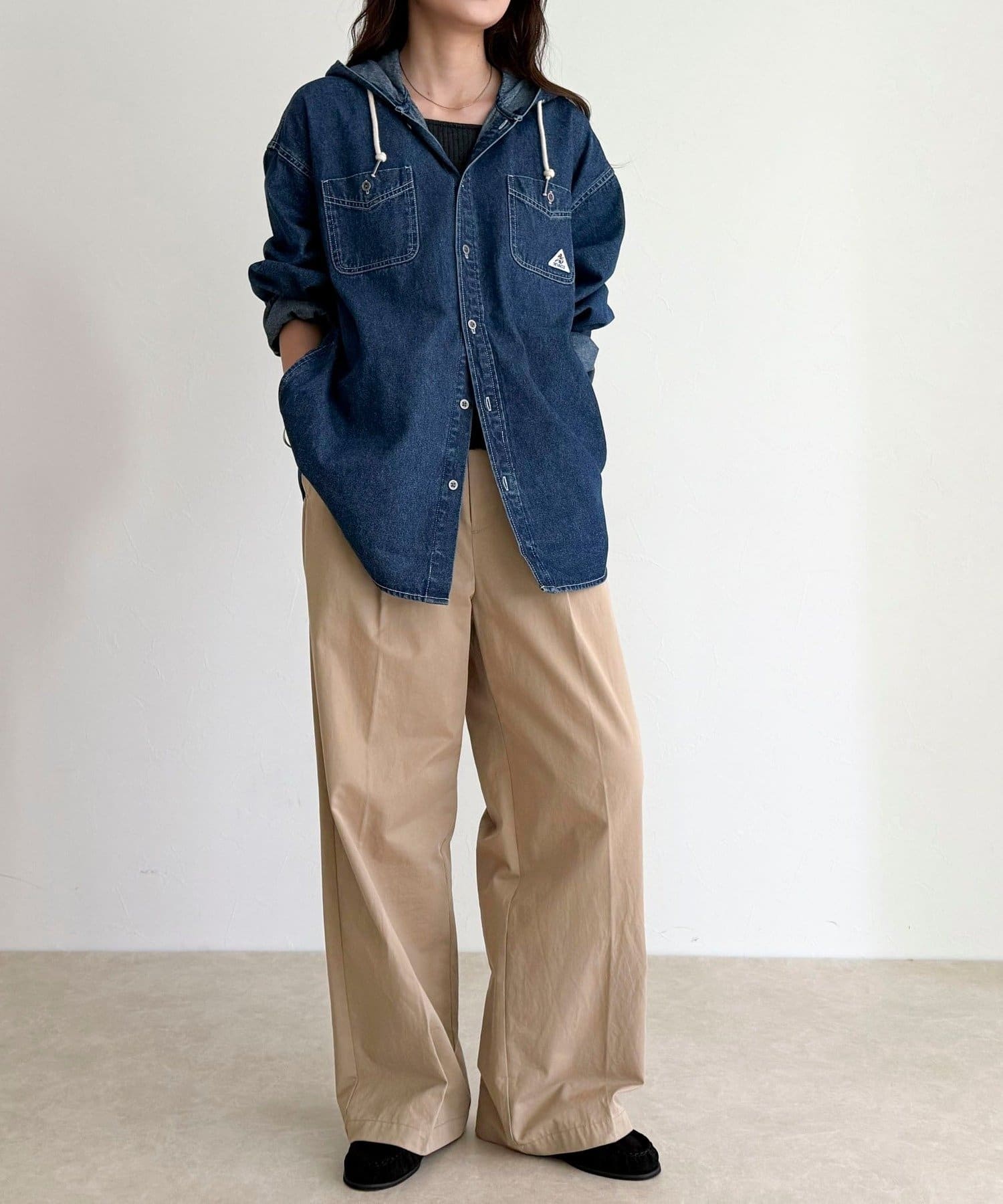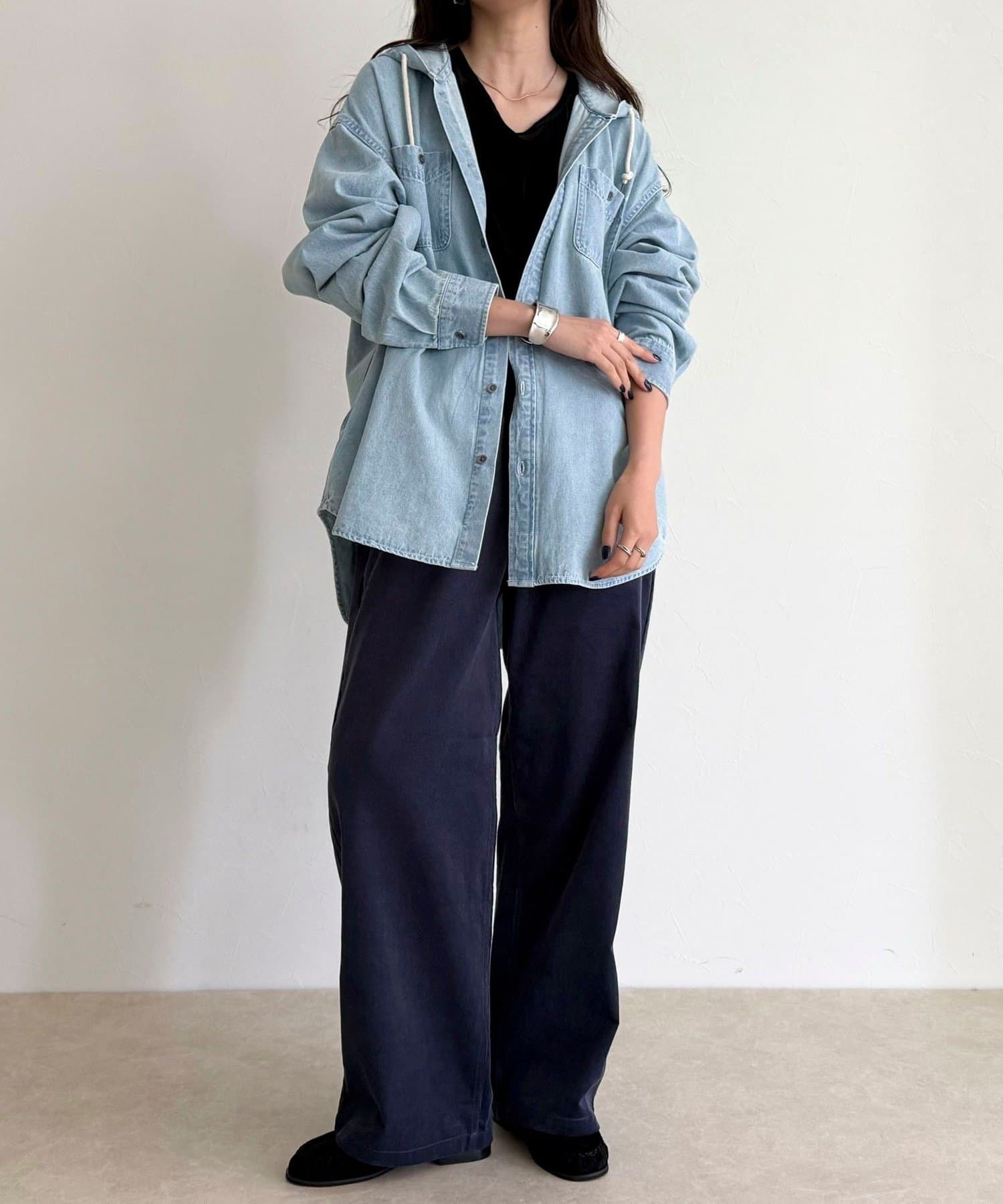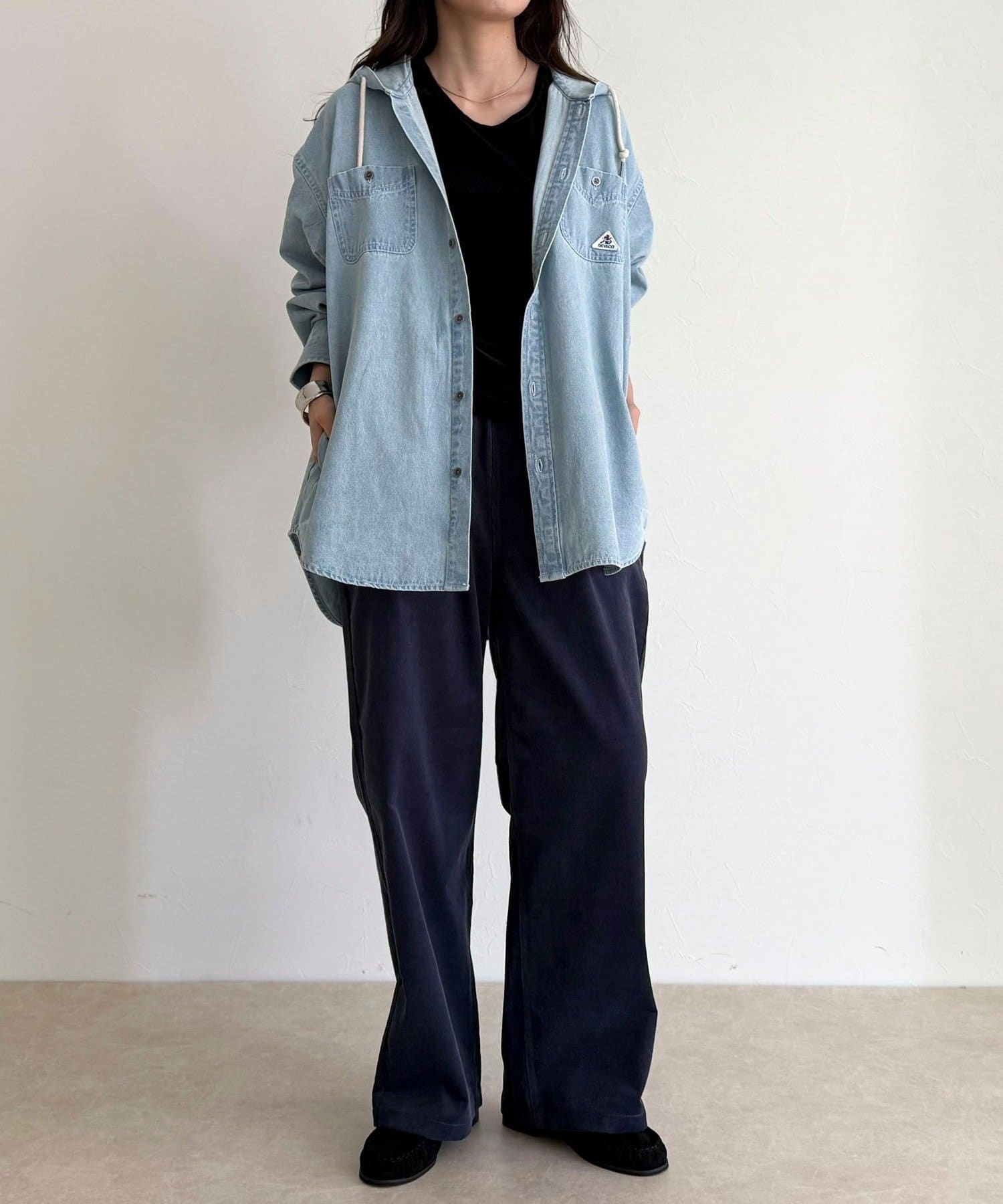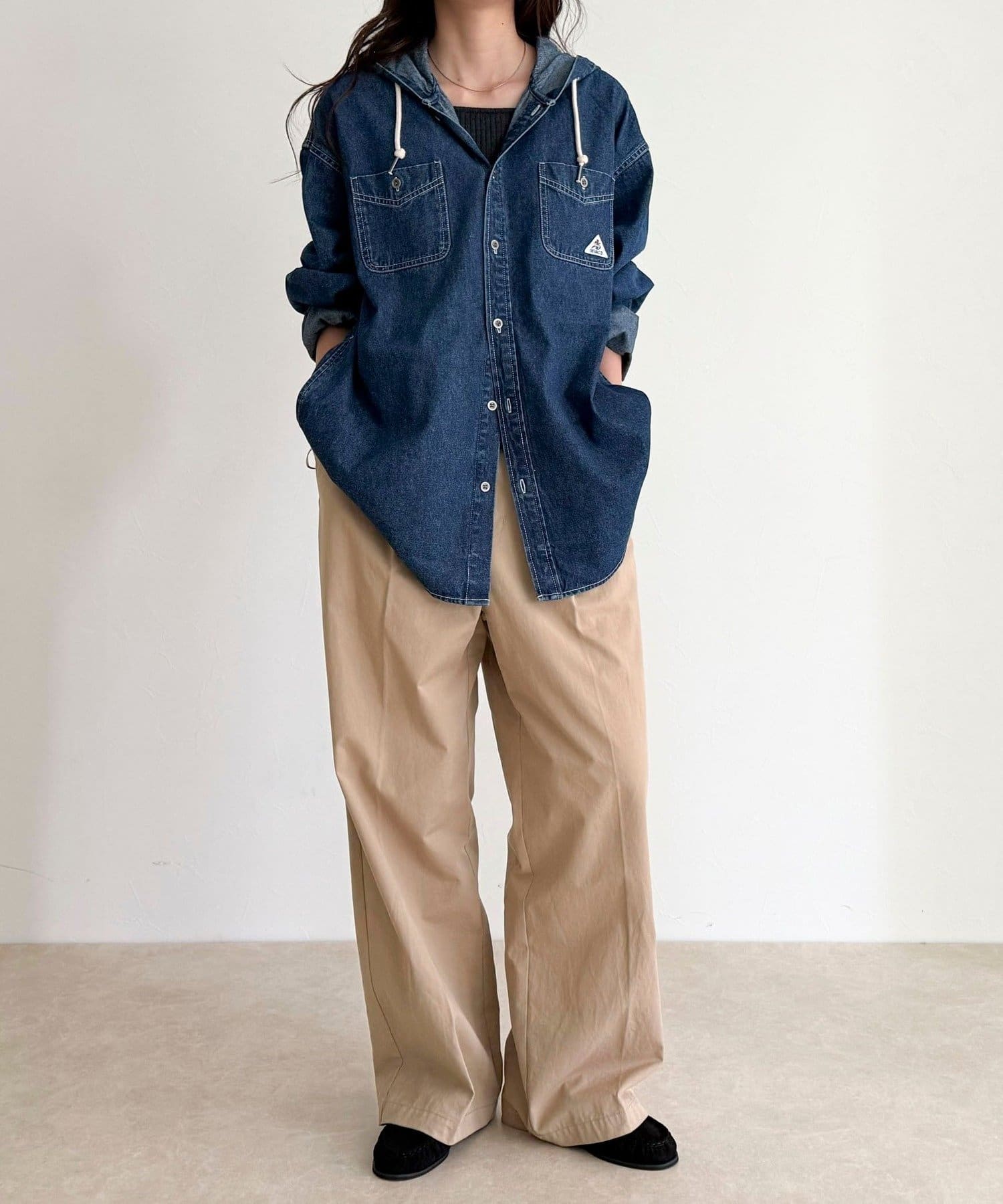 ・柔らかなデニム素材を使用し、ライトな着心地でロングシーズン活躍するデニムフーディーシャツ
