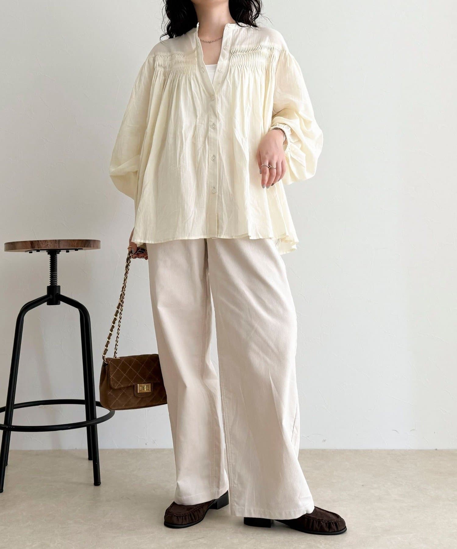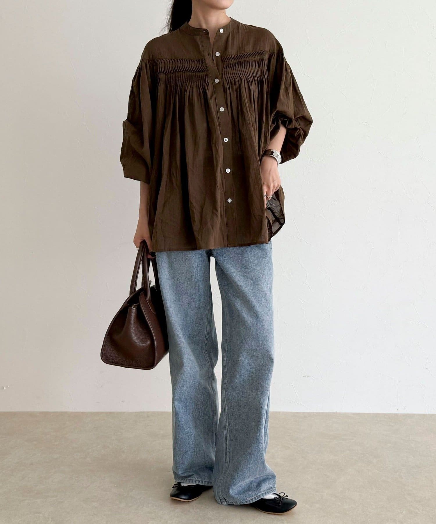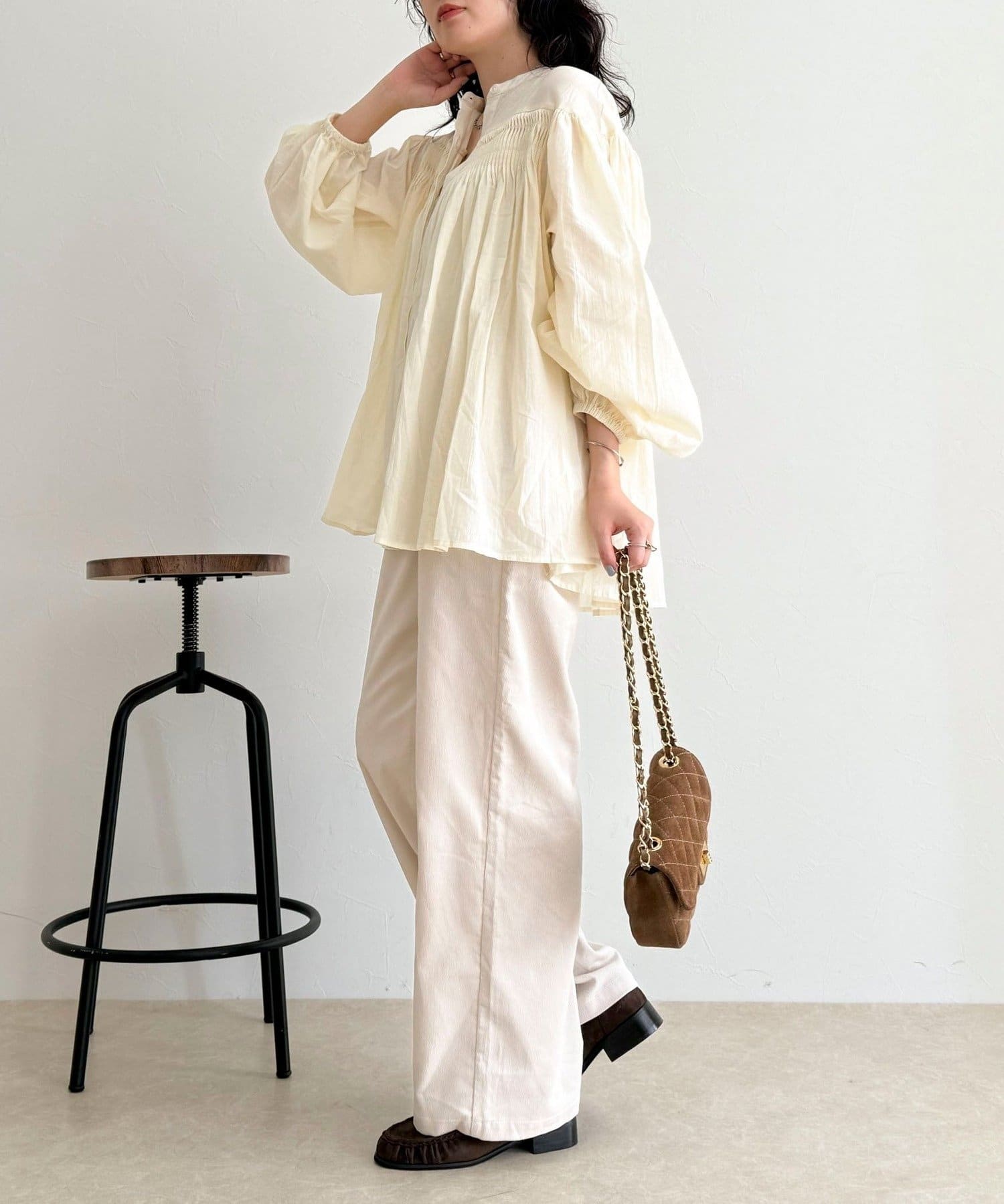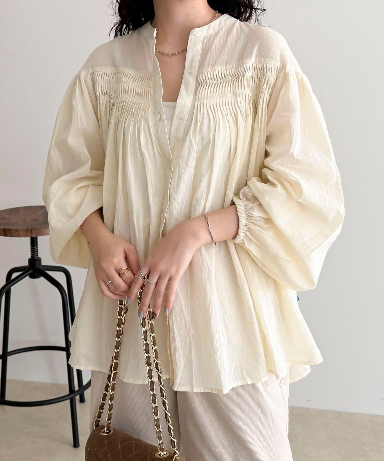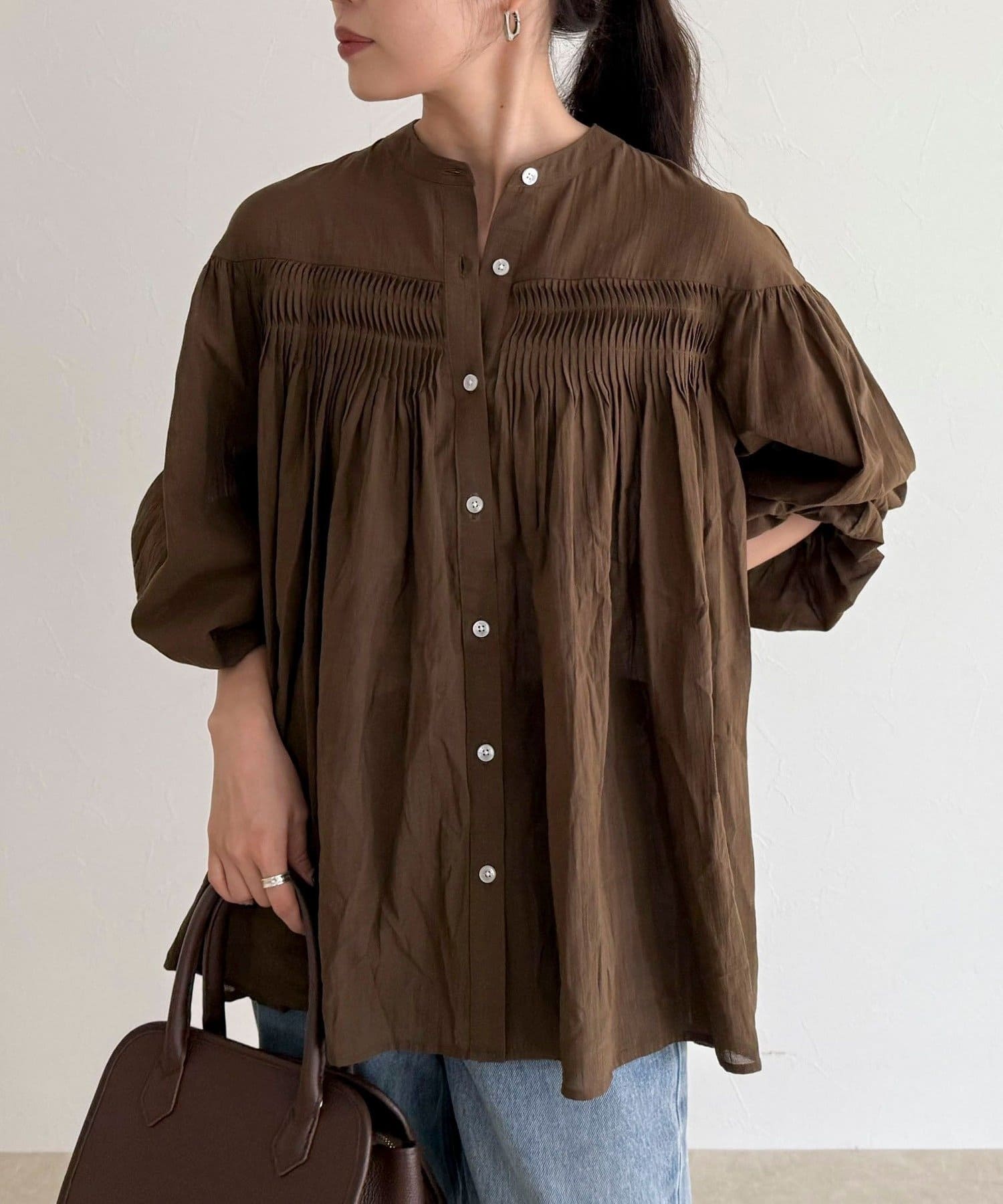 繊細なピンタックが大人の抜け感を演出する着映えブラウス