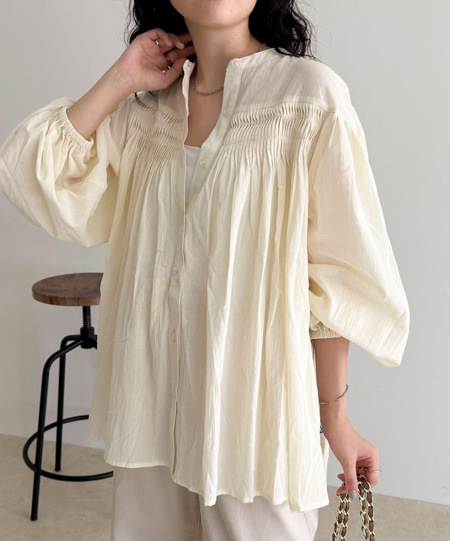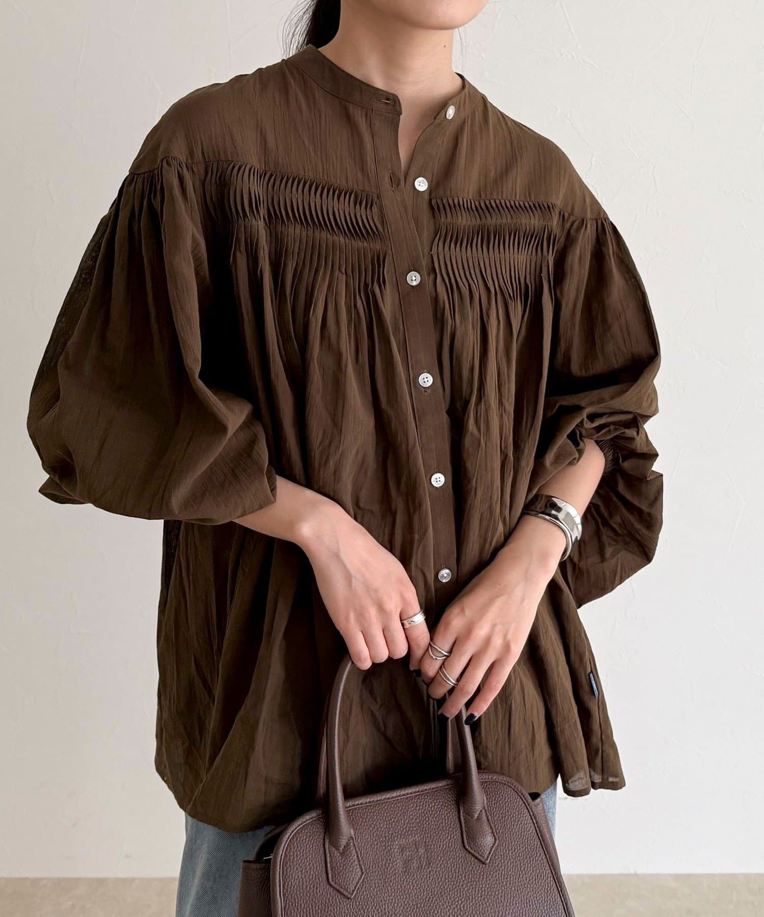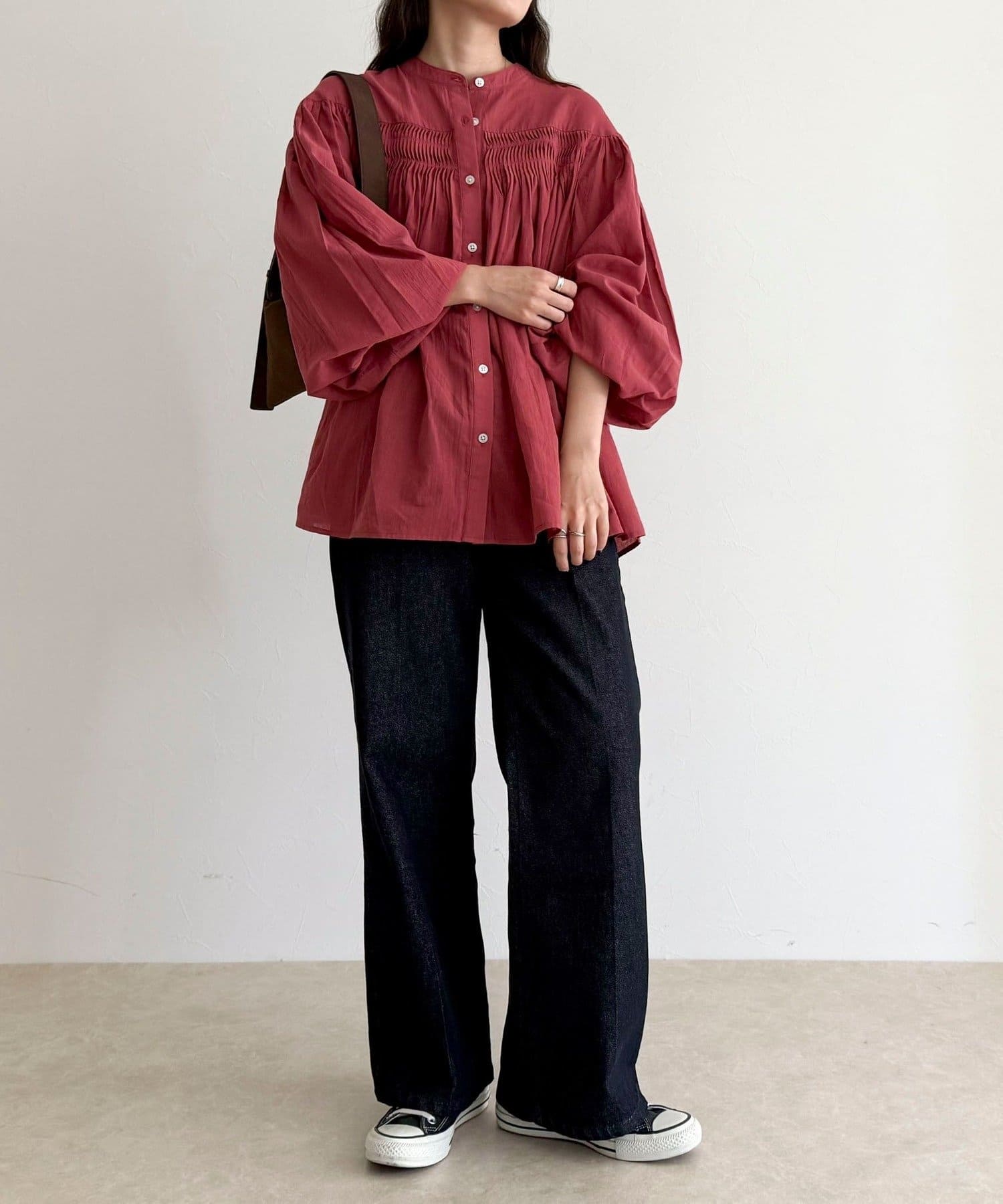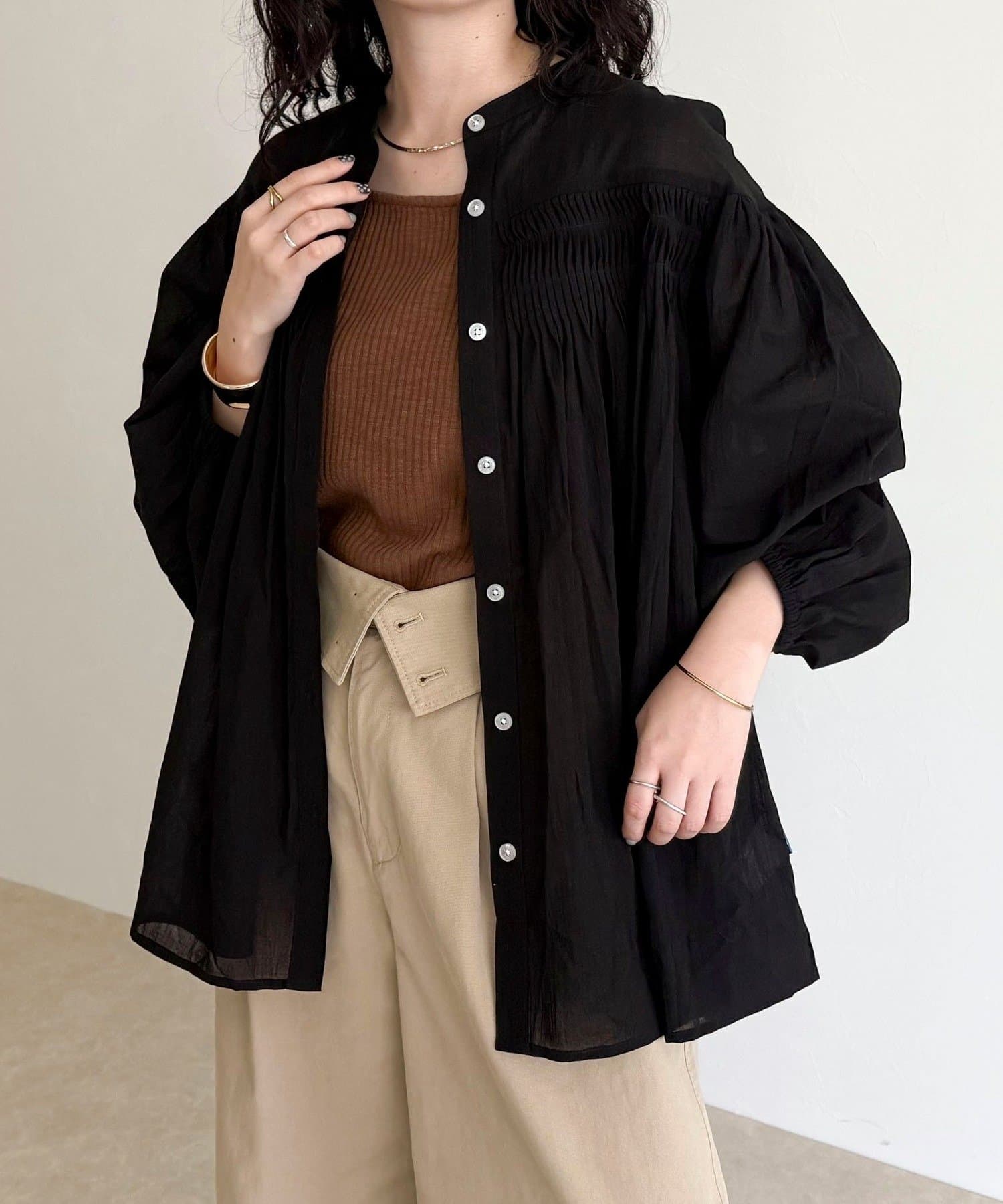 繊細なピンタックが大人の抜け感を演出する着映えブラウス