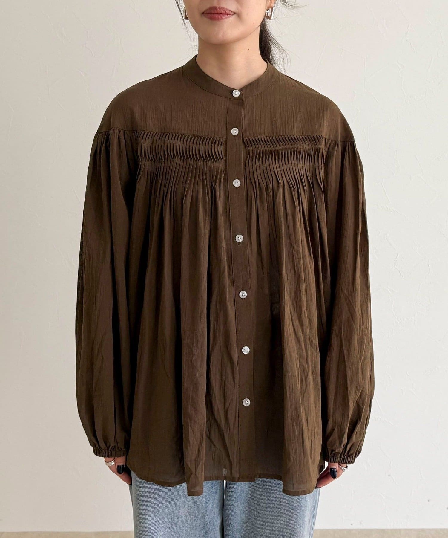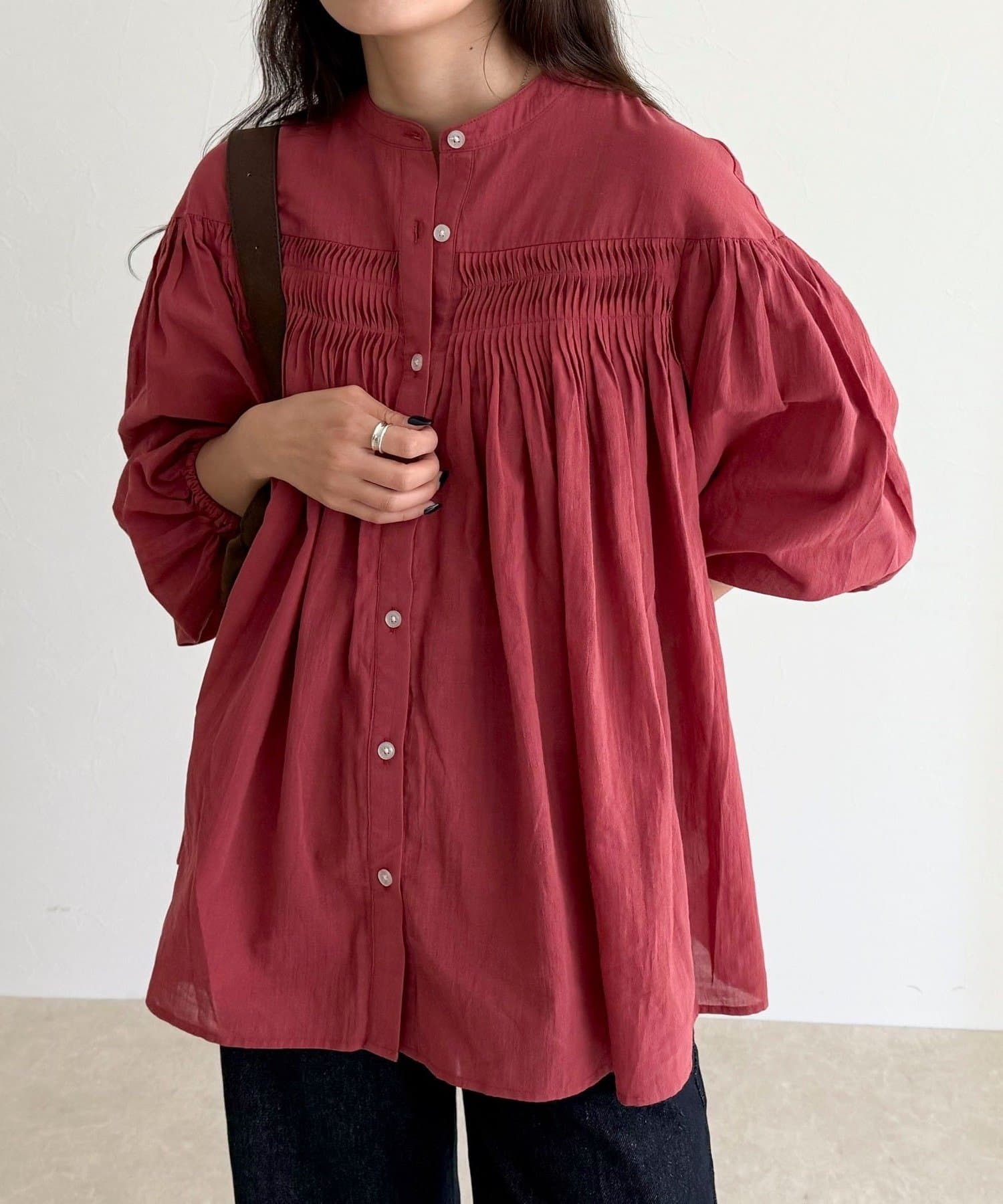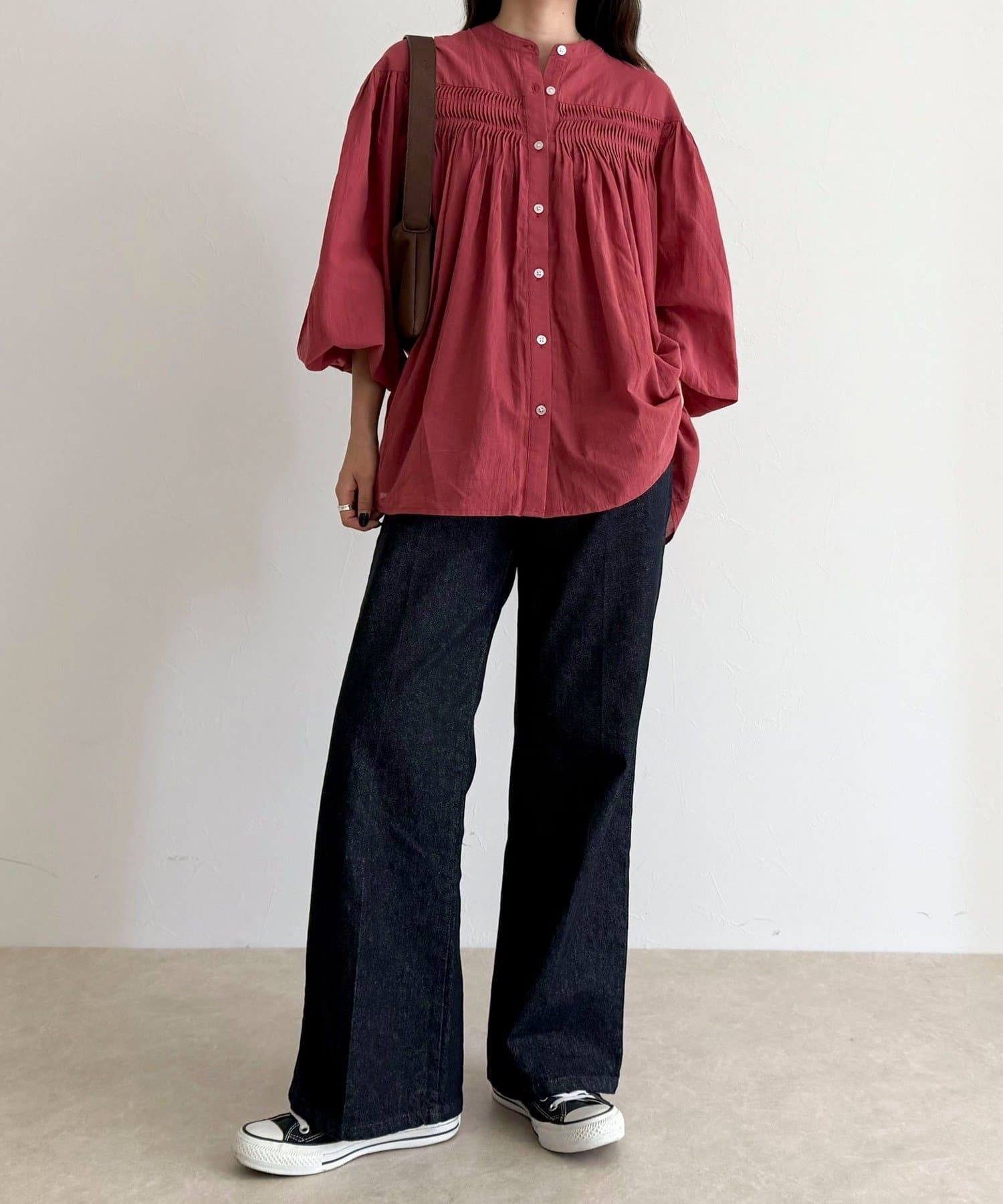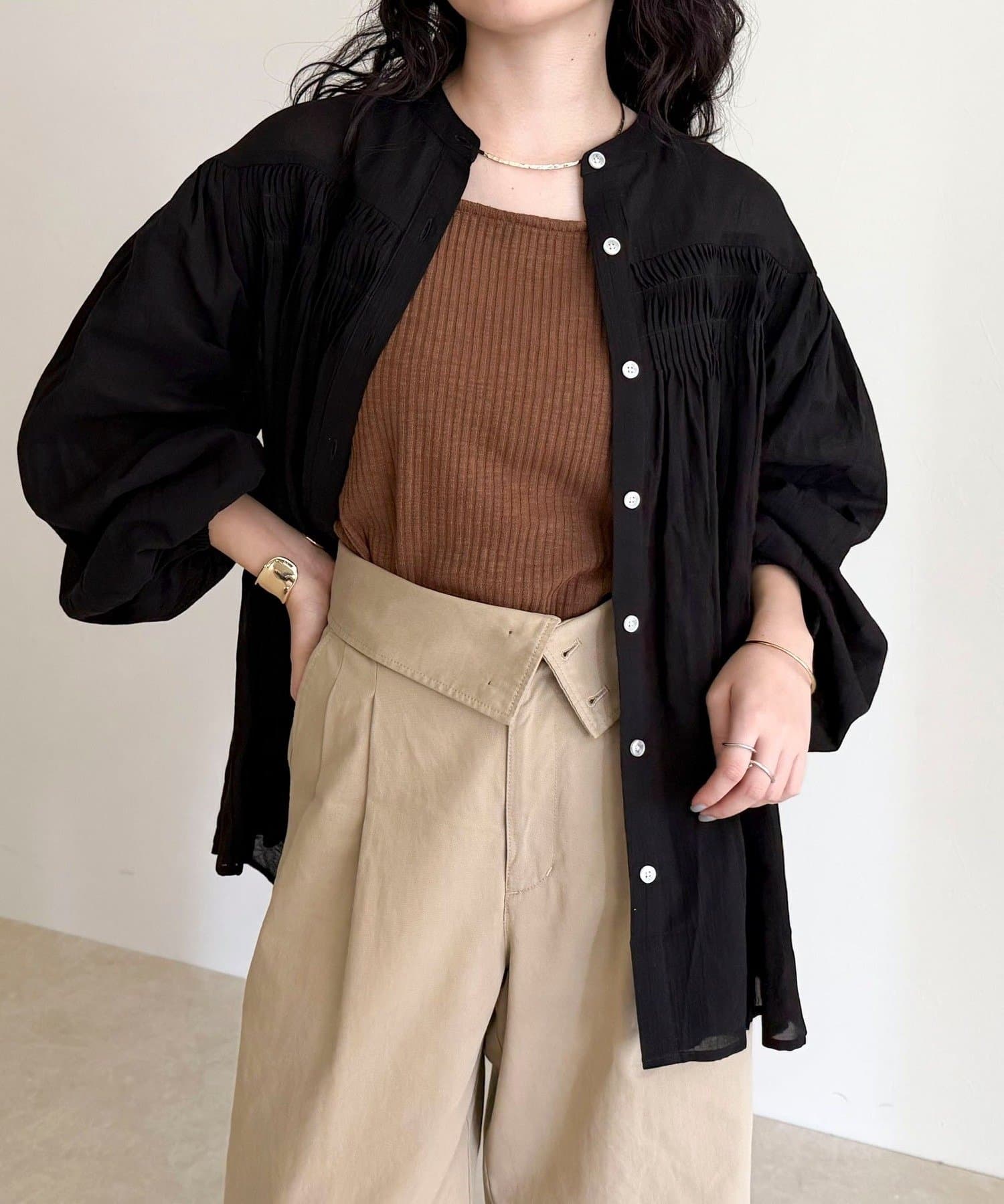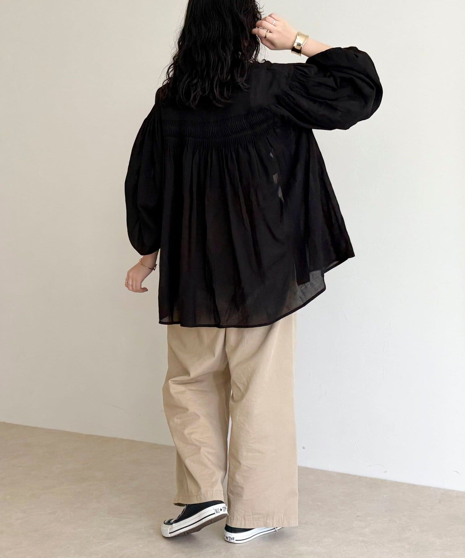 繊細なピンタックが大人の抜け感を演出する着映えブラウス