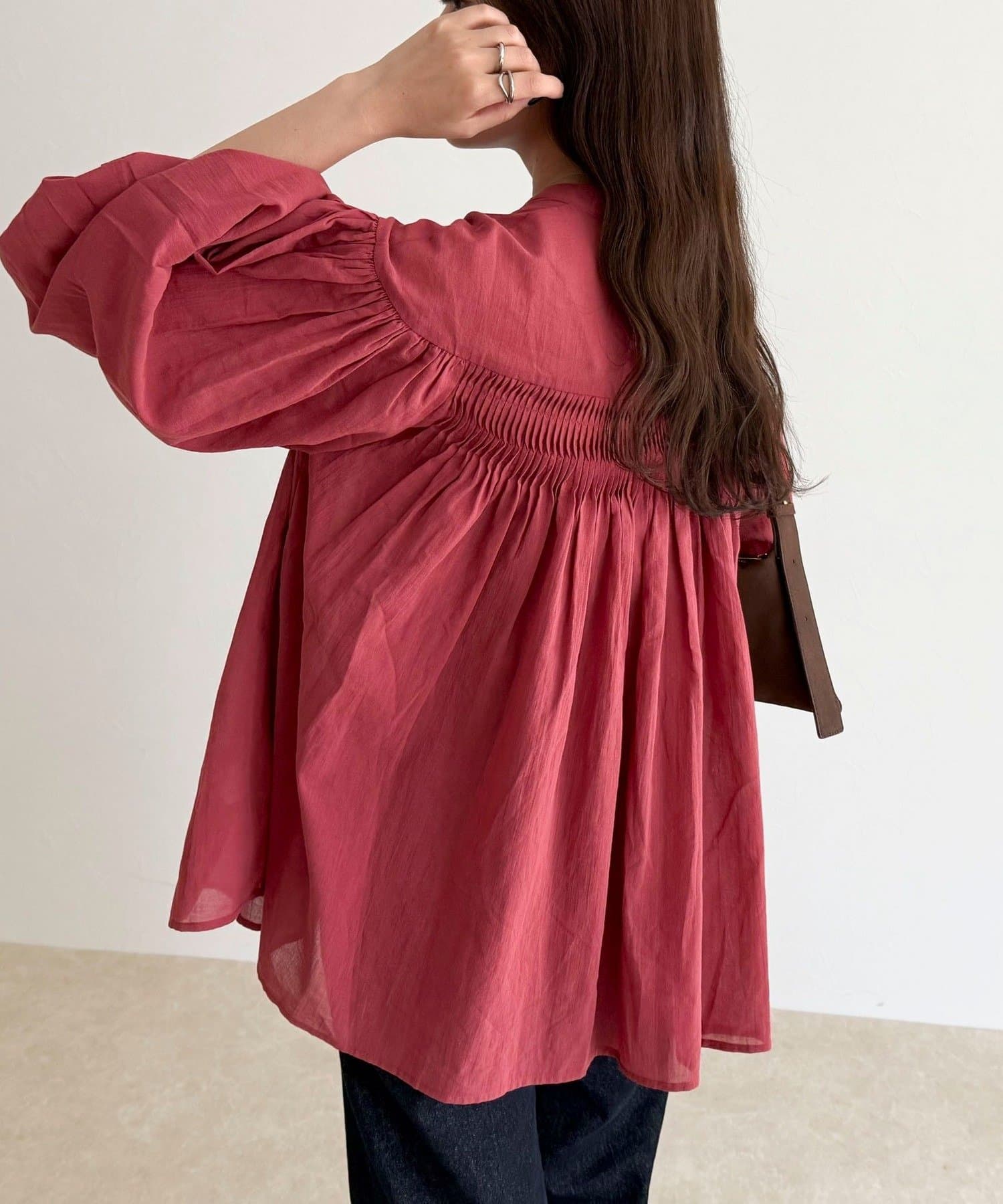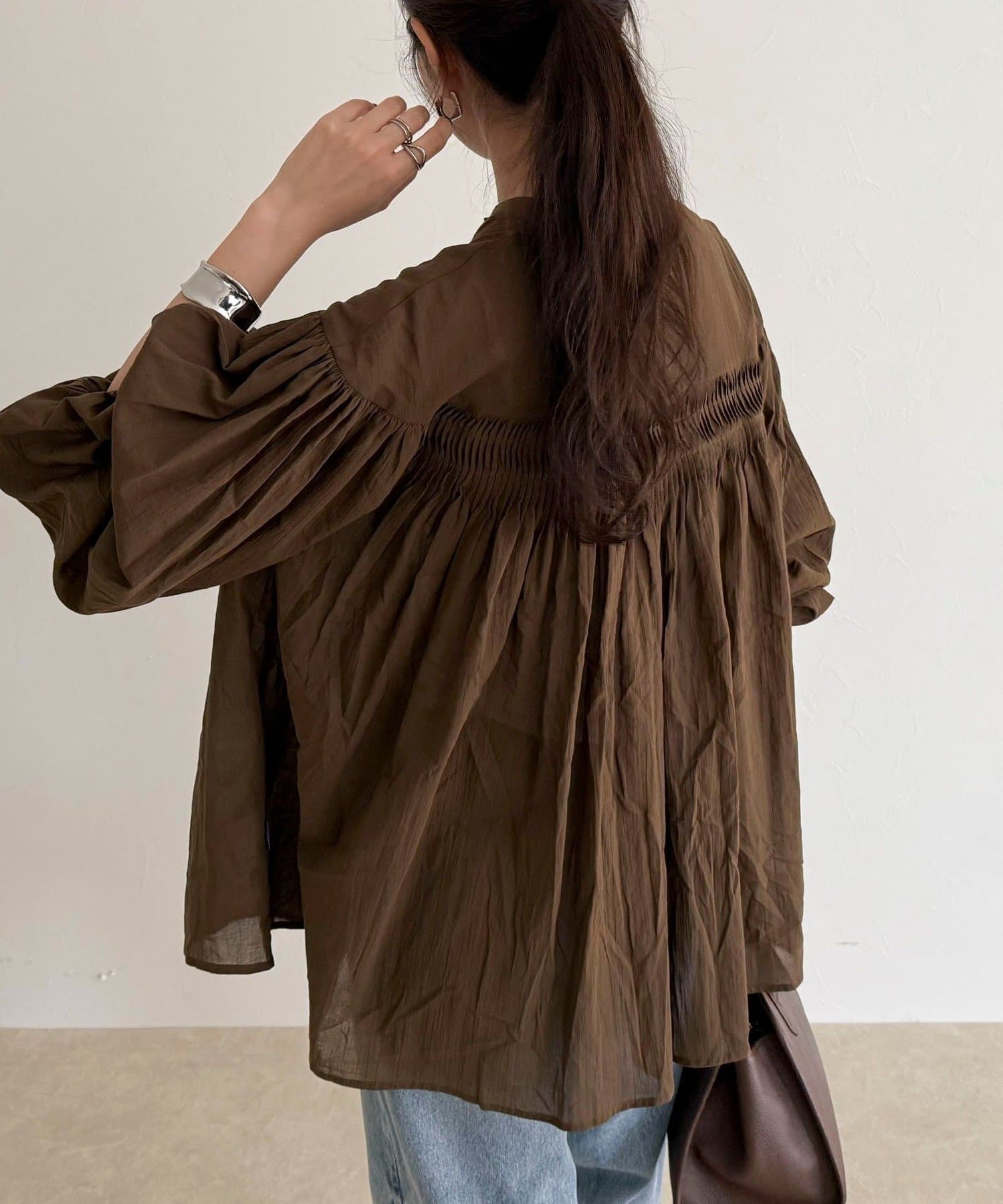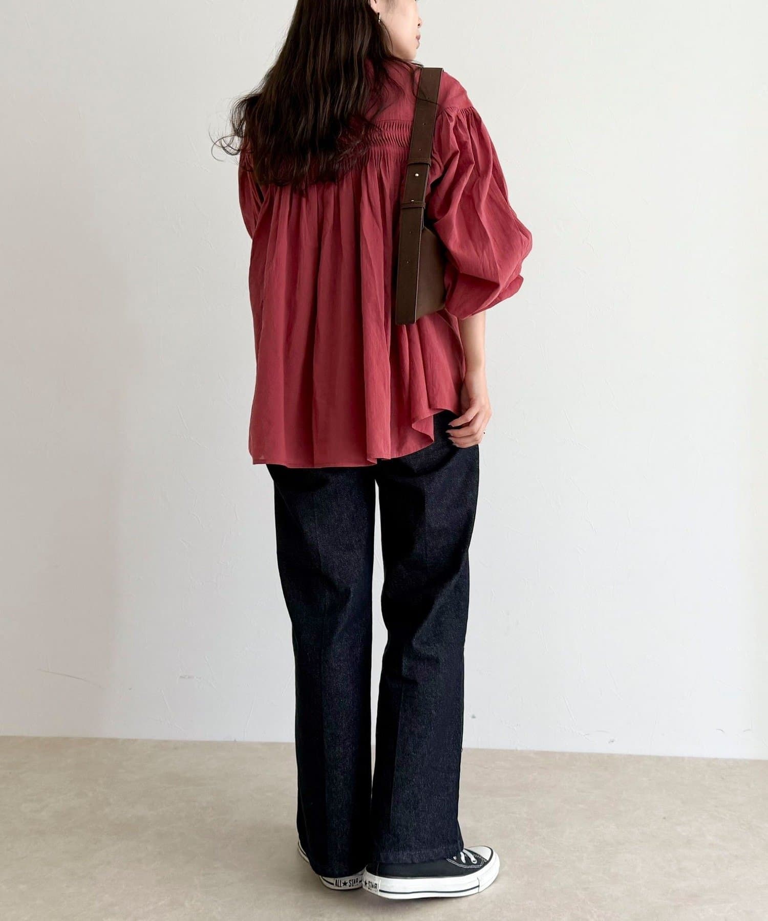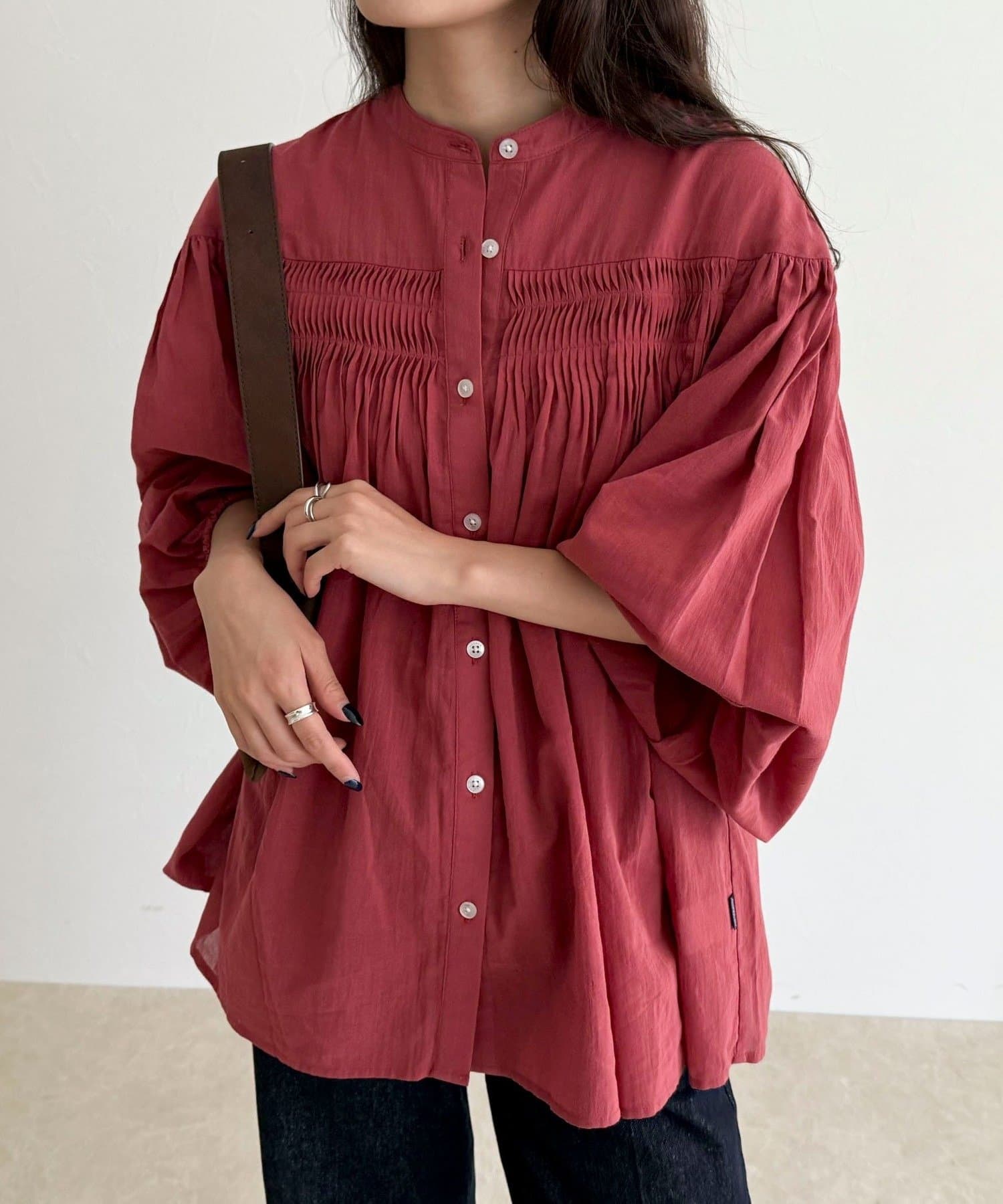 繊細なピンタックが大人の抜け感を演出する着映えブラウス
