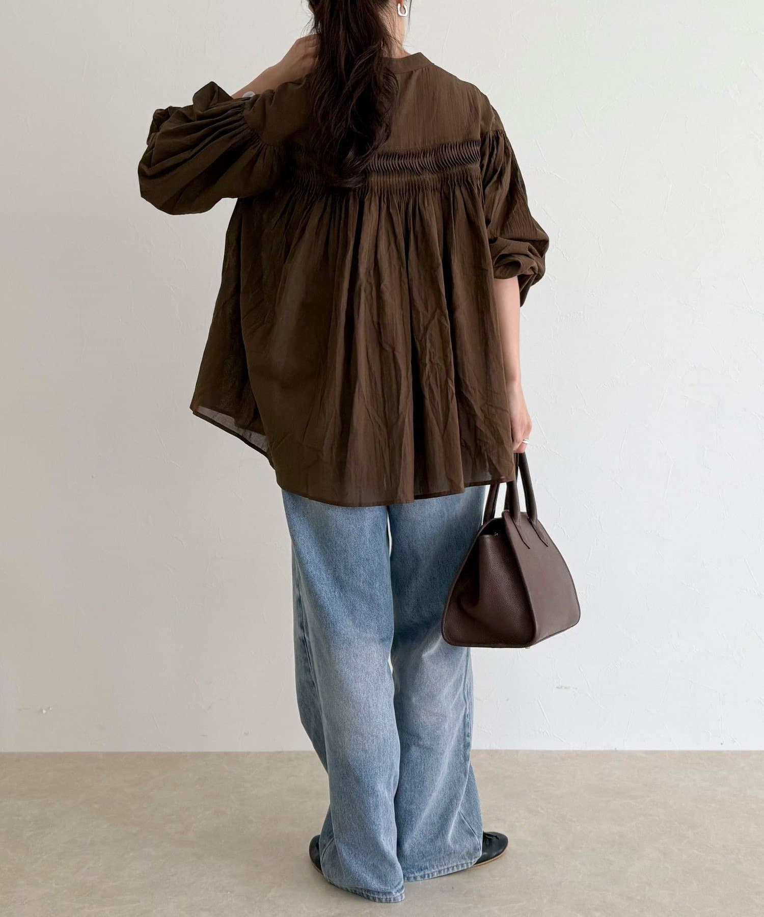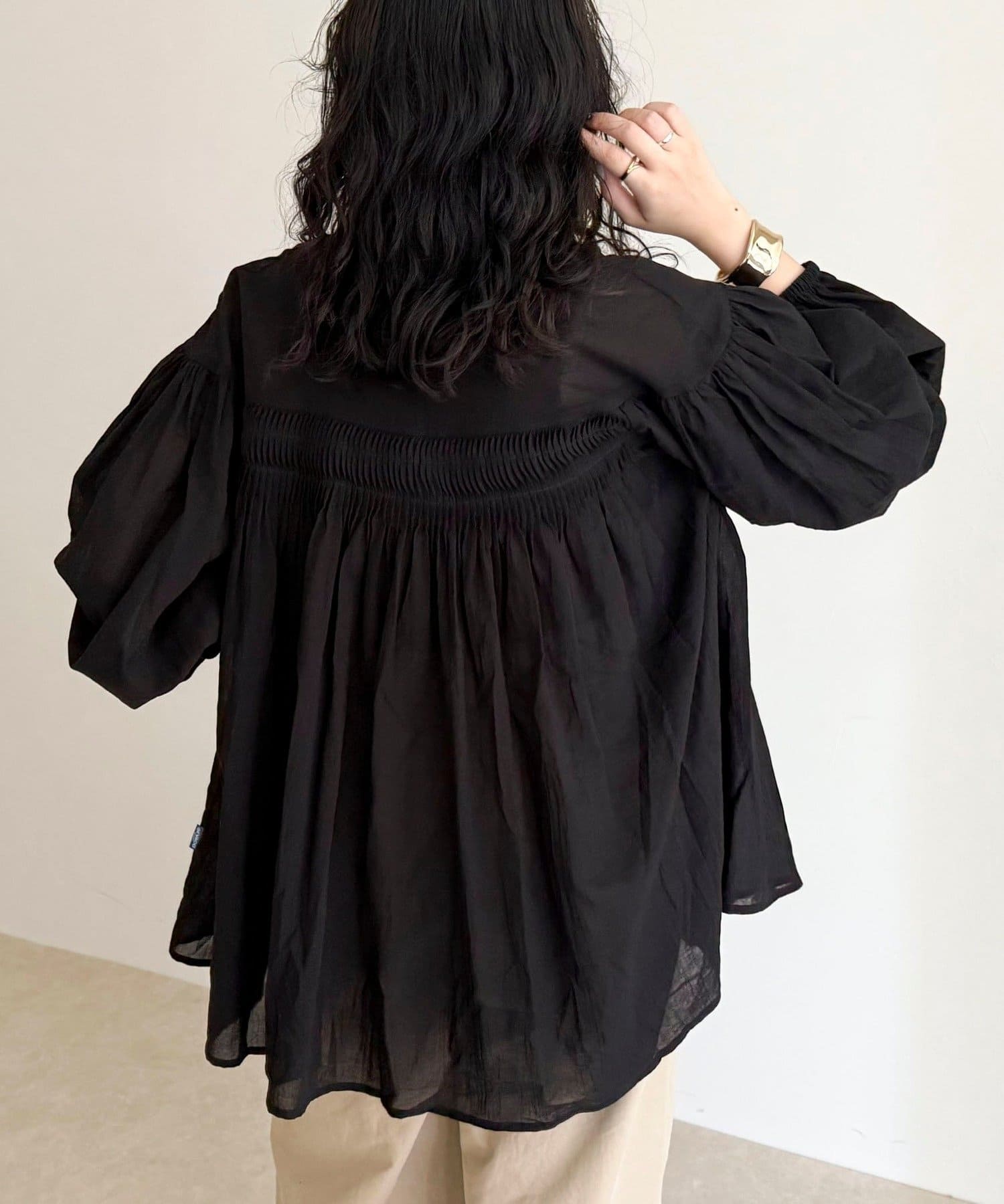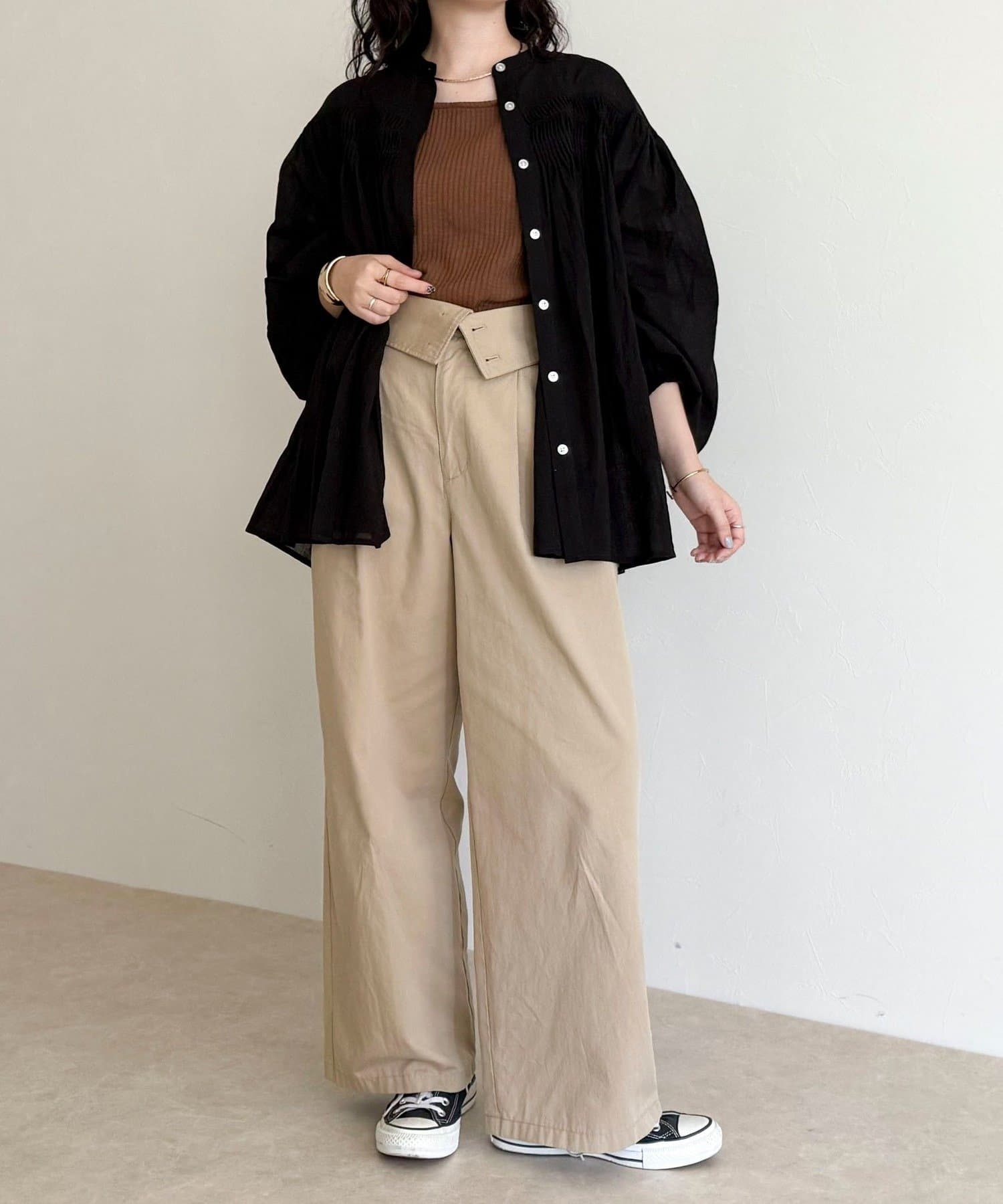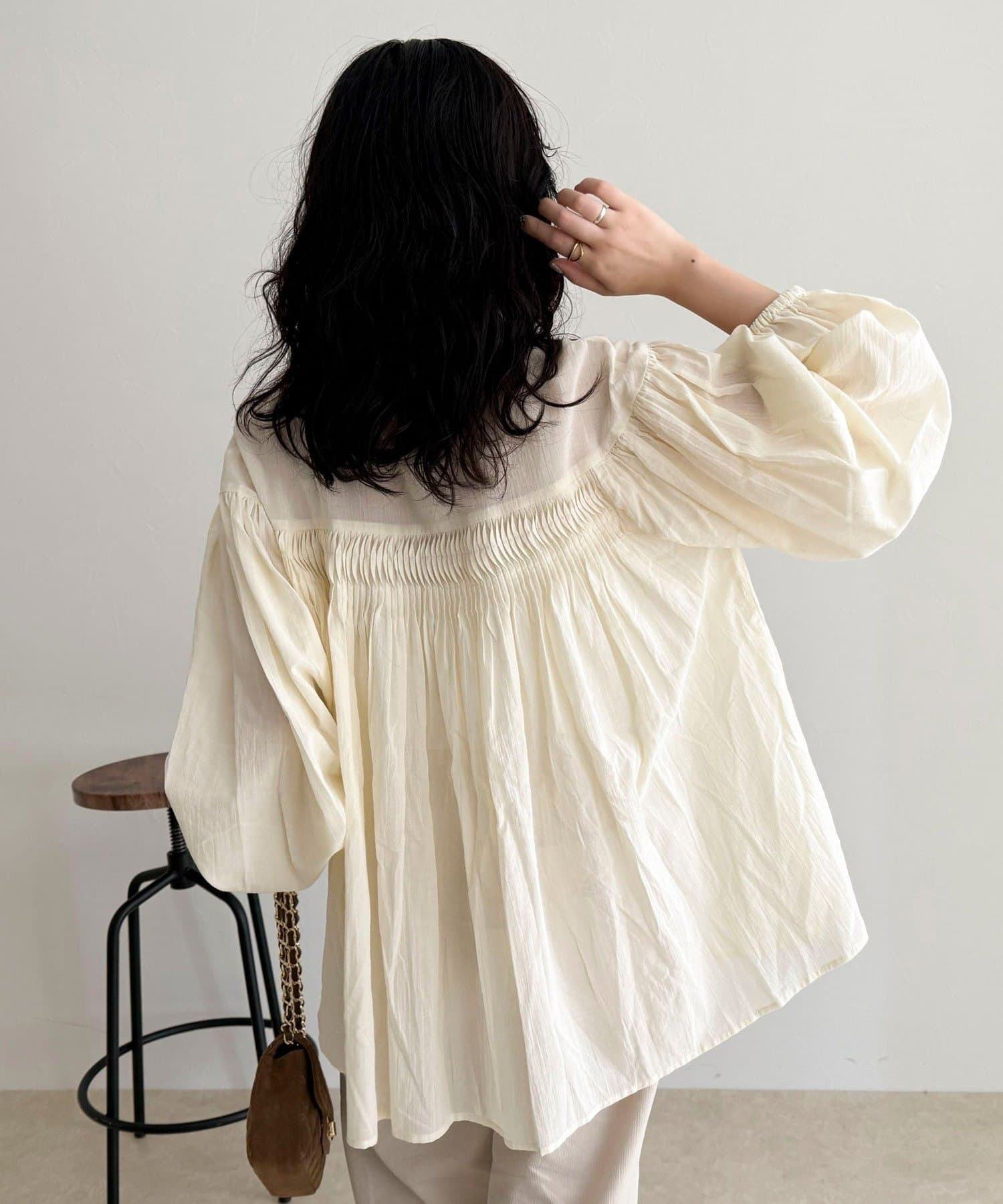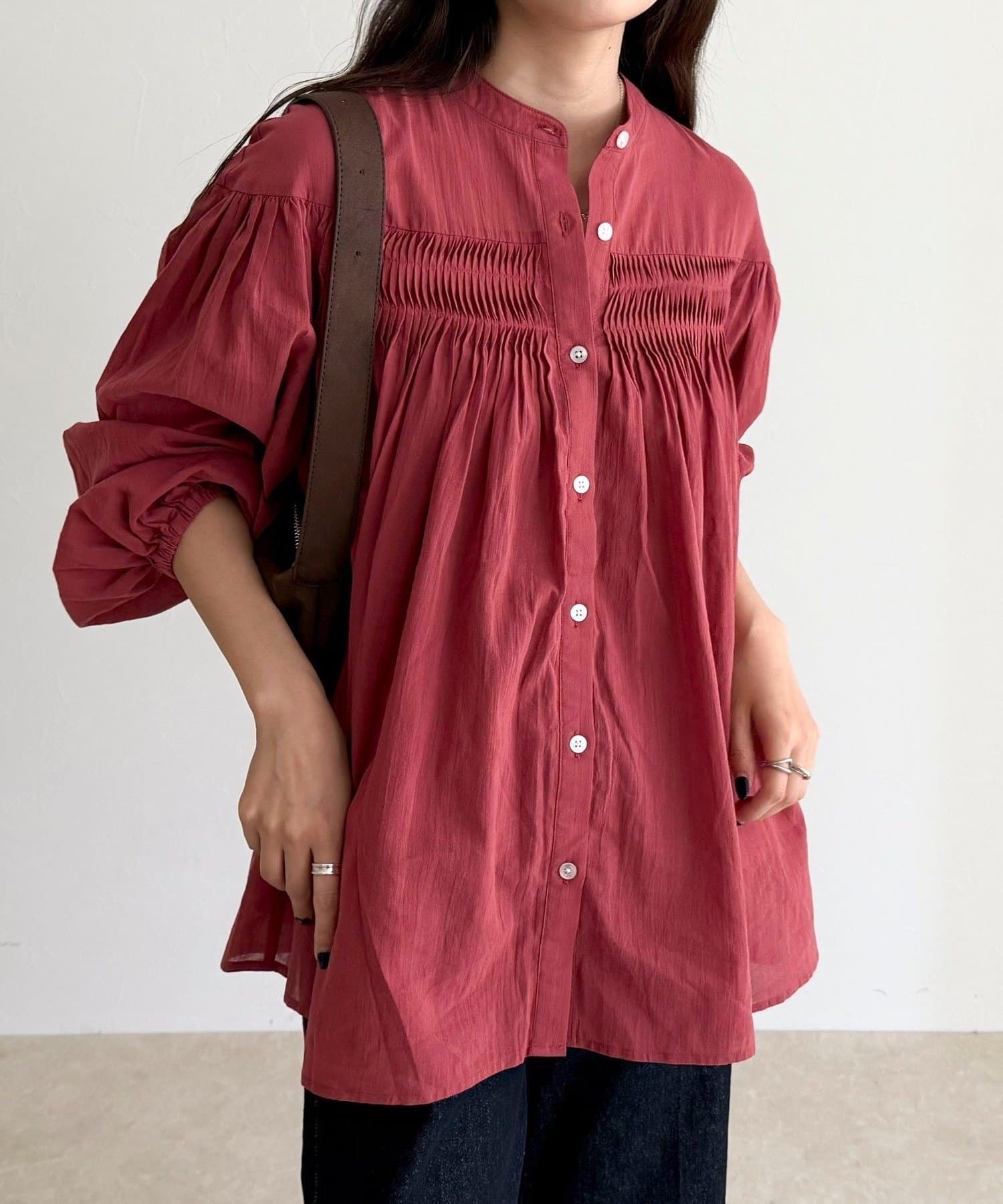 繊細なピンタックが大人の抜け感を演出する着映えブラウス