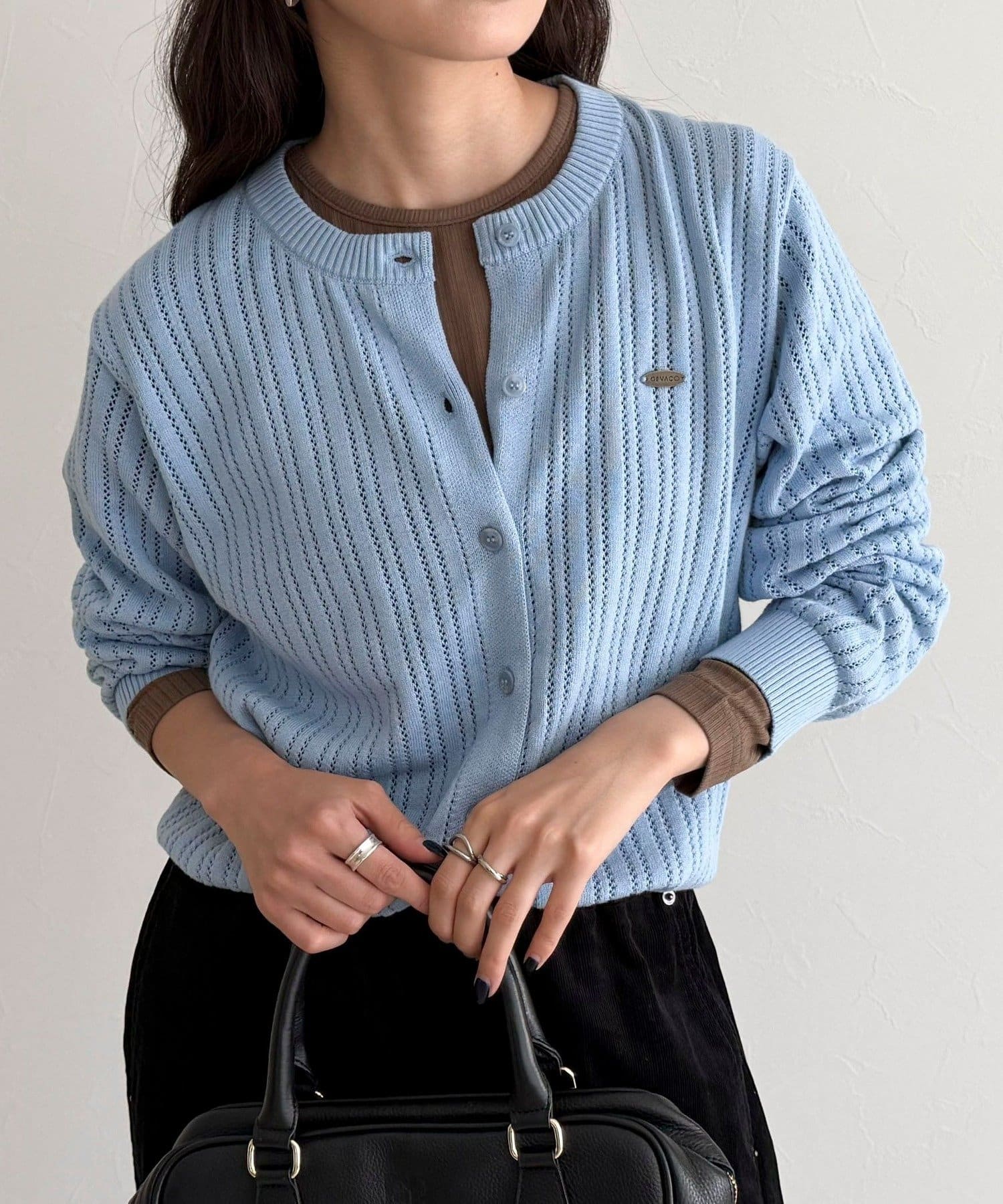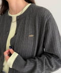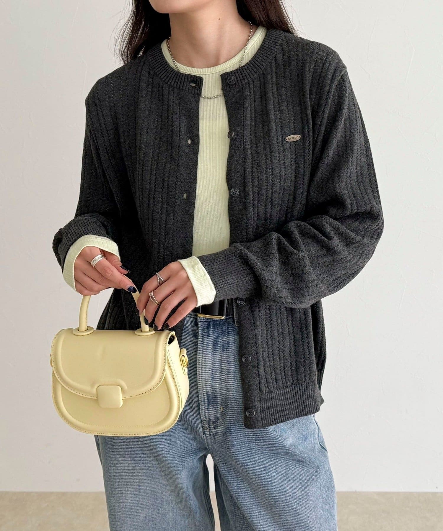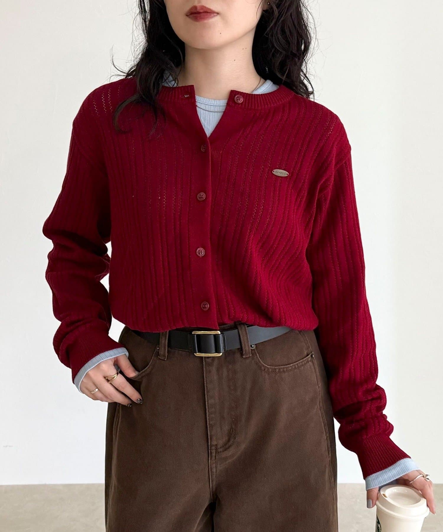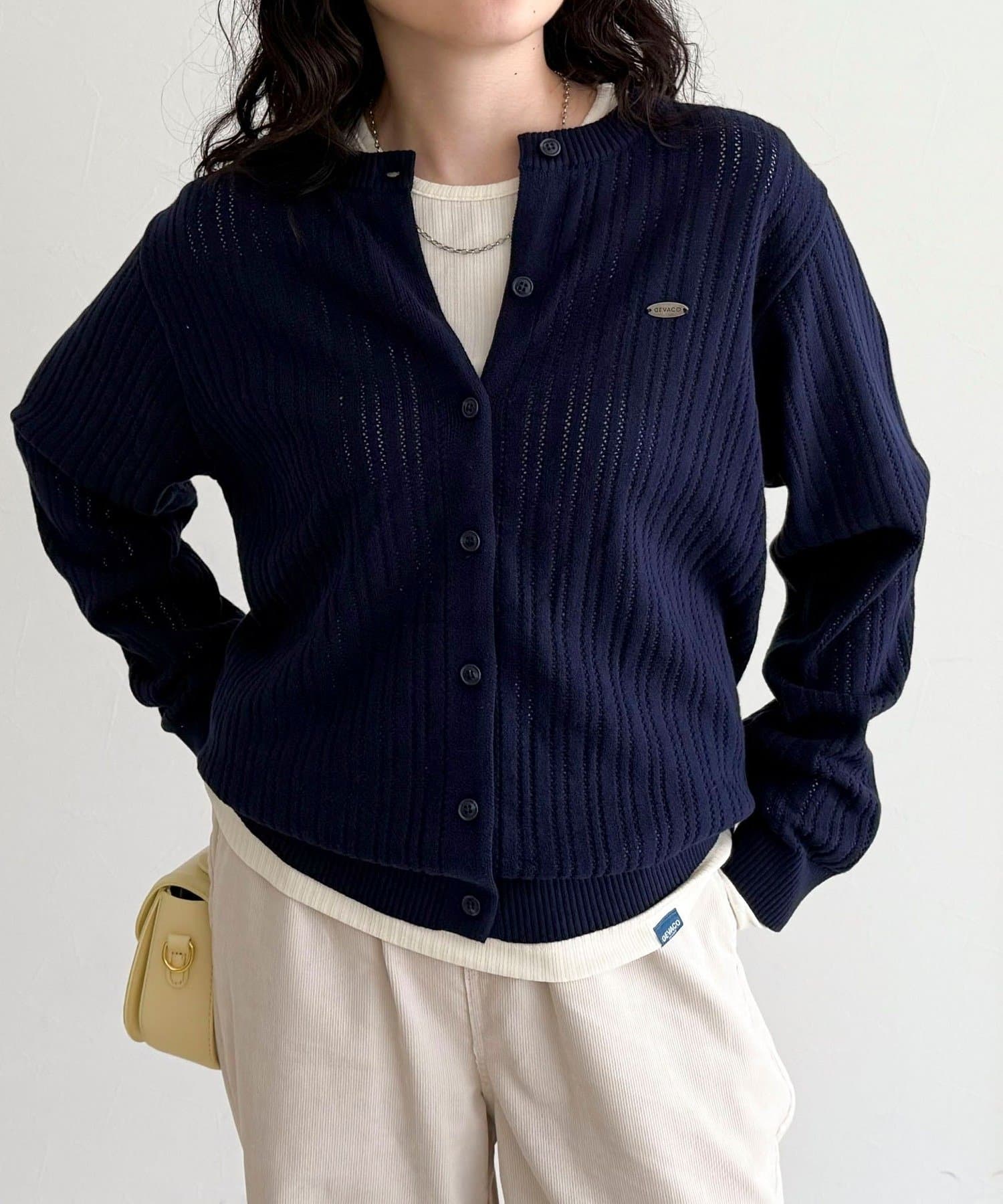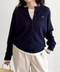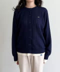 ・カーディガンの胸元にはさりげないブランドロゴのプレート付き