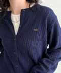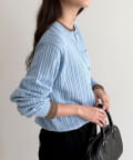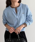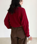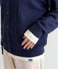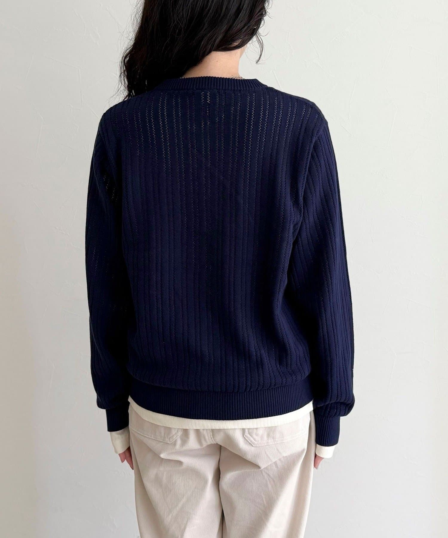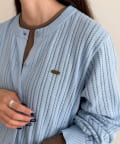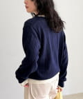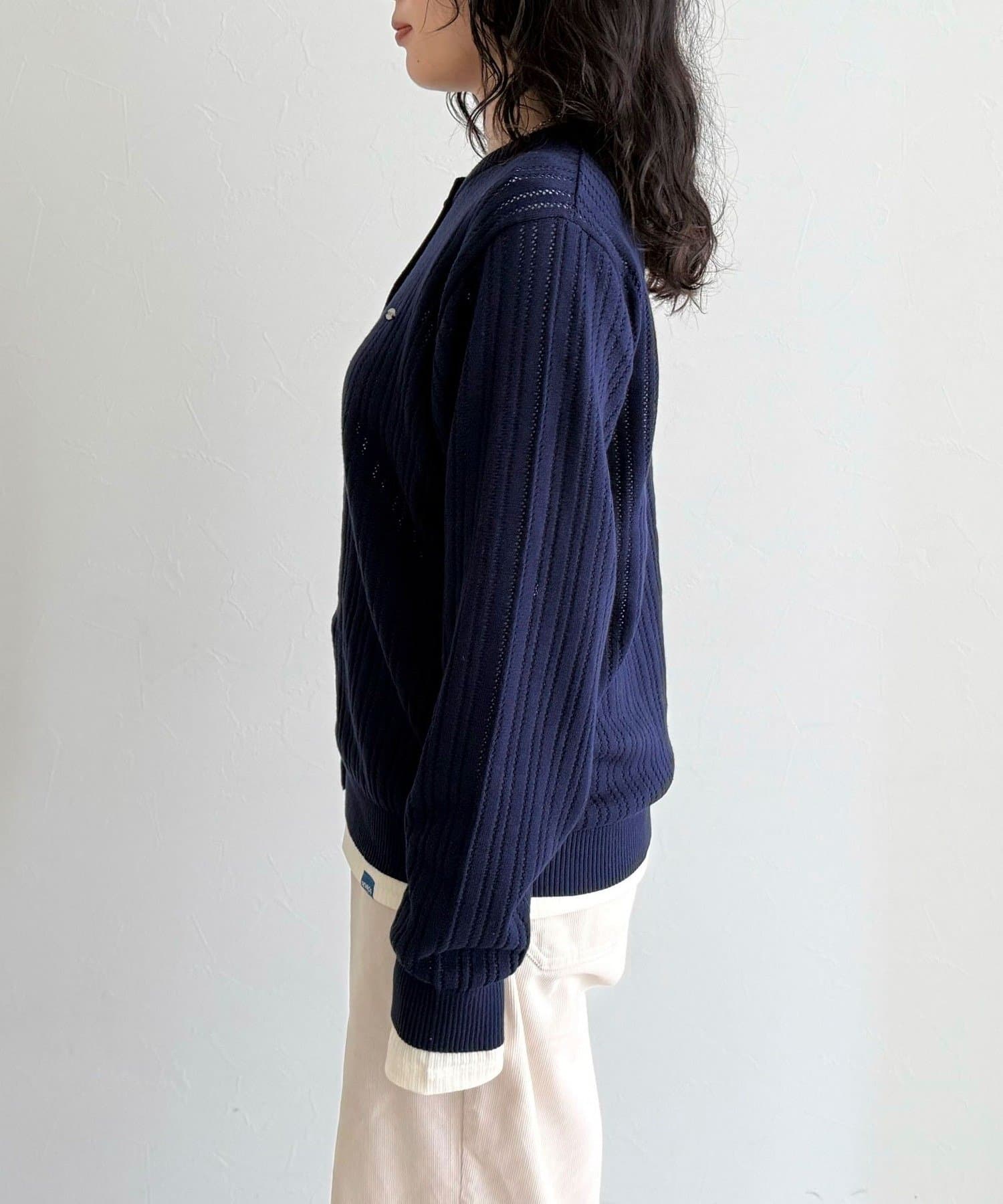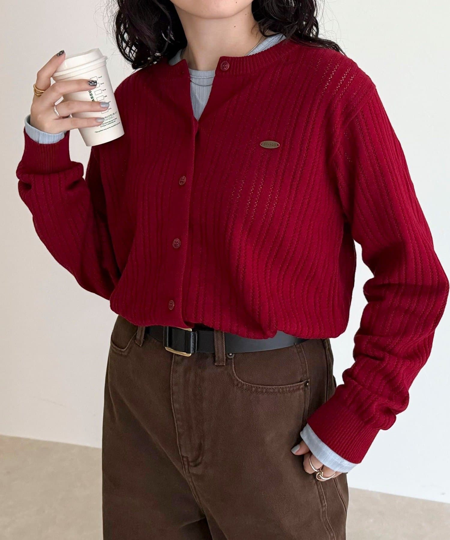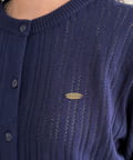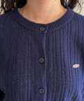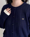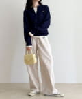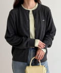 ・カーディガンの胸元にはさりげないブランドロゴのプレート付き