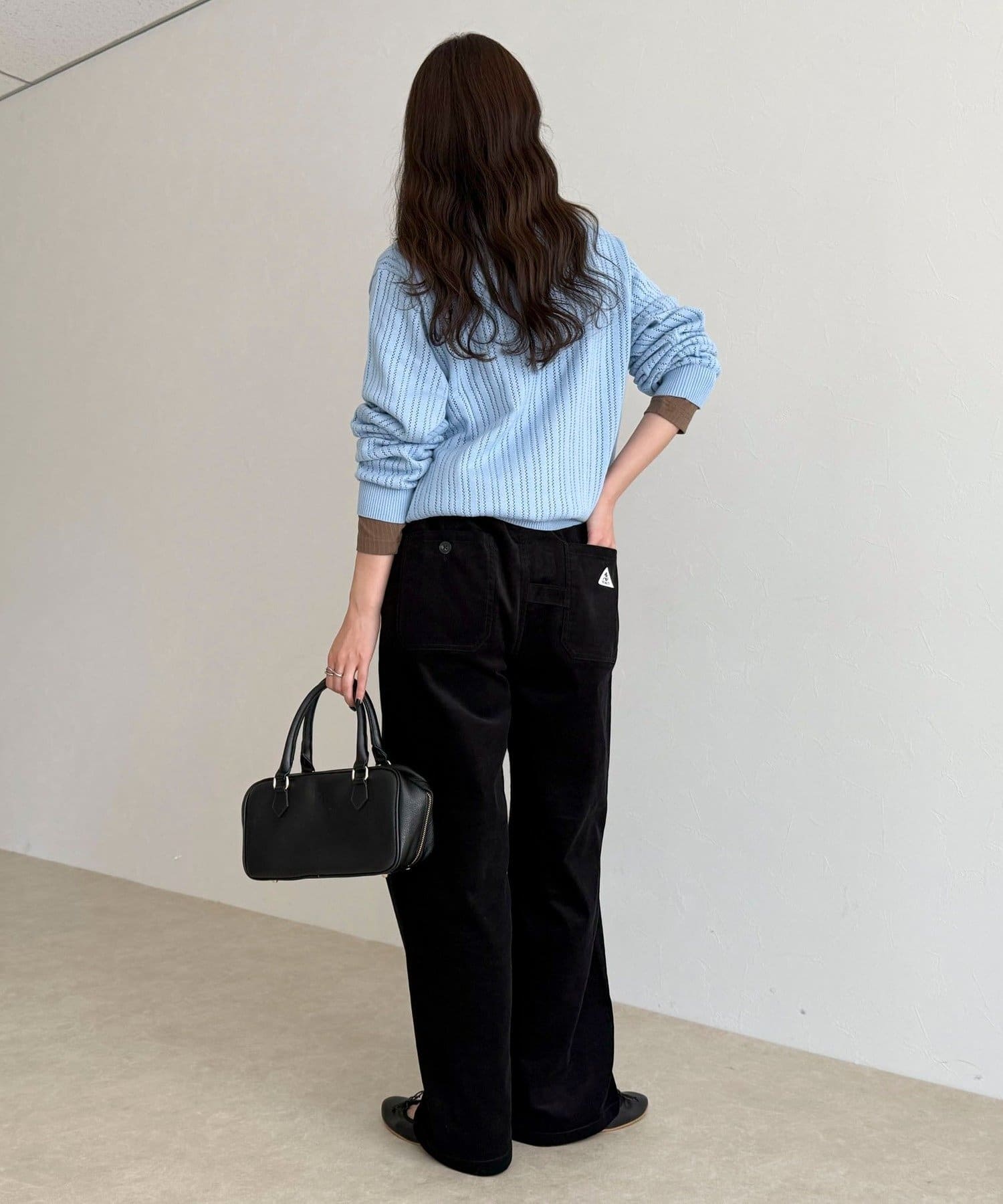 *この製品は、生地の特性上引っかかると糸が飛び出しやすい傾向があります。着用時にはベルトやバック、周囲の壁など表面の粗いものとの摩擦や引っかかりにご注意ください。