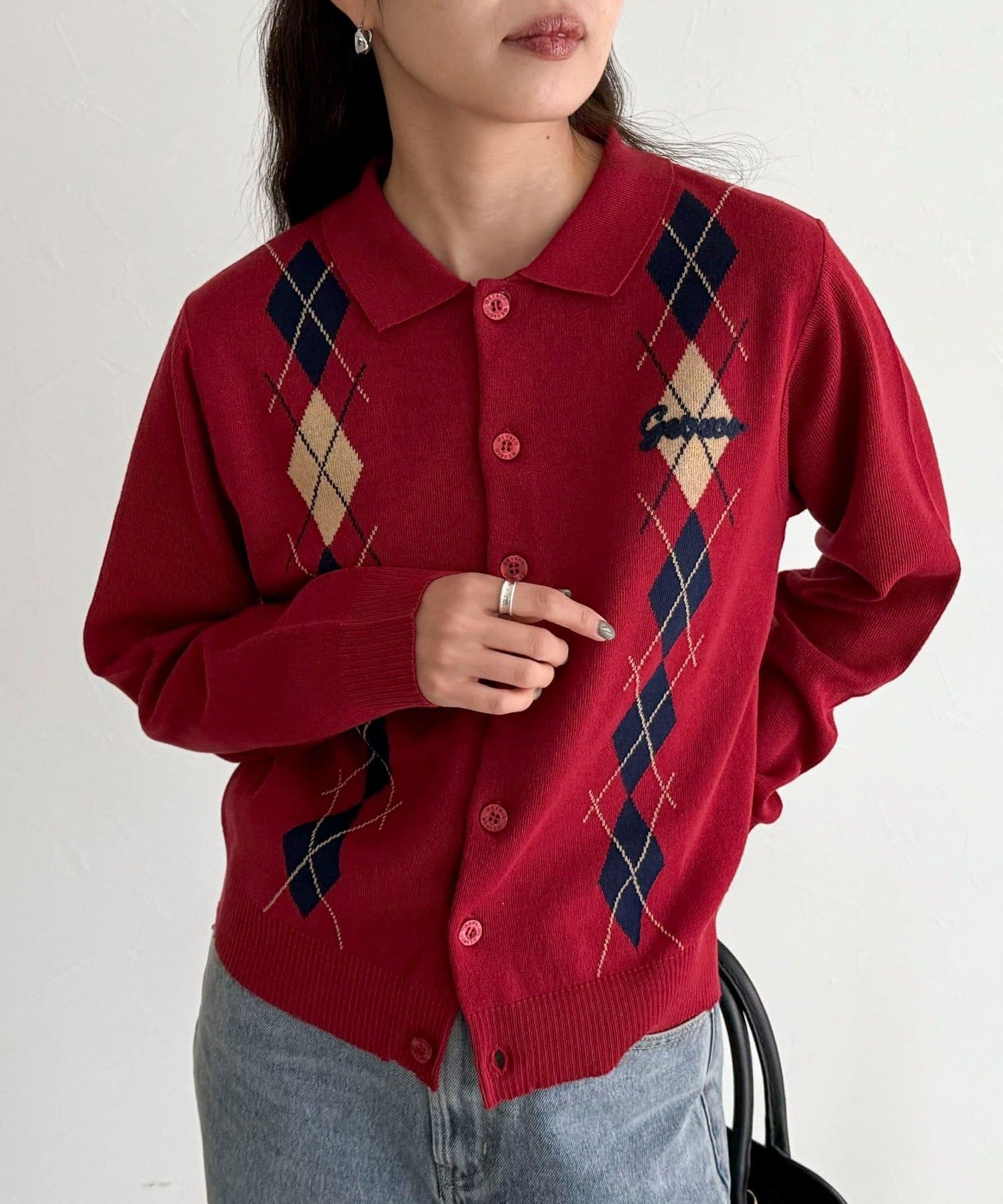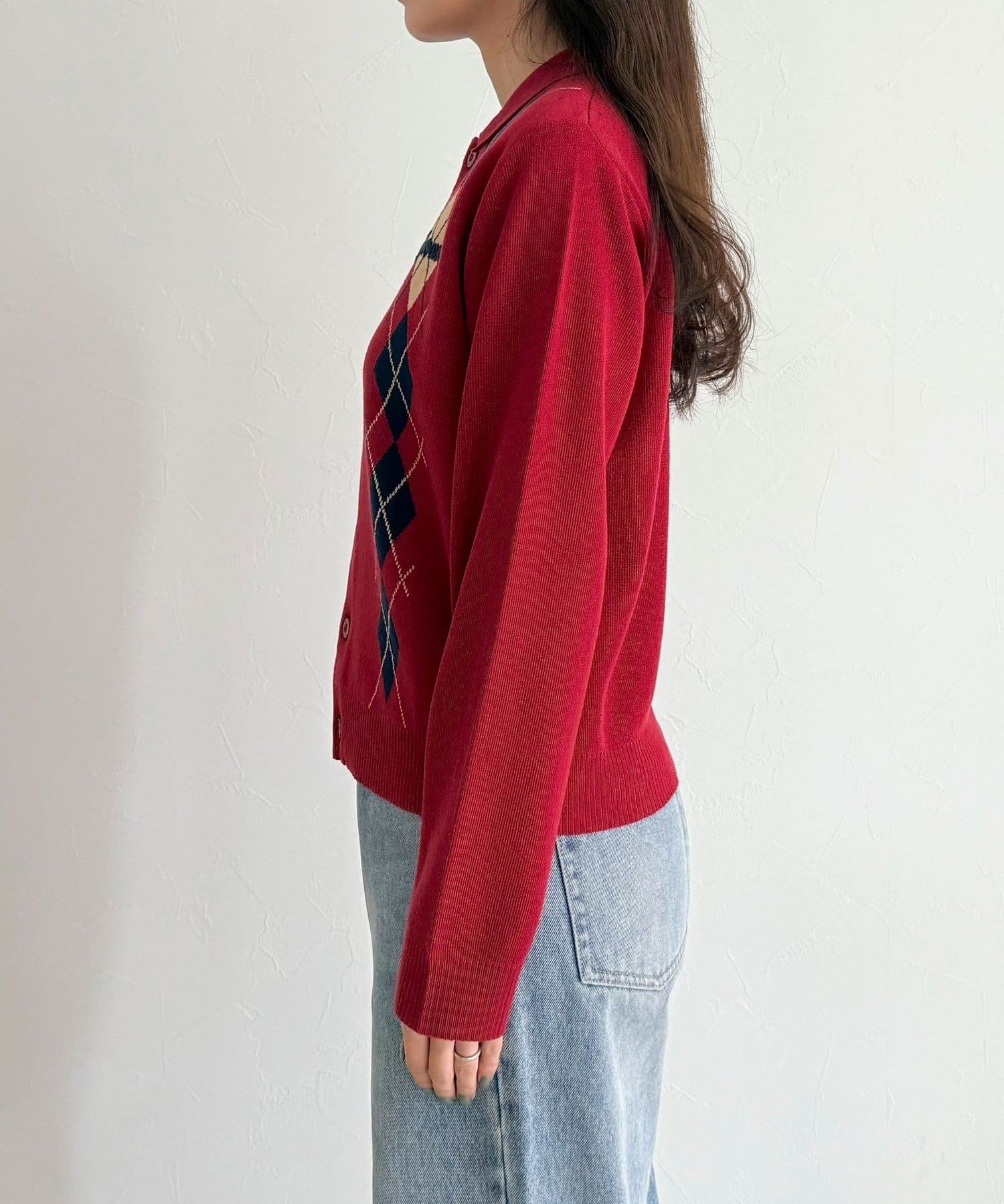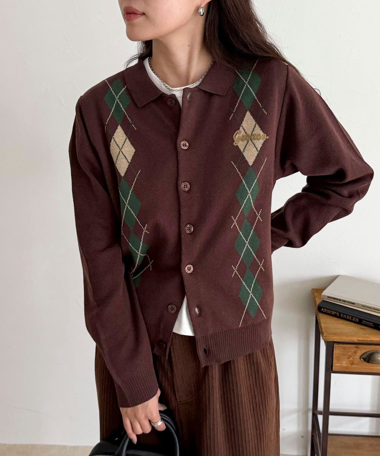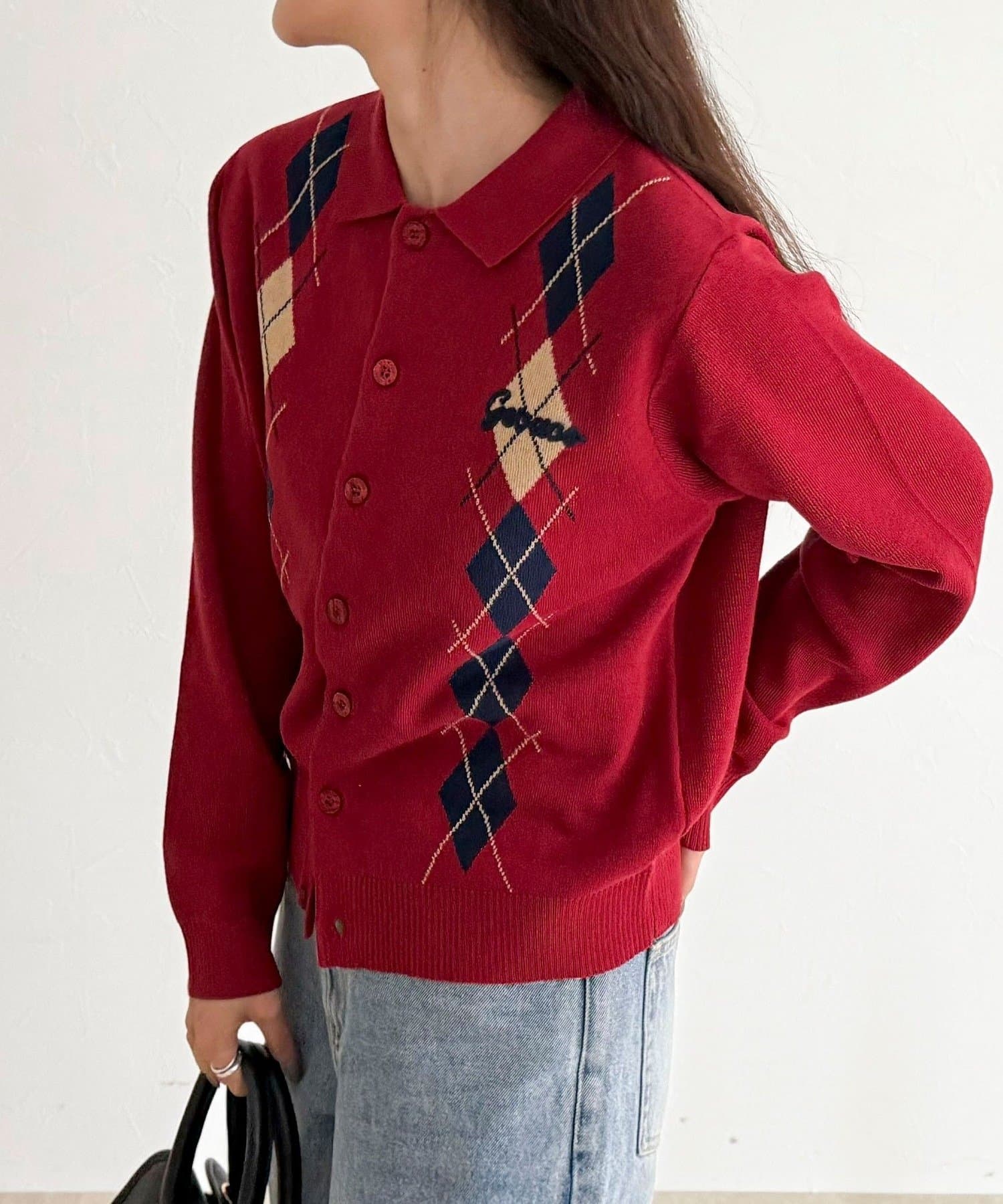 トラディショナルなアーガイル柄が映えるニットカーディガン