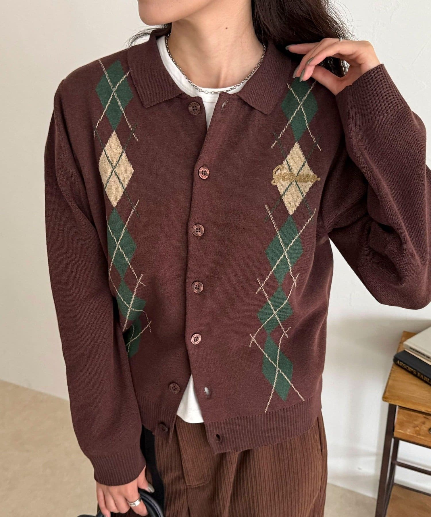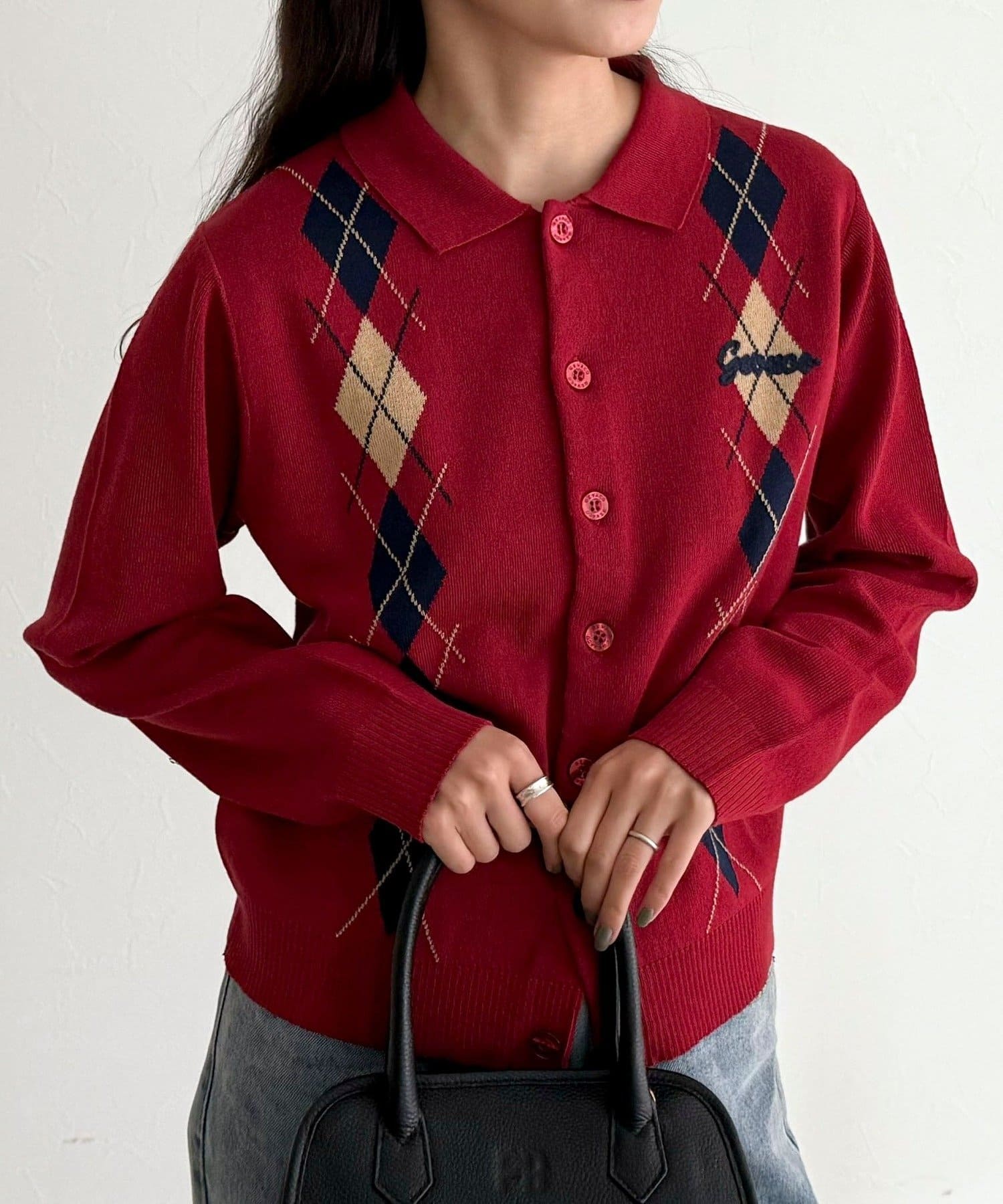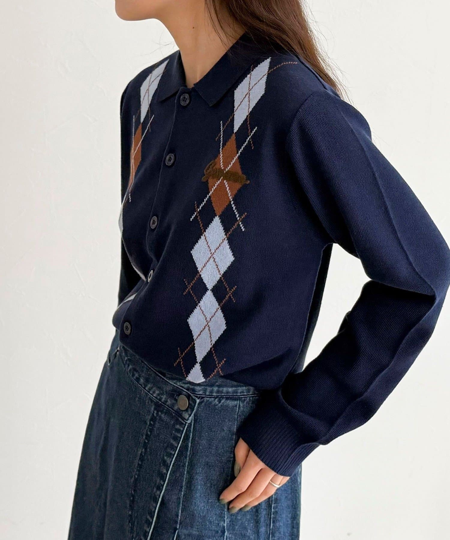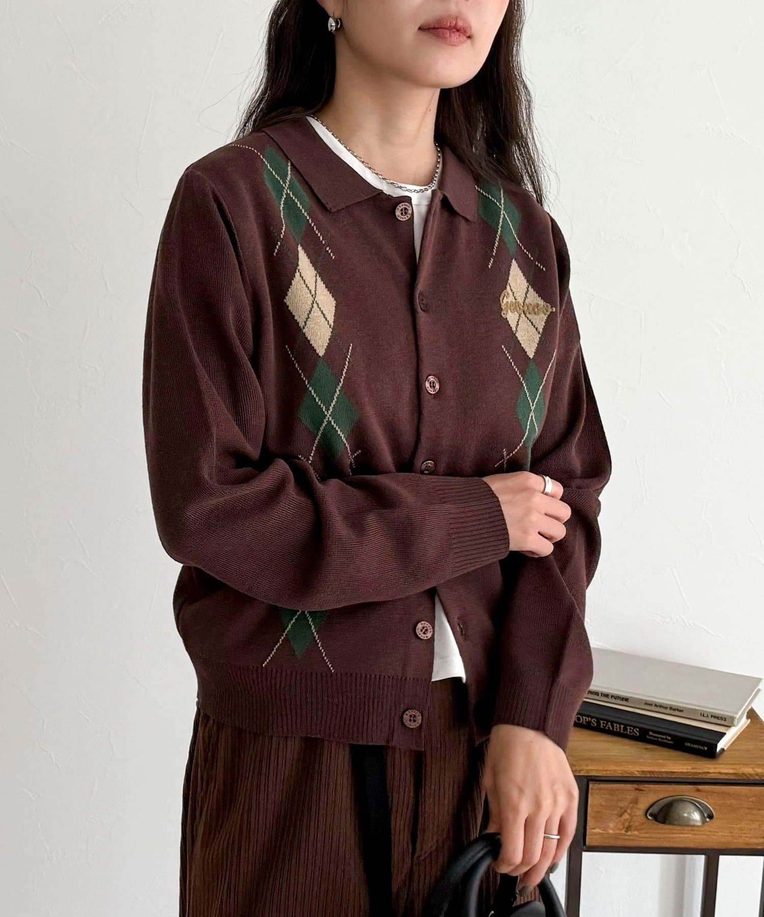 トラディショナルなアーガイル柄が映えるニットカーディガン