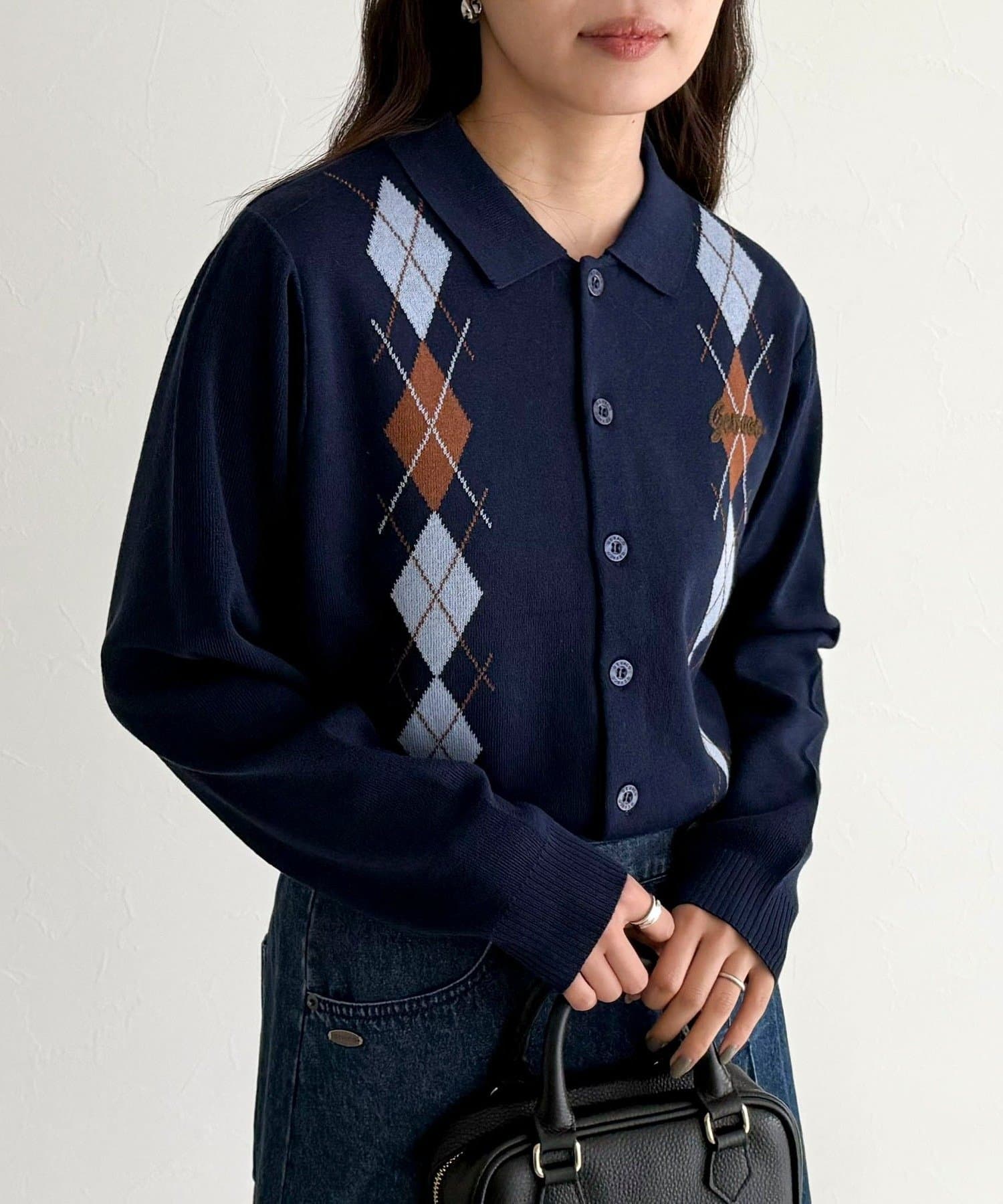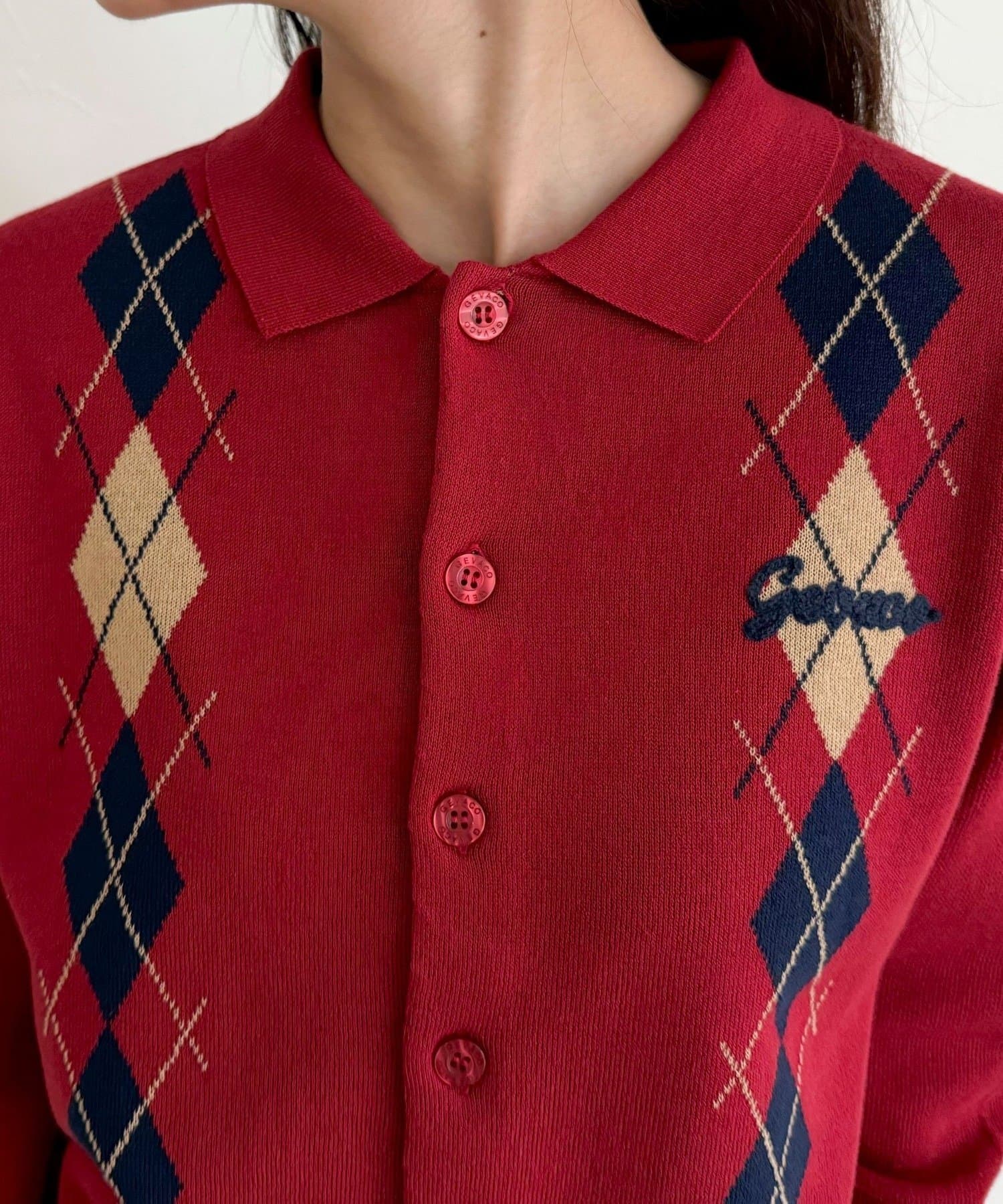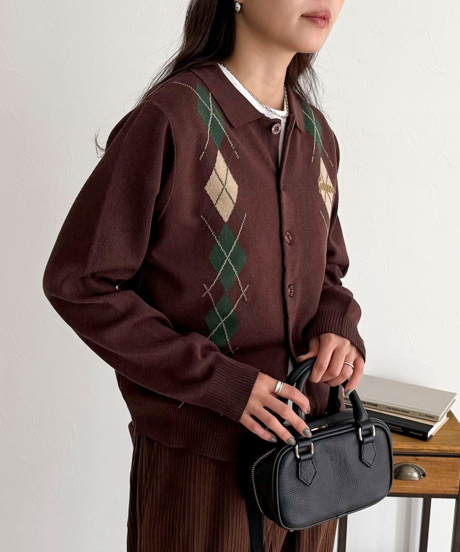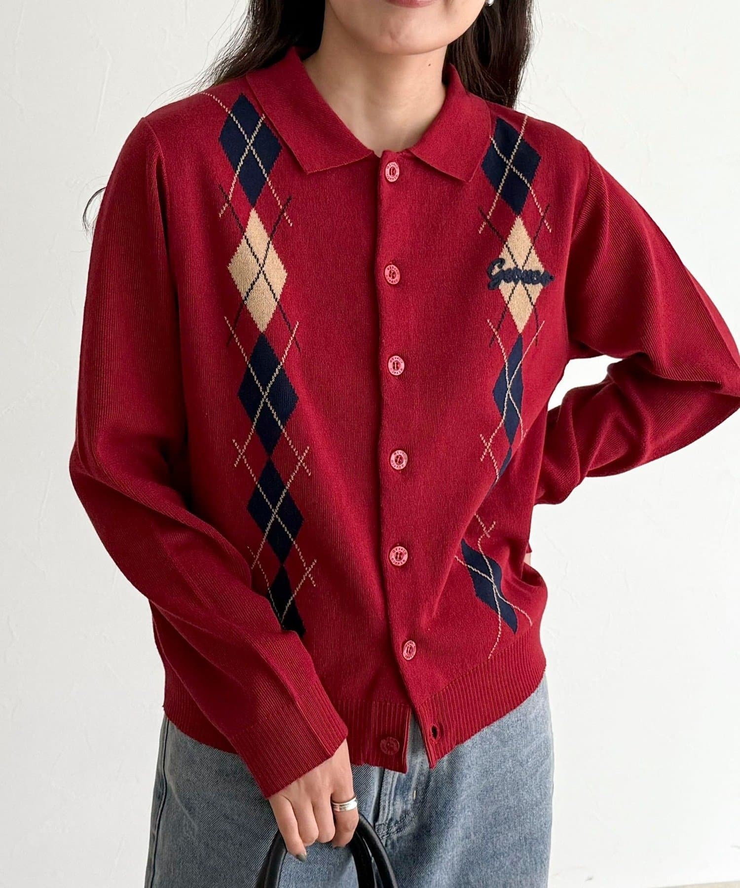 トラディショナルなアーガイル柄が映えるニットカーディガン