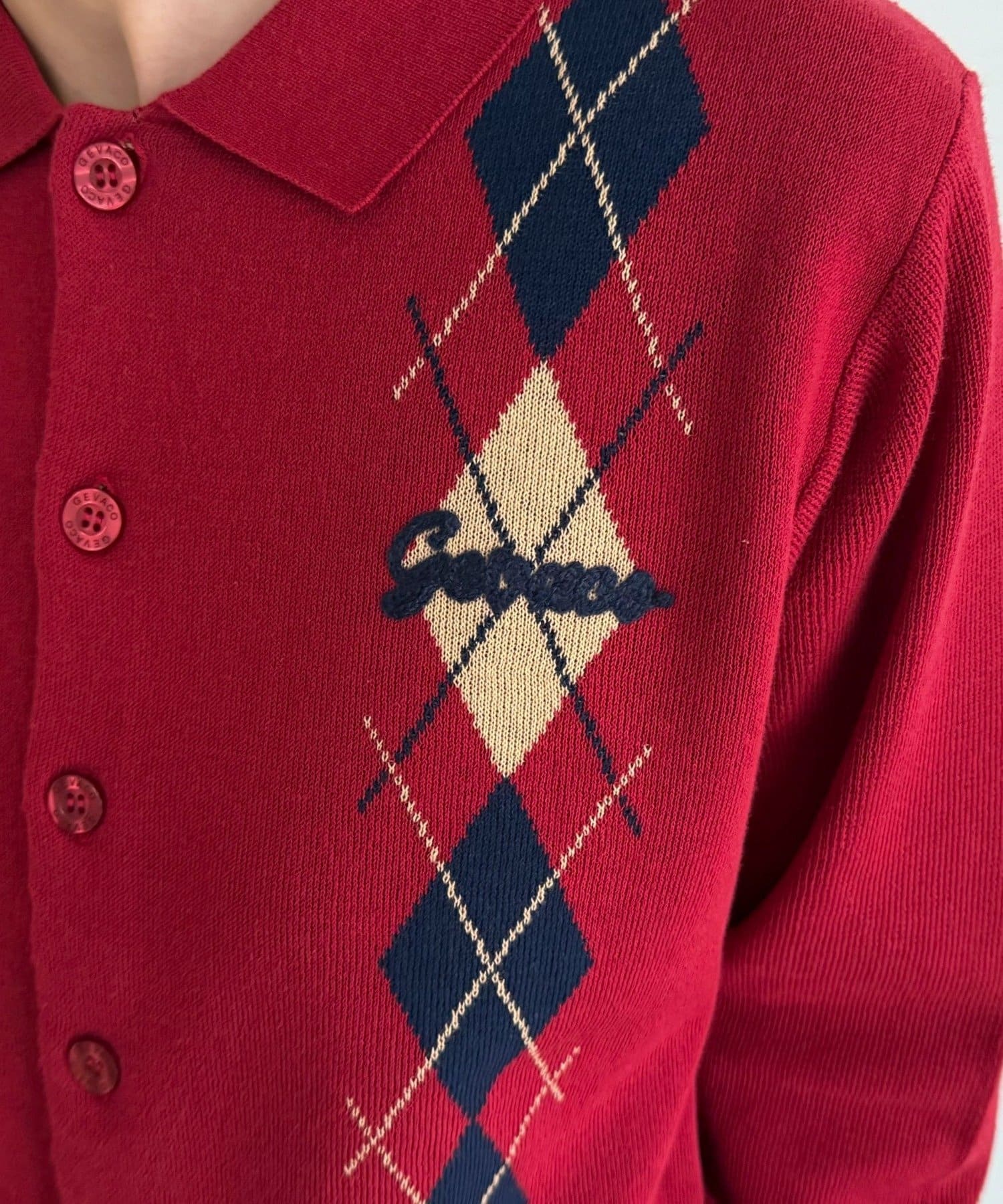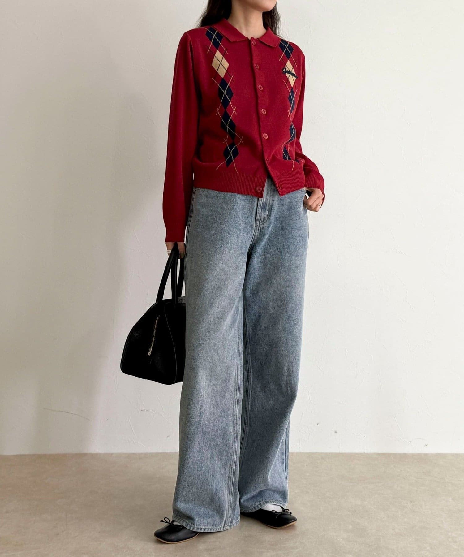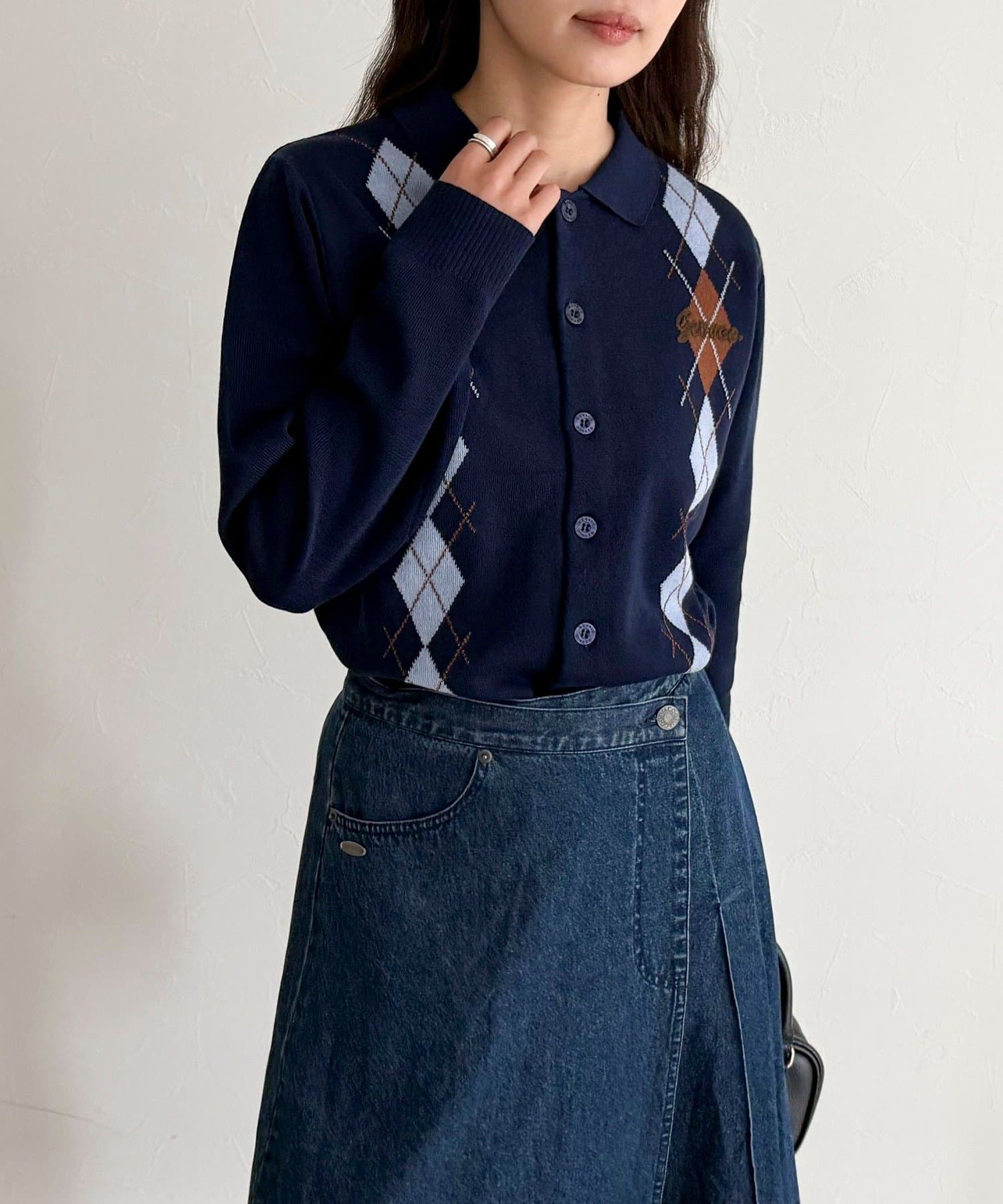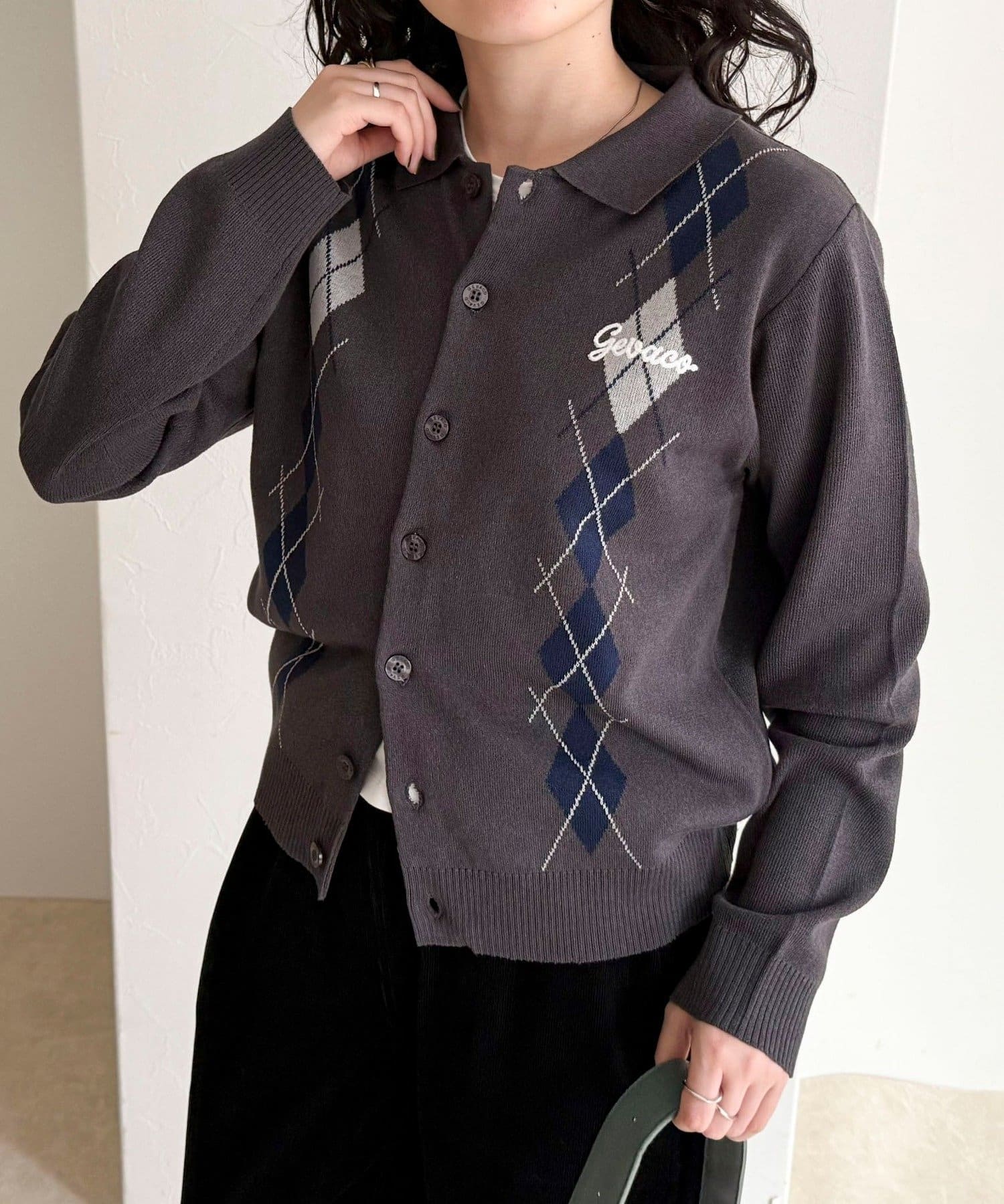 トラディショナルなアーガイル柄が映えるニットカーディガン