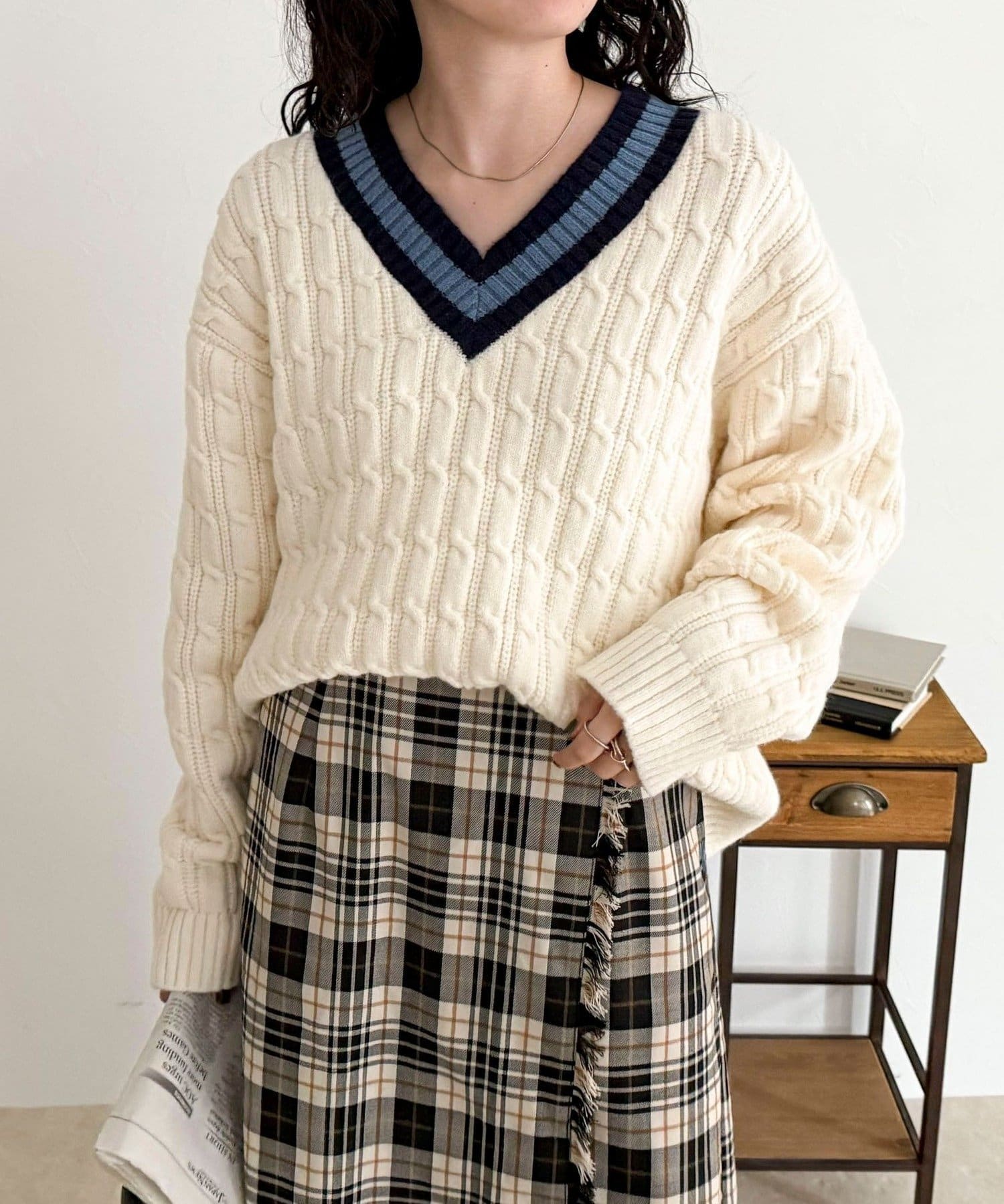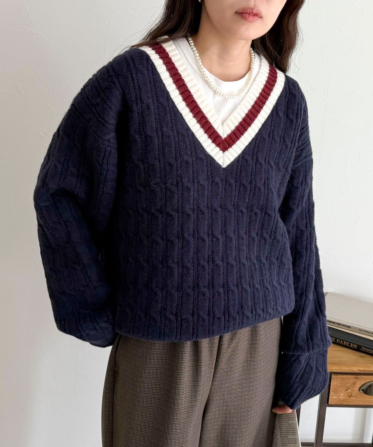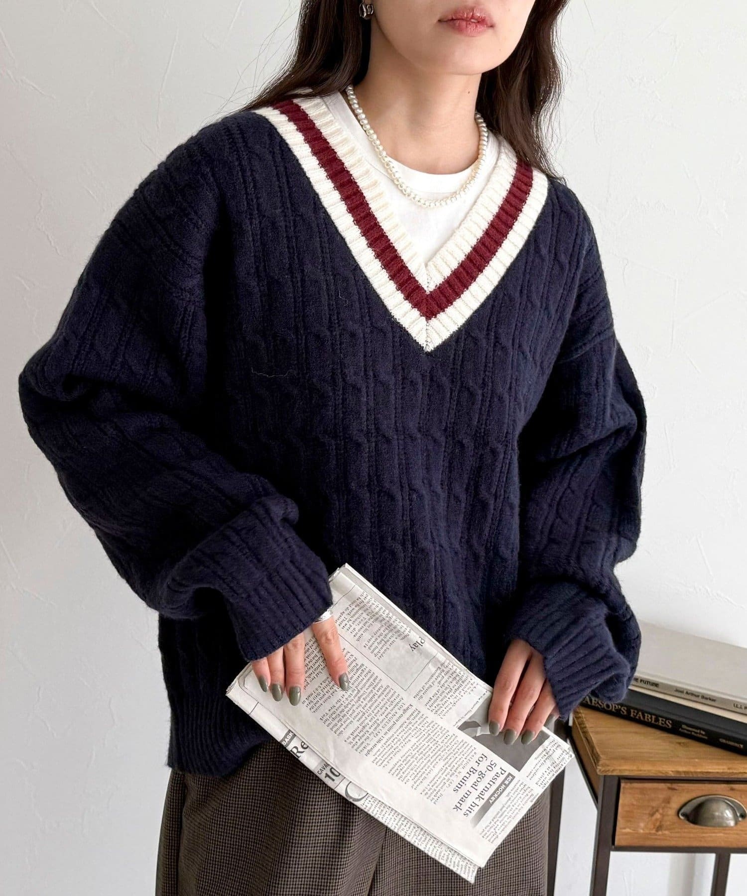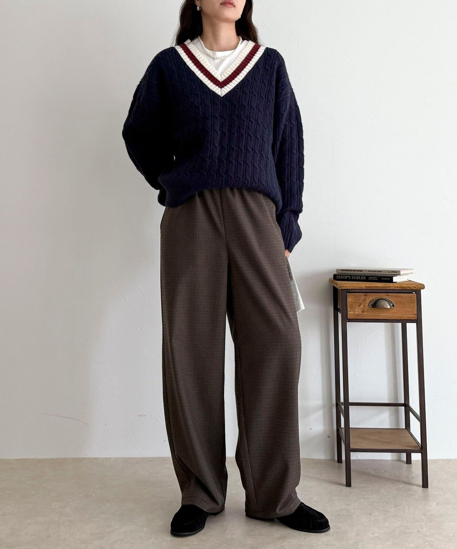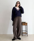 ・Vネックラインとほどよいゆとりのシルエットで、1枚で着ても重ね着してもバランス良く決まります