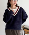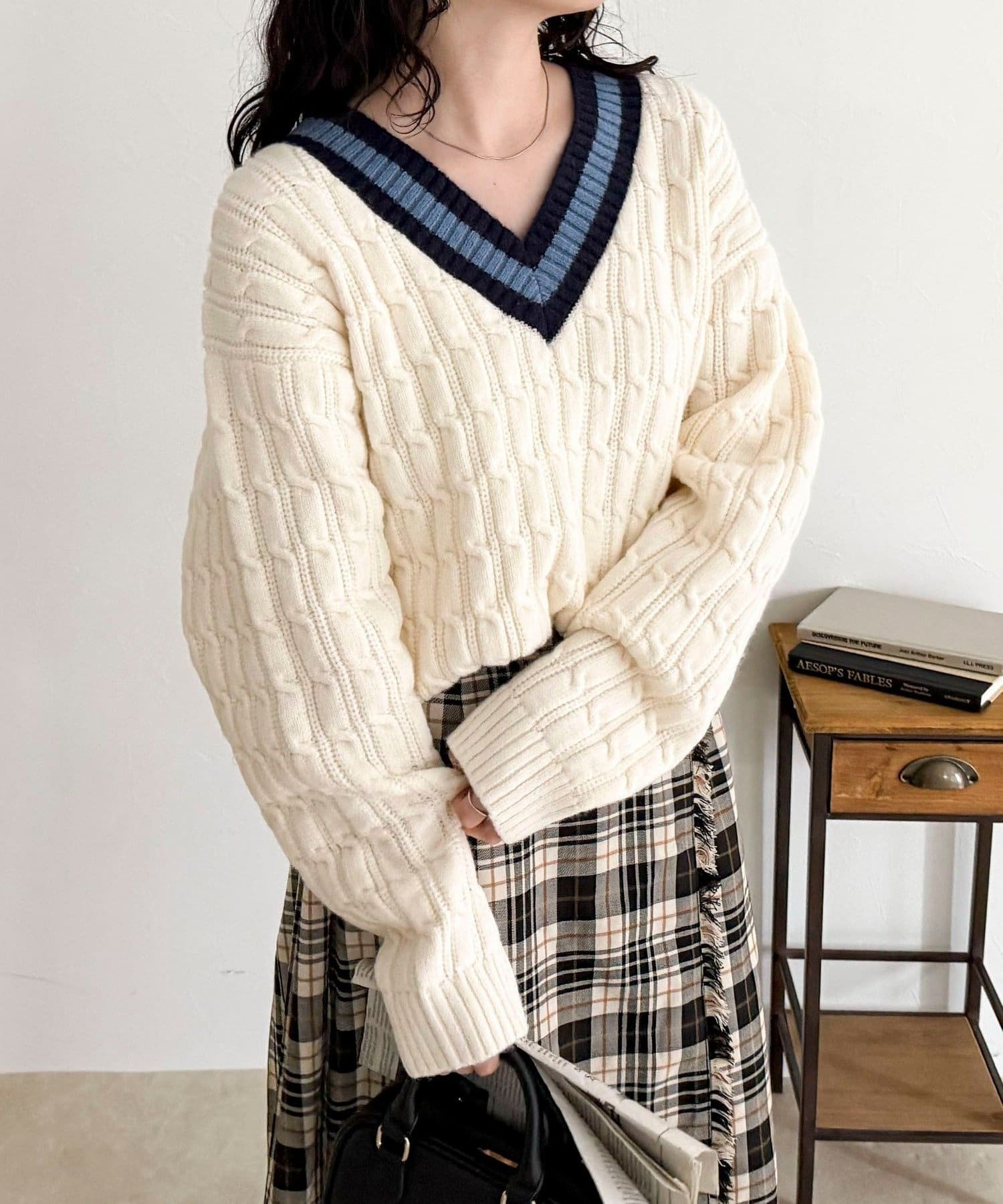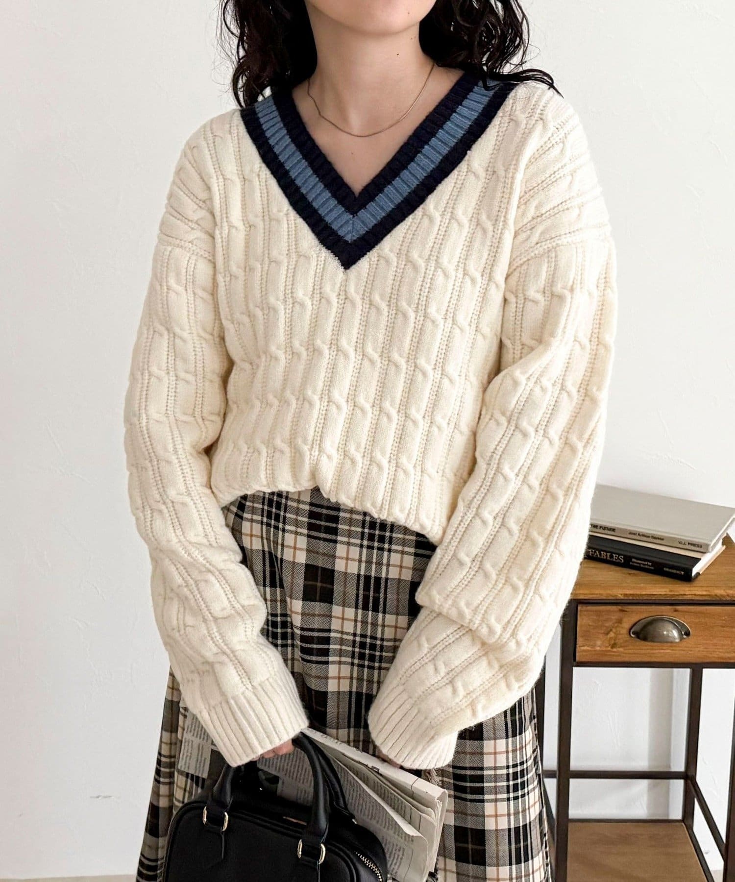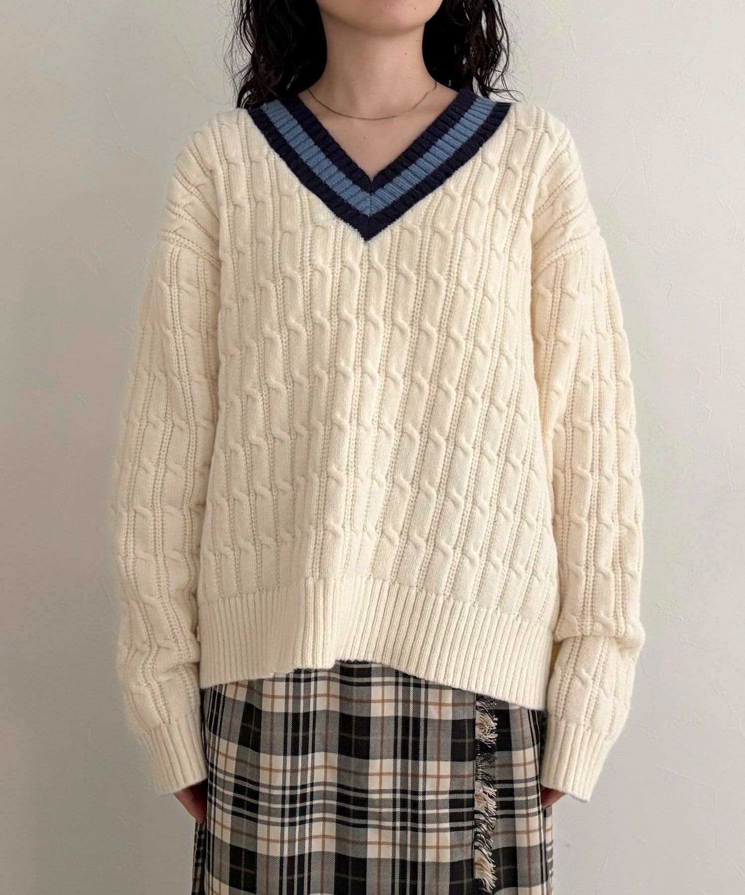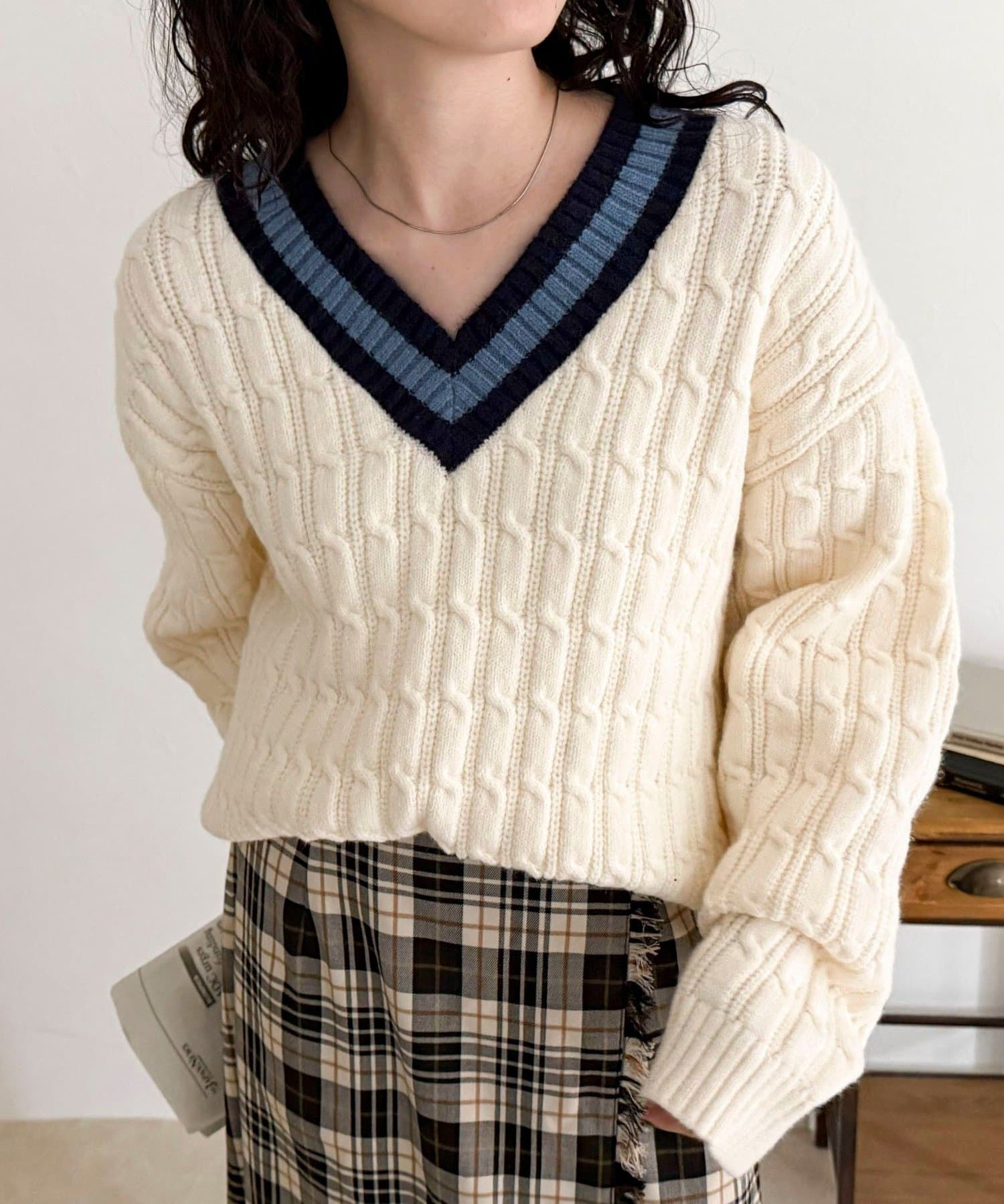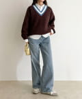 ・Vネックラインとほどよいゆとりのシルエットで、1枚で着ても重ね着してもバランス良く決まります