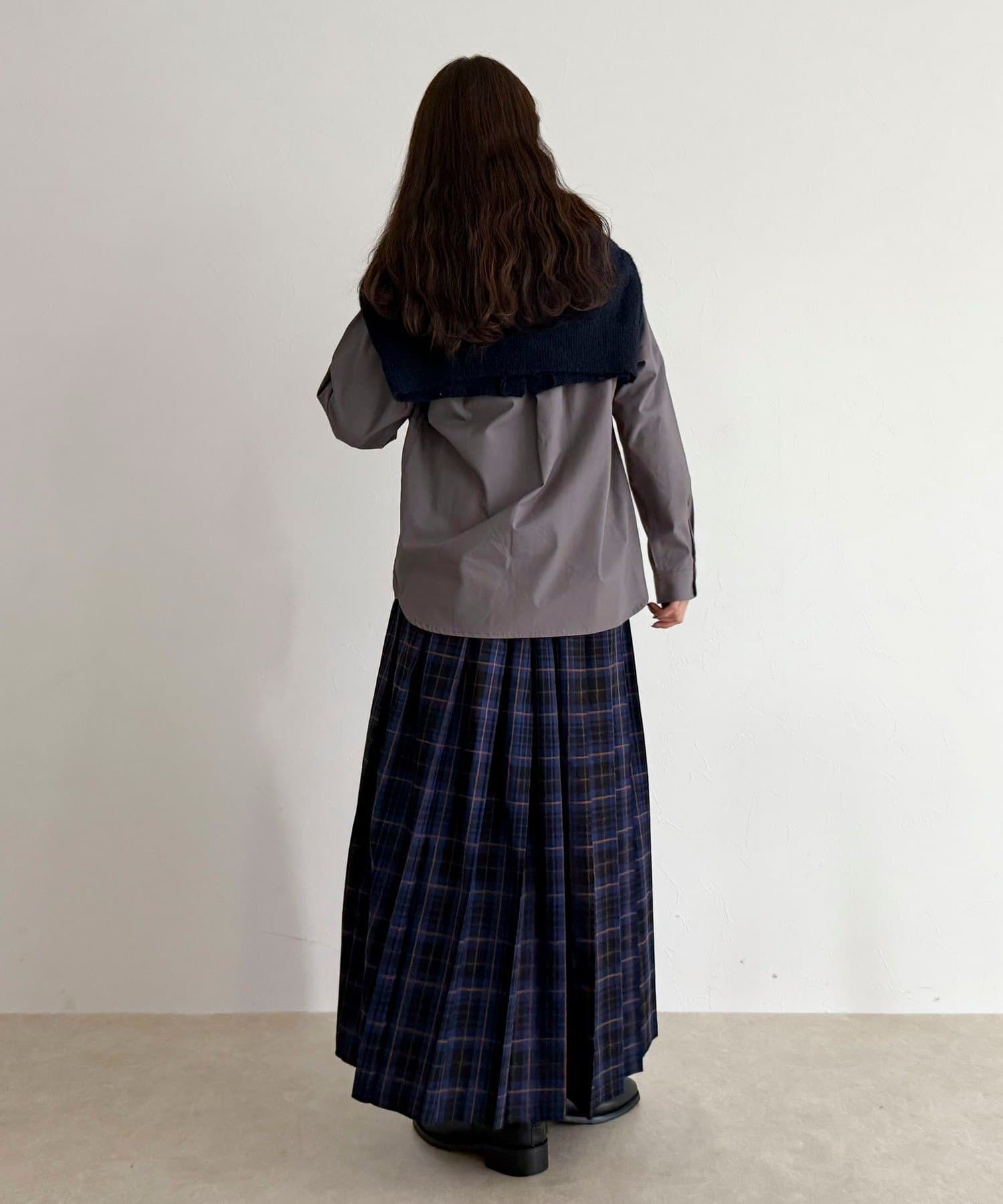 ・後ろはプリーツ仕様で、動きに女性らしい表情をプラス