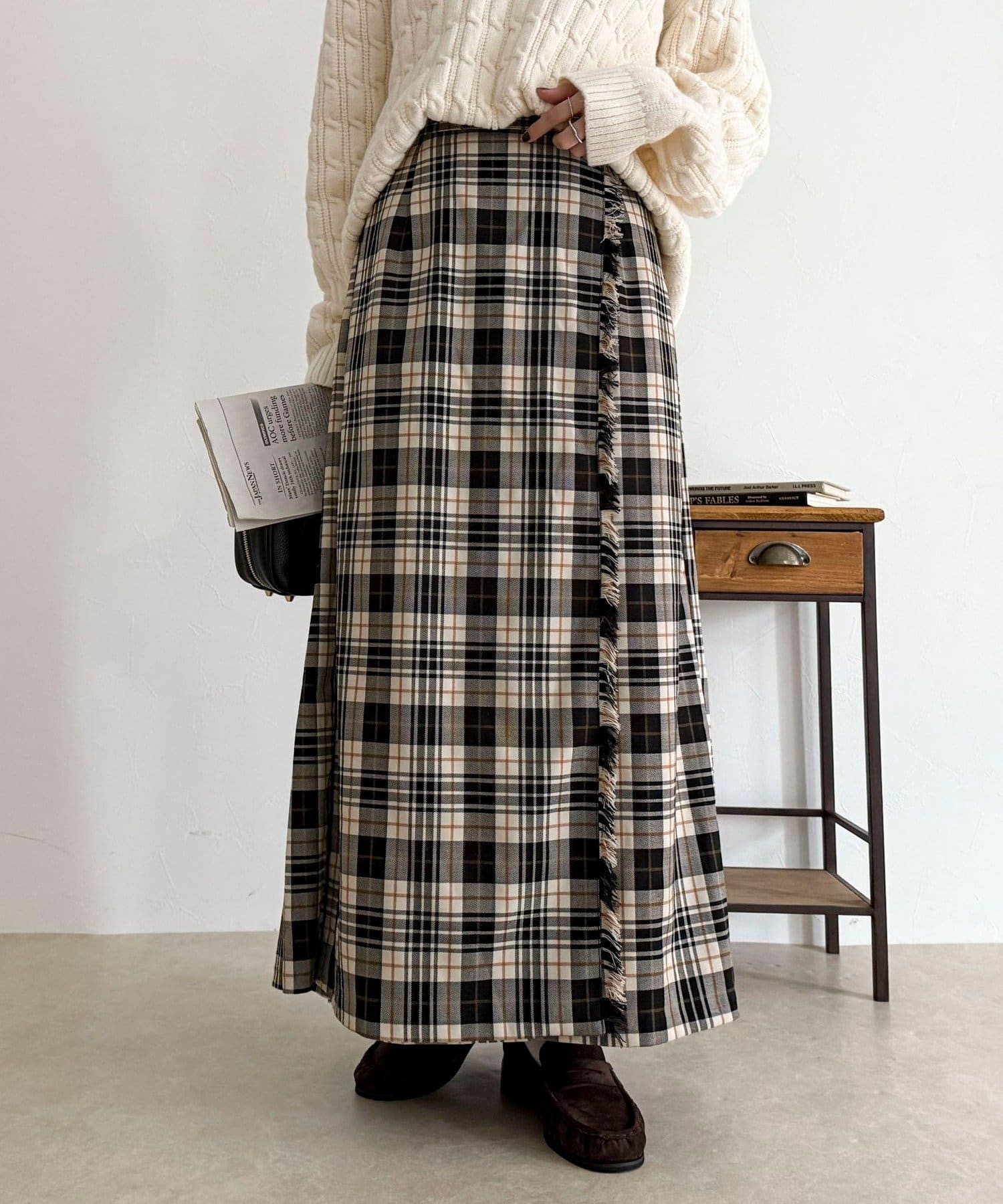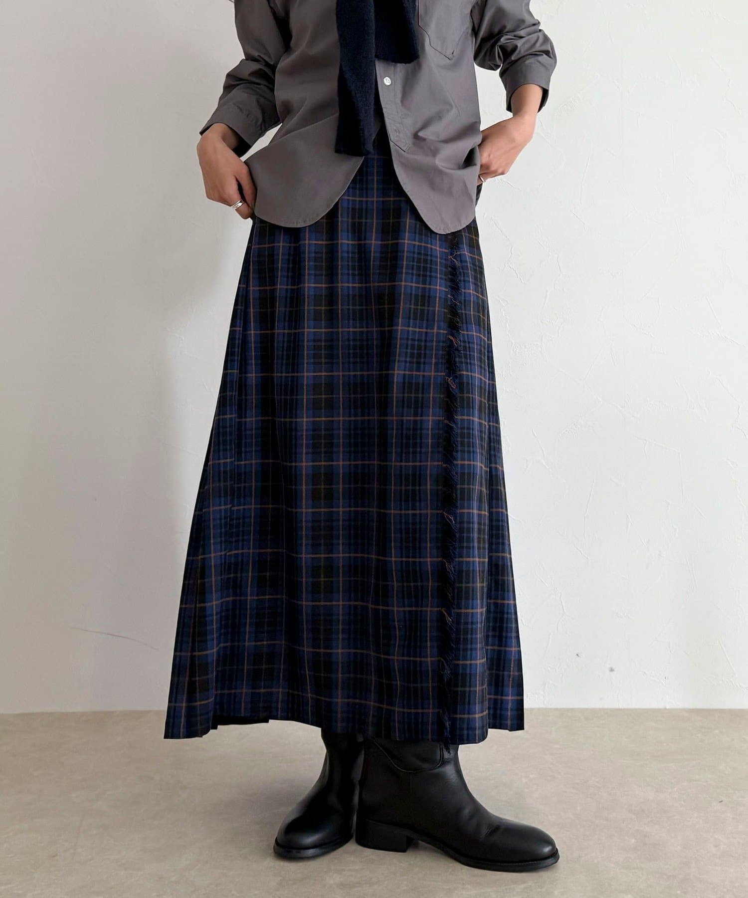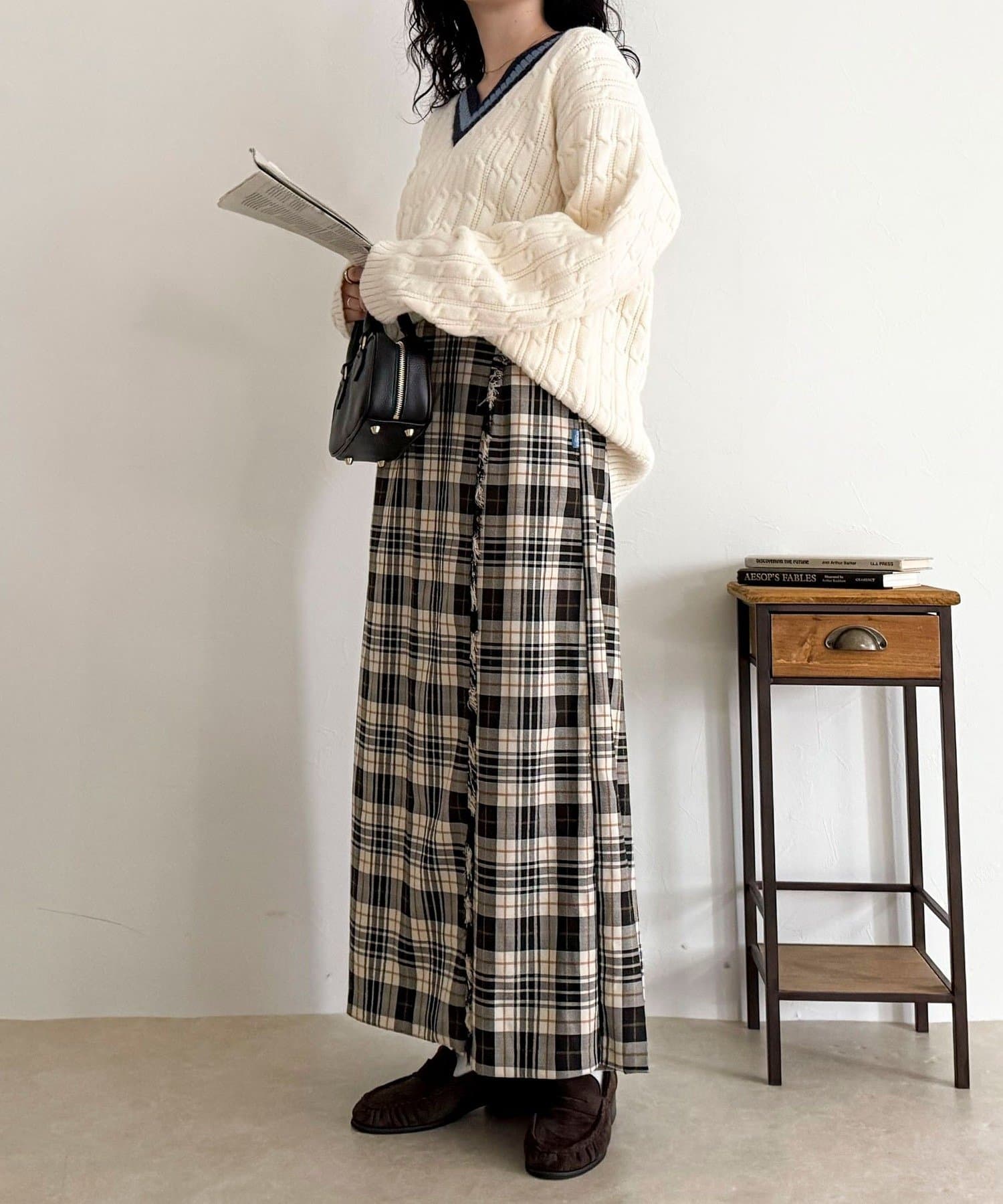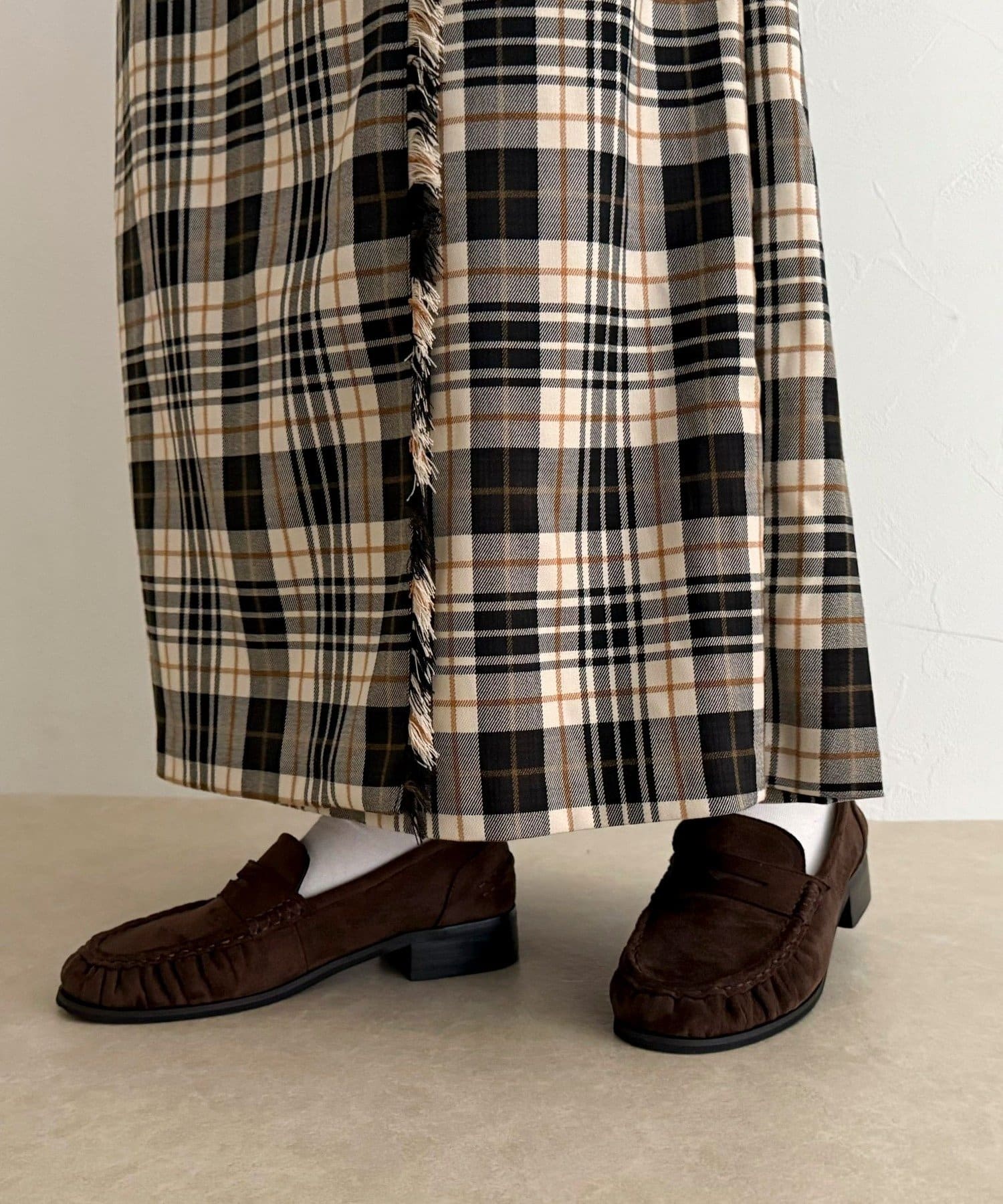【GEVACO/ゲバコ】チェックサイドベルトスカート