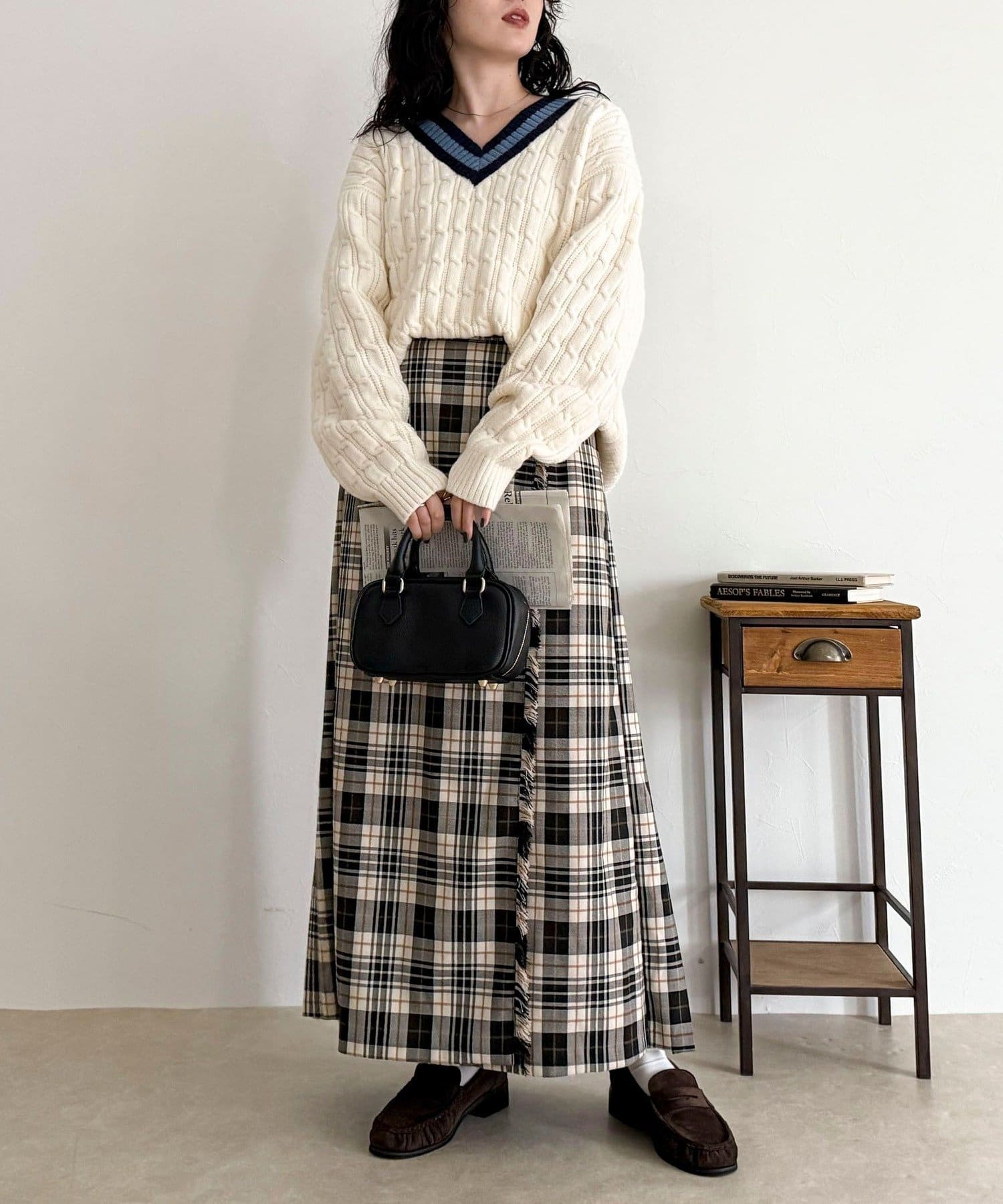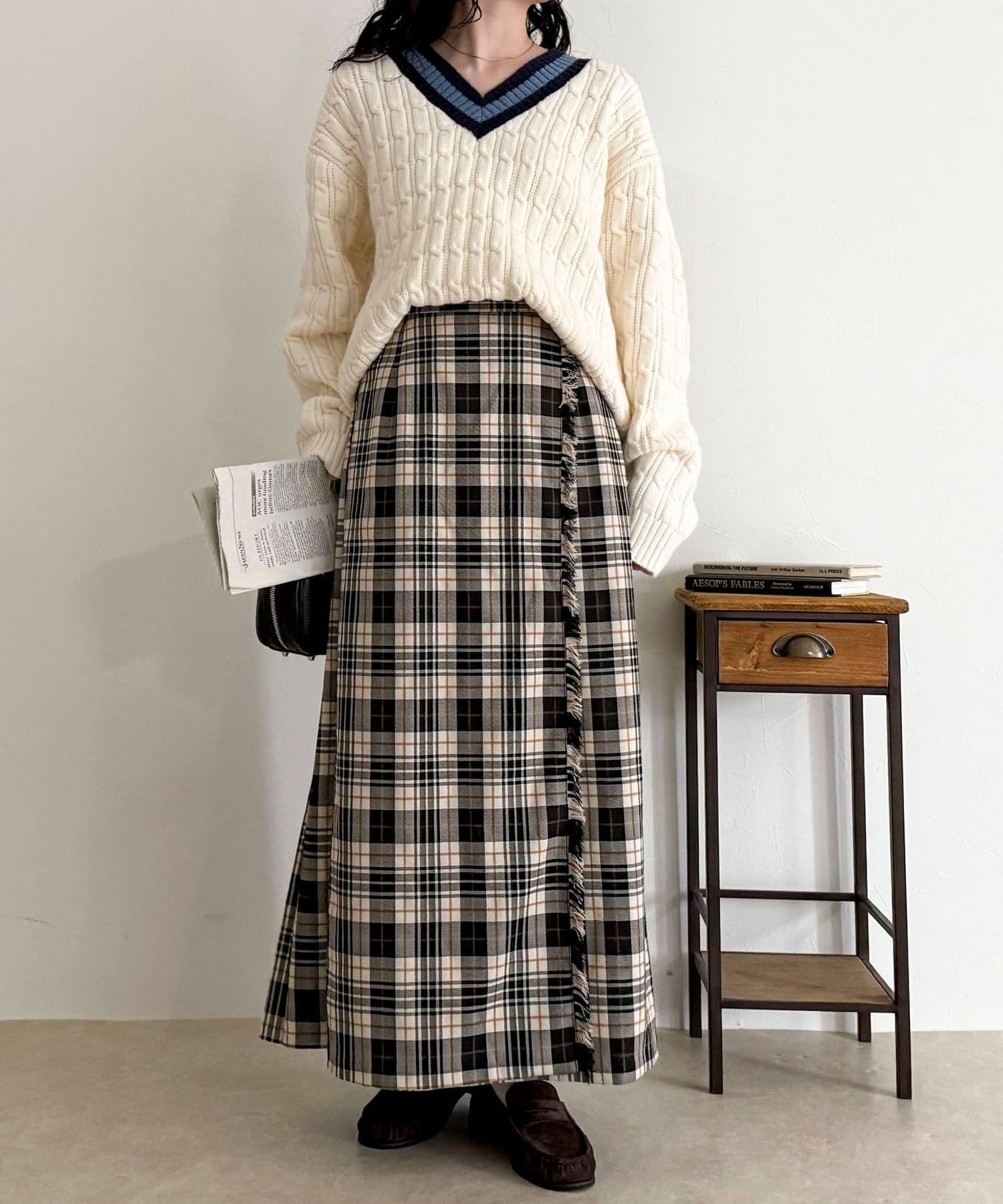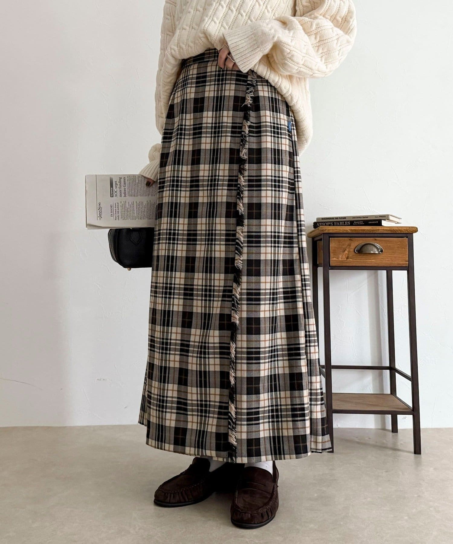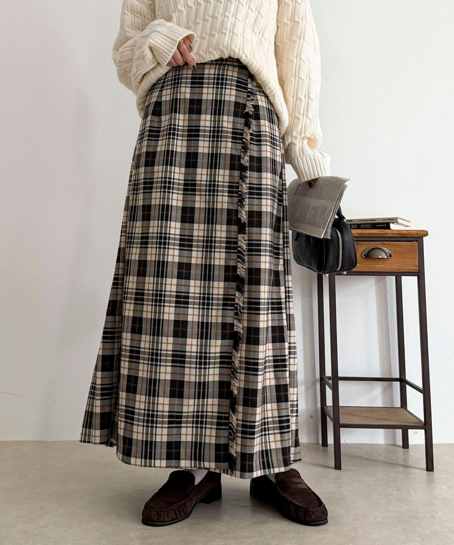 【GEVACO/ゲバコ】チェックサイドベルトスカート