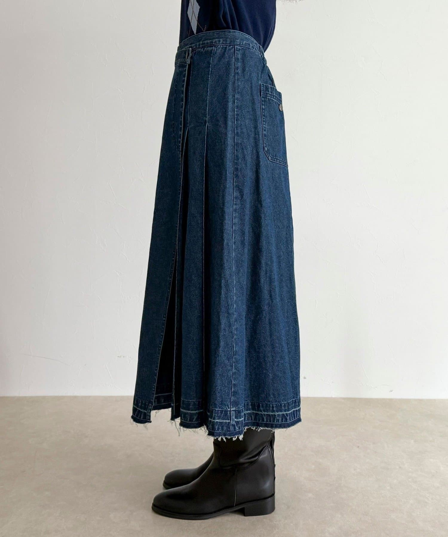 大人のカジュアルスタイルを格上げするデニムプリーツスカート