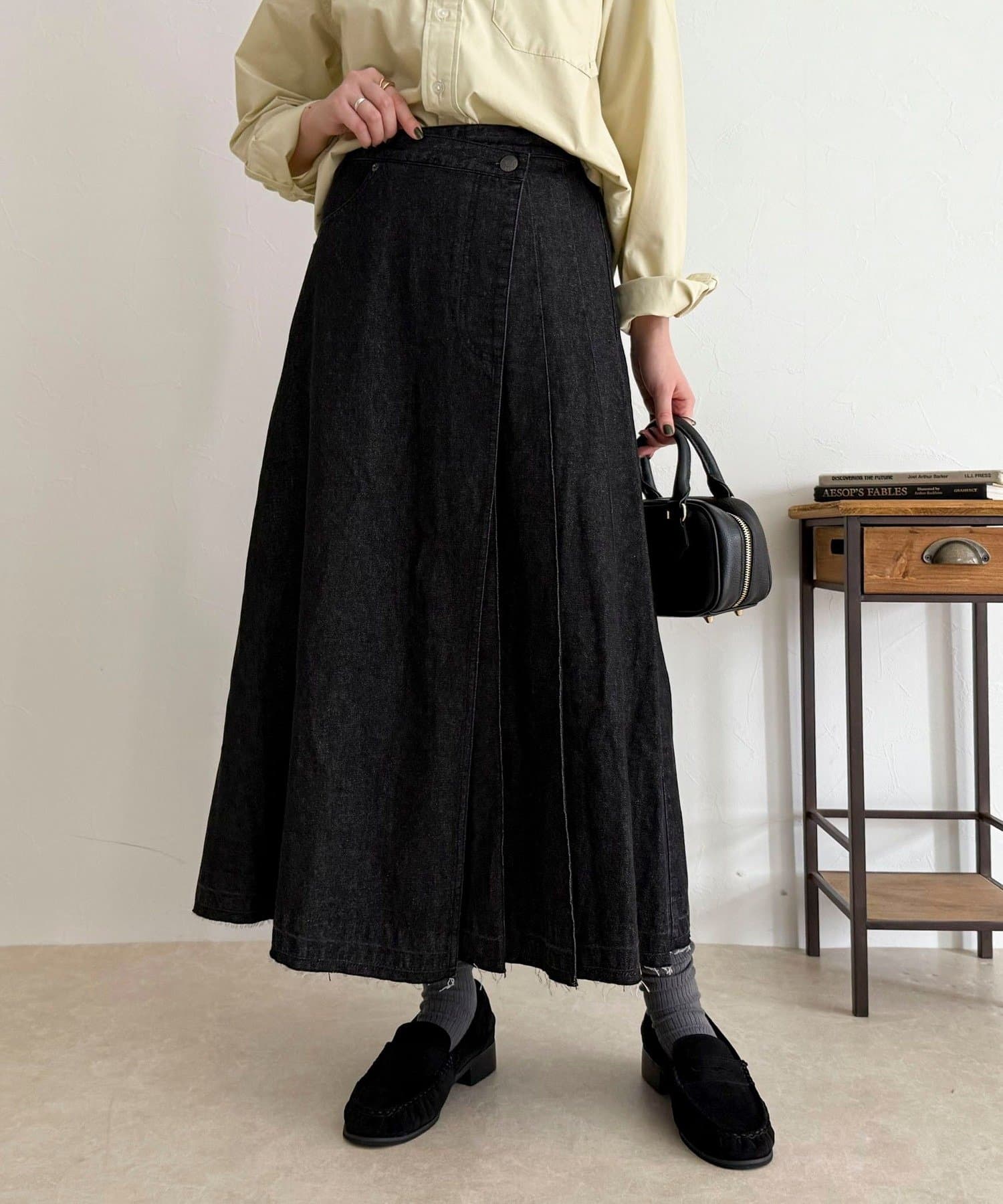 ・カジュアルなデニム素材にアクセントになるプリーツを施したスカート