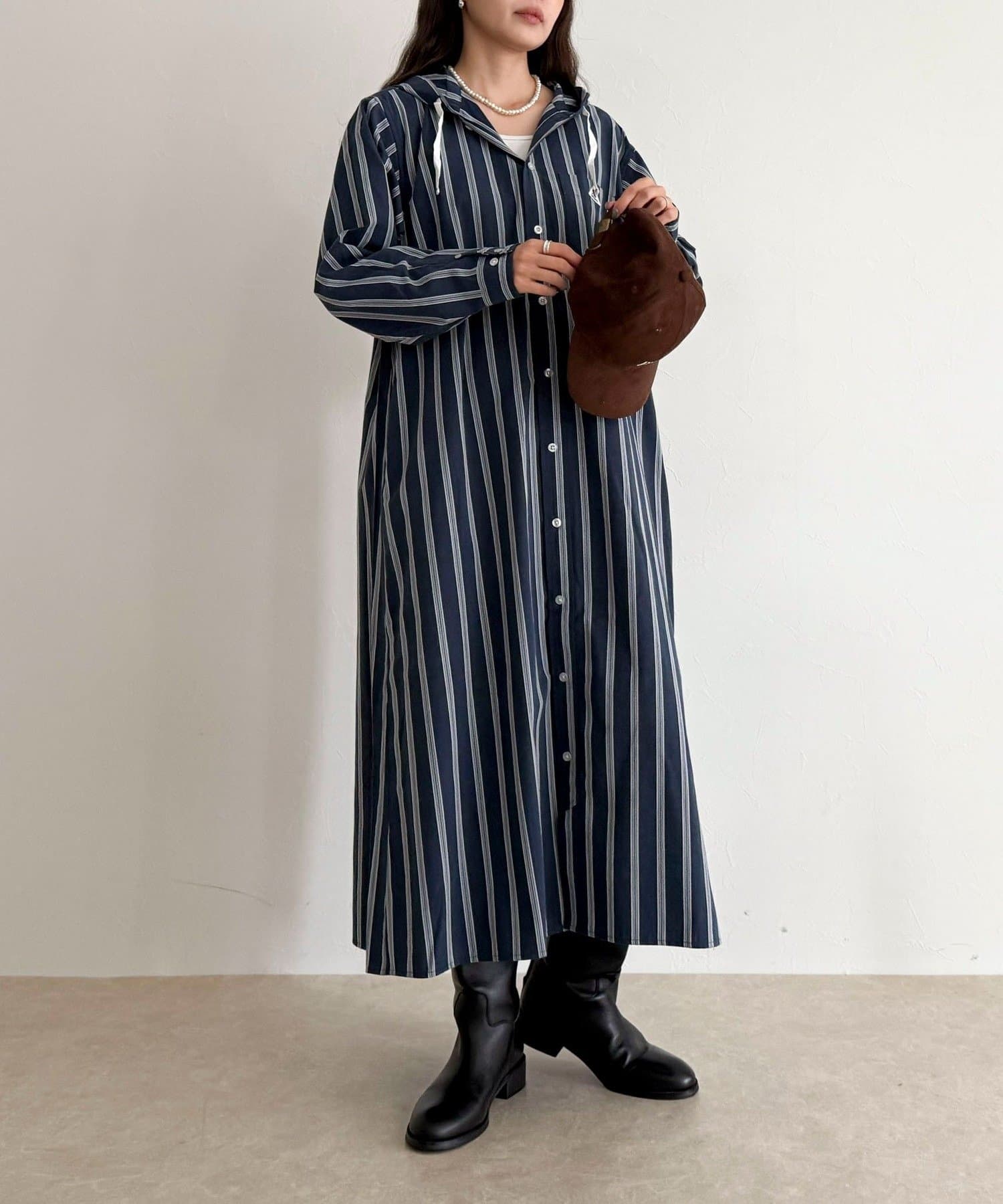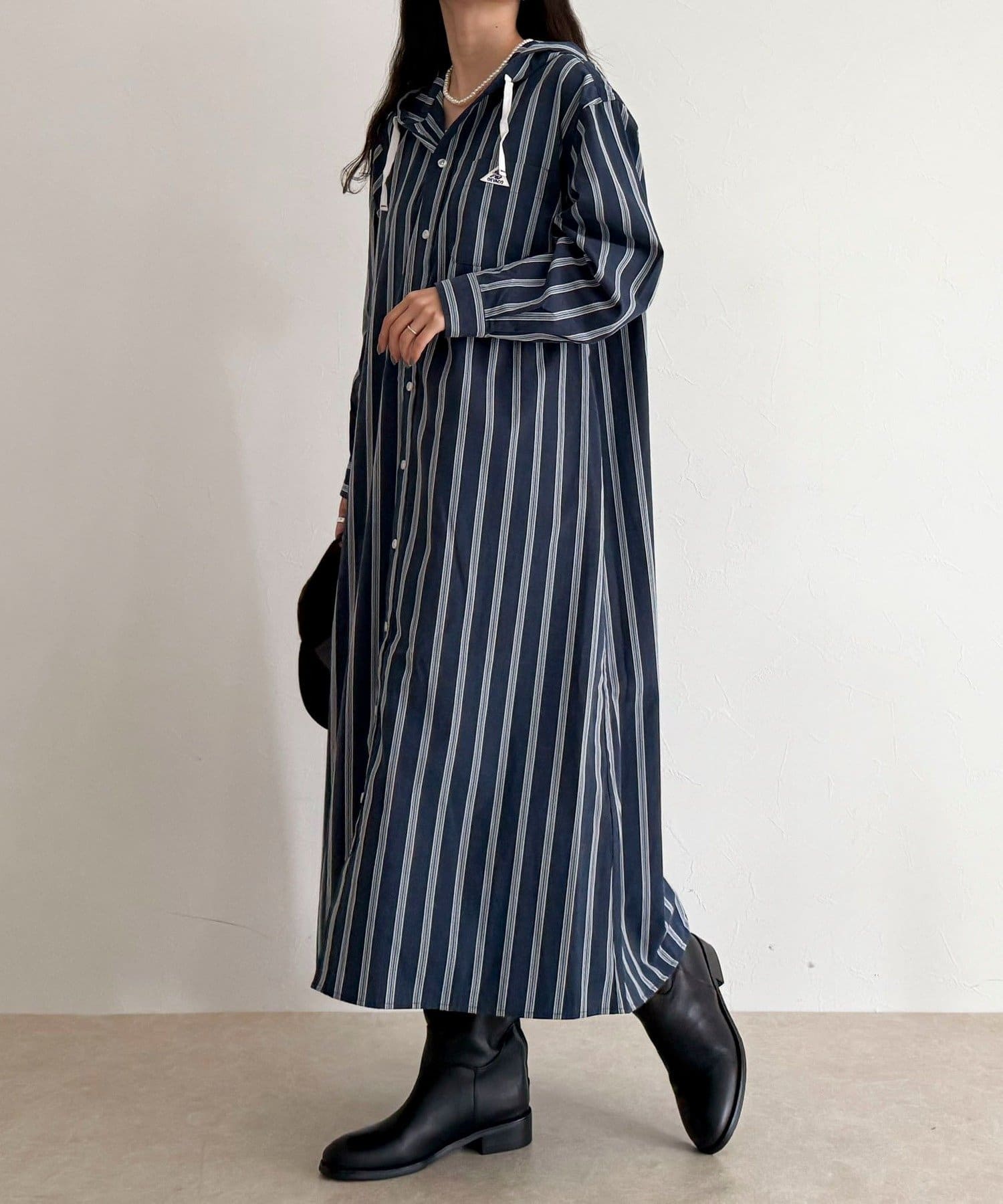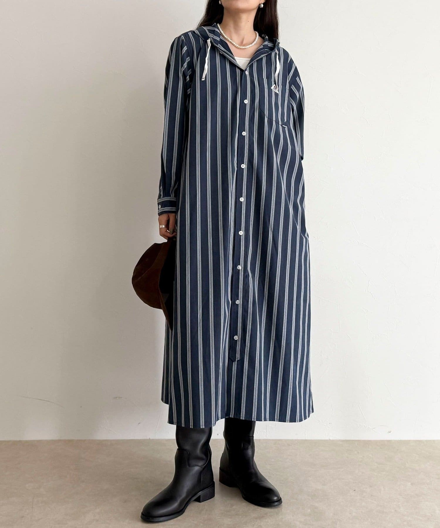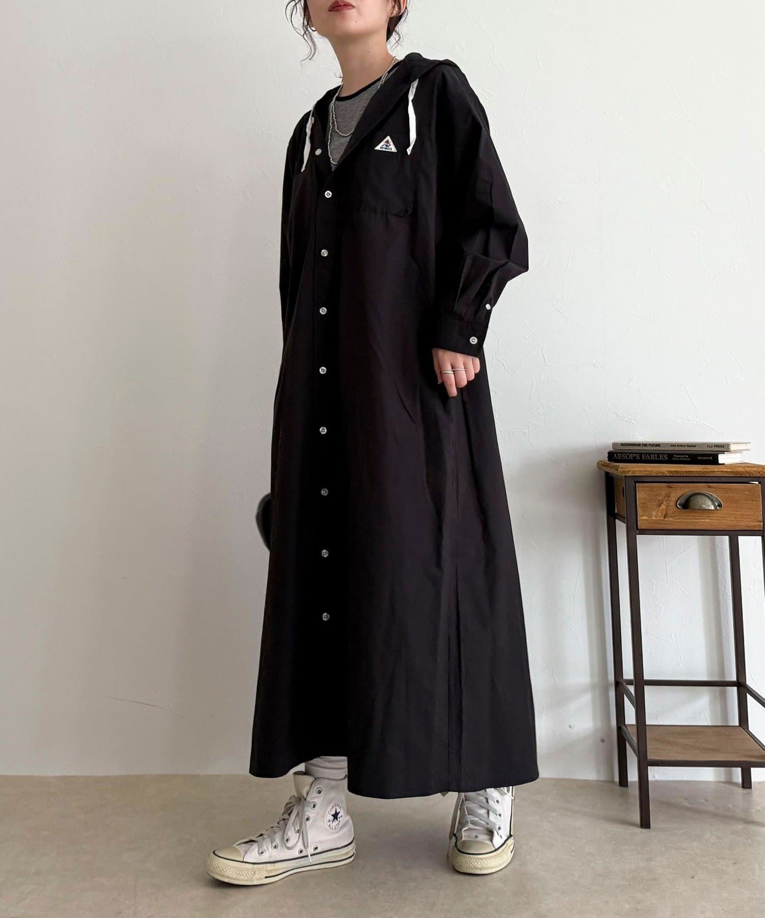 ・カジュアルなフードデザインを取り入れたシャツワンピース