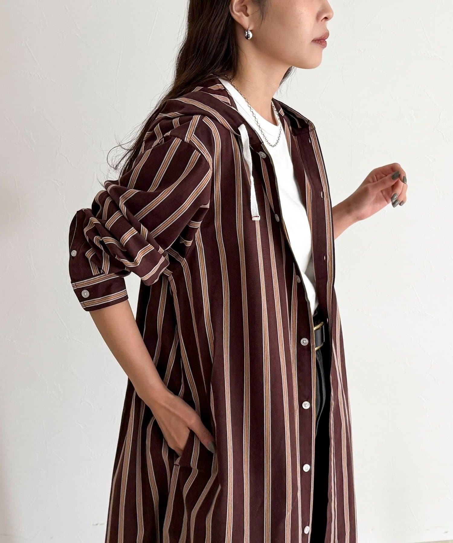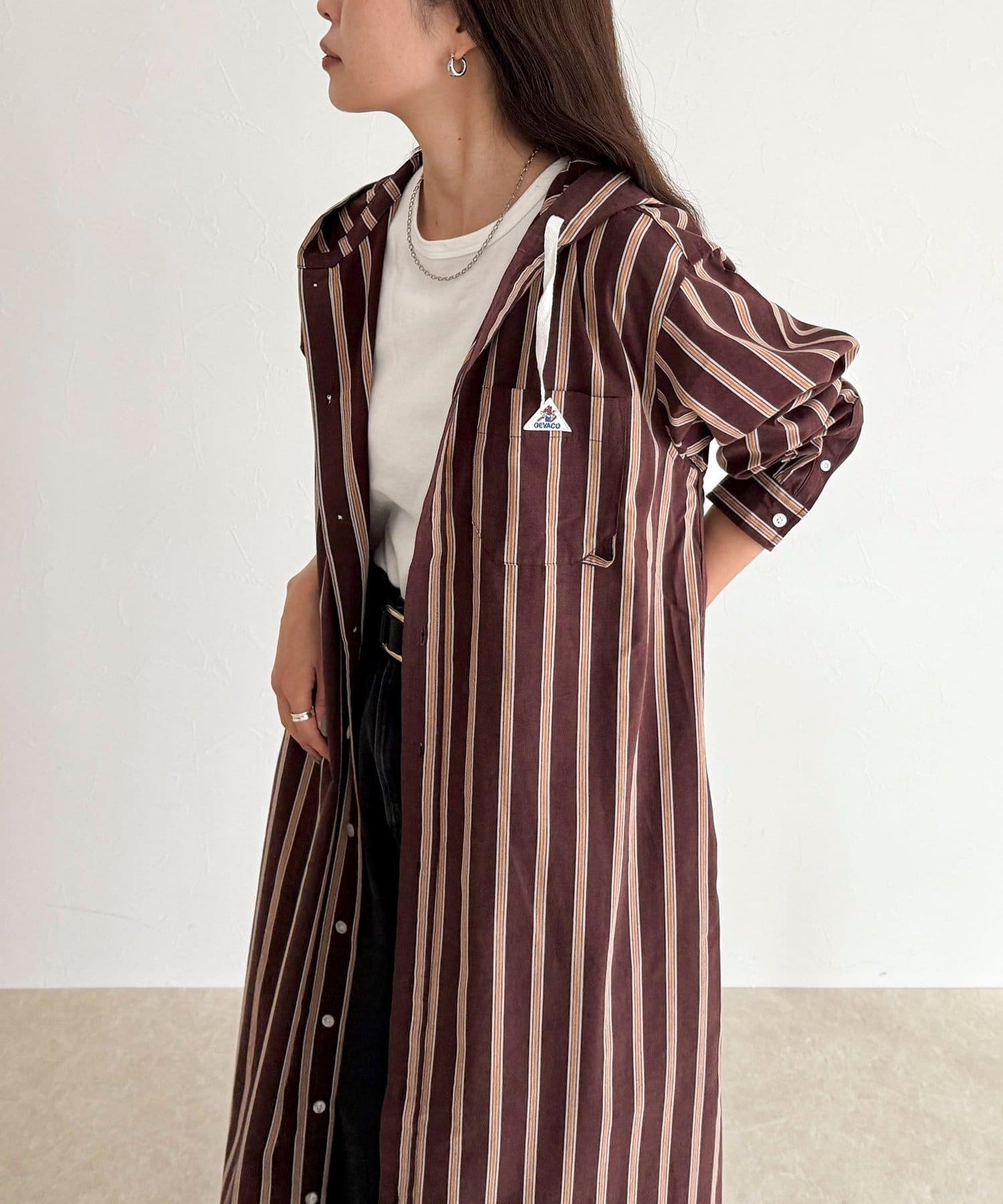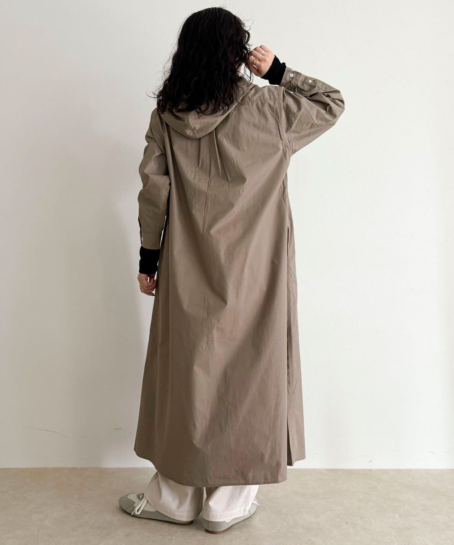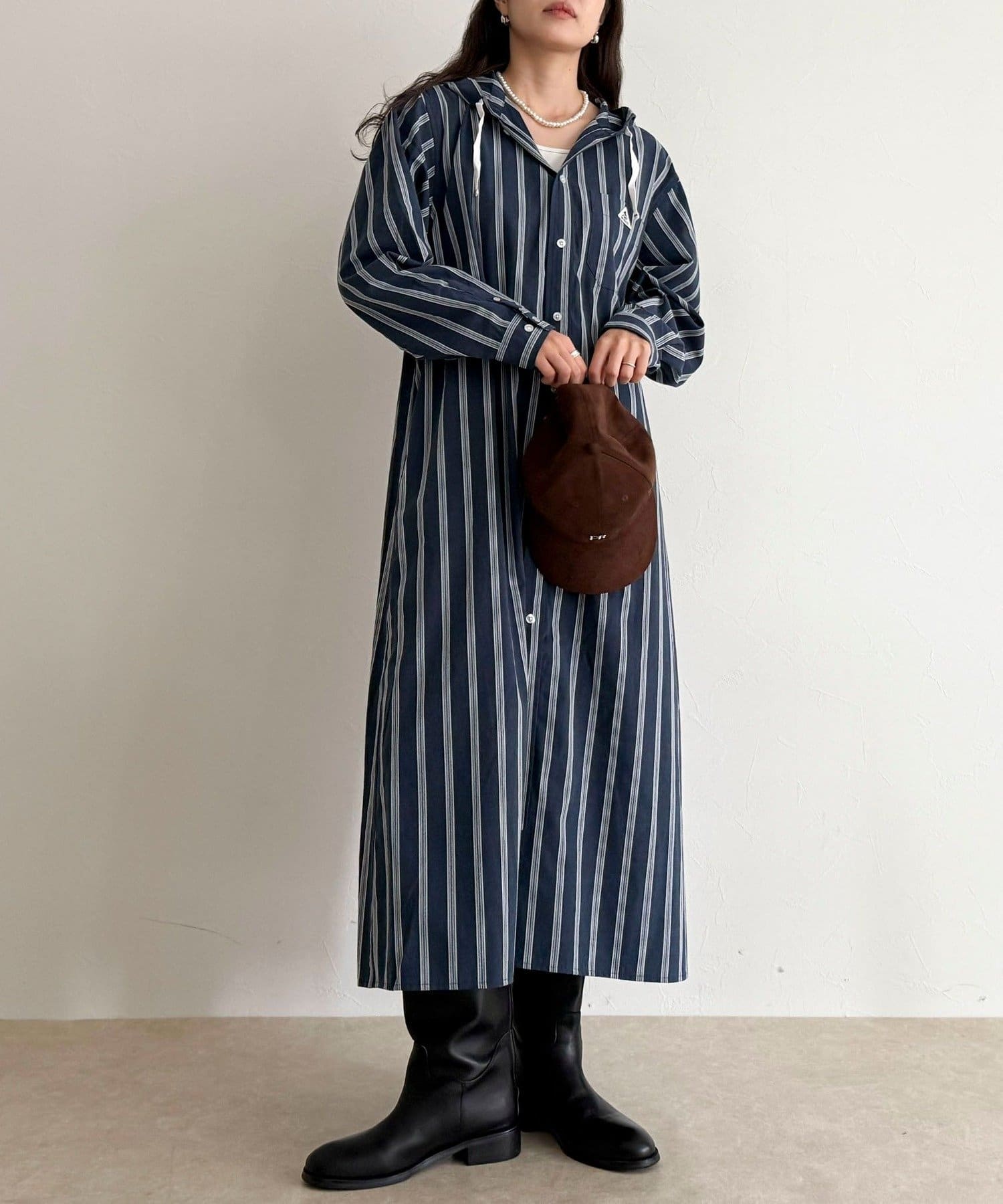 ・カジュアルなフードデザインを取り入れたシャツワンピース