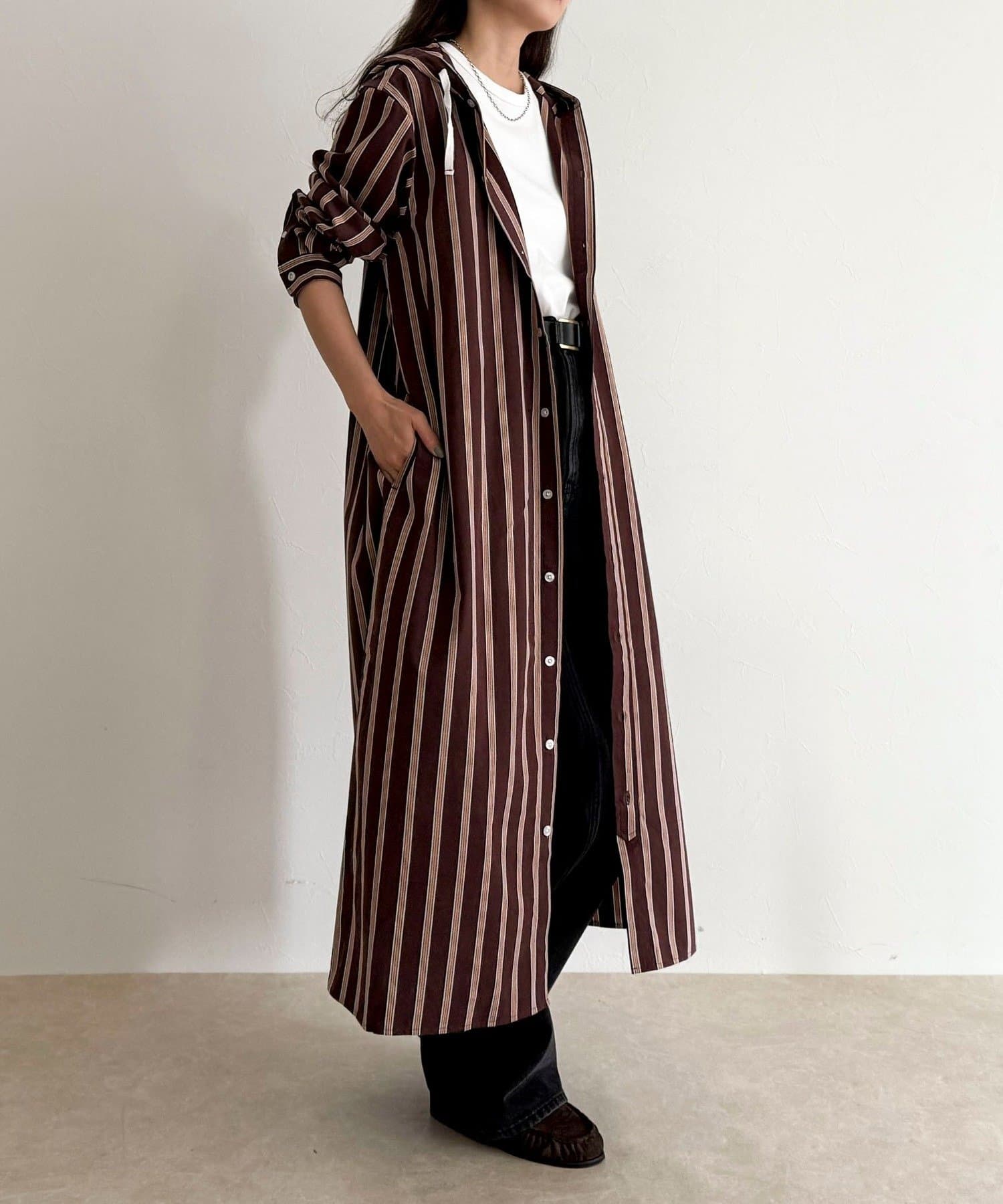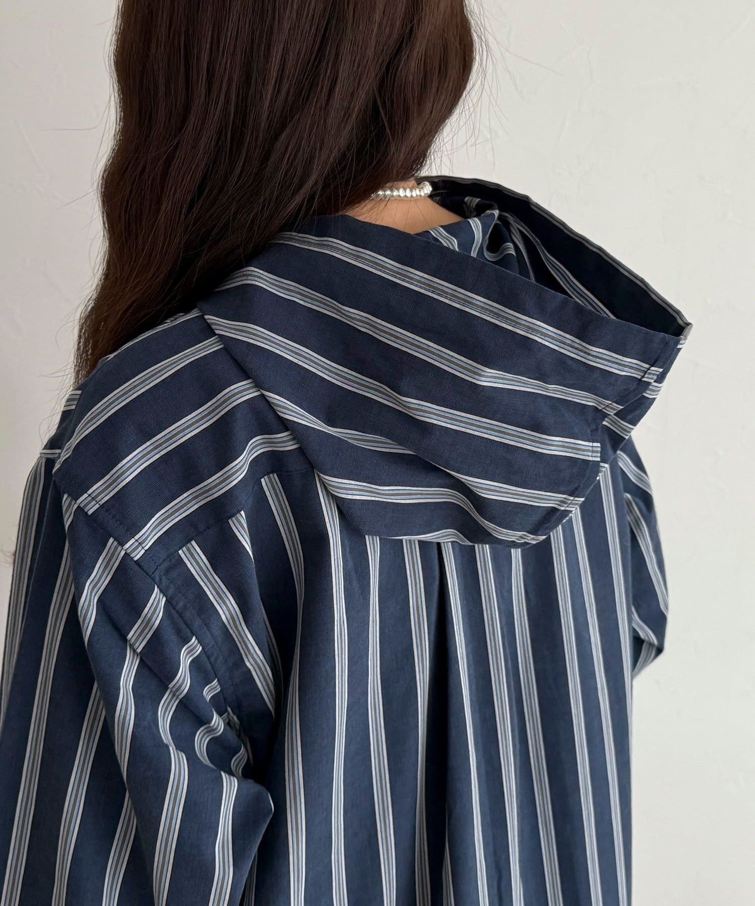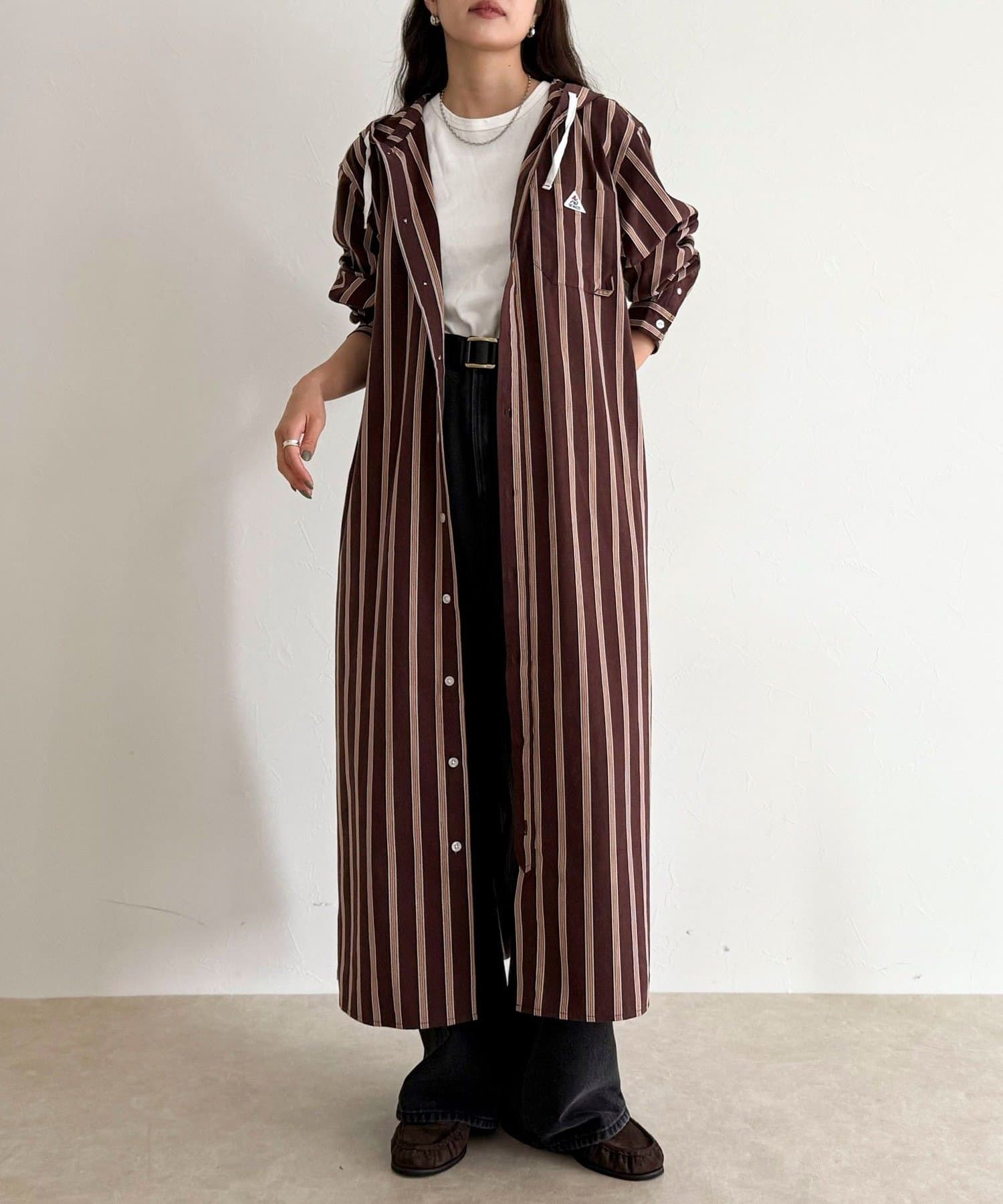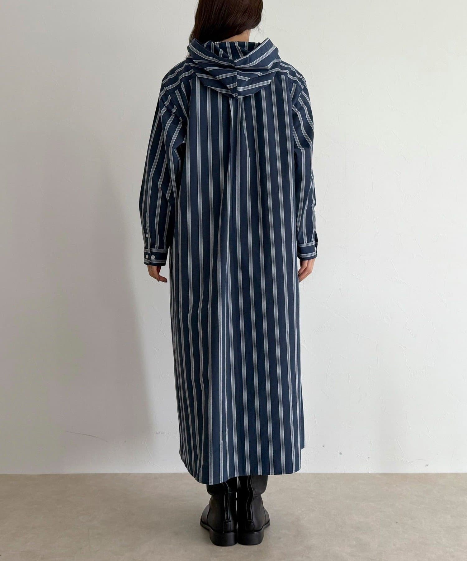 ・カジュアルなフードデザインを取り入れたシャツワンピース