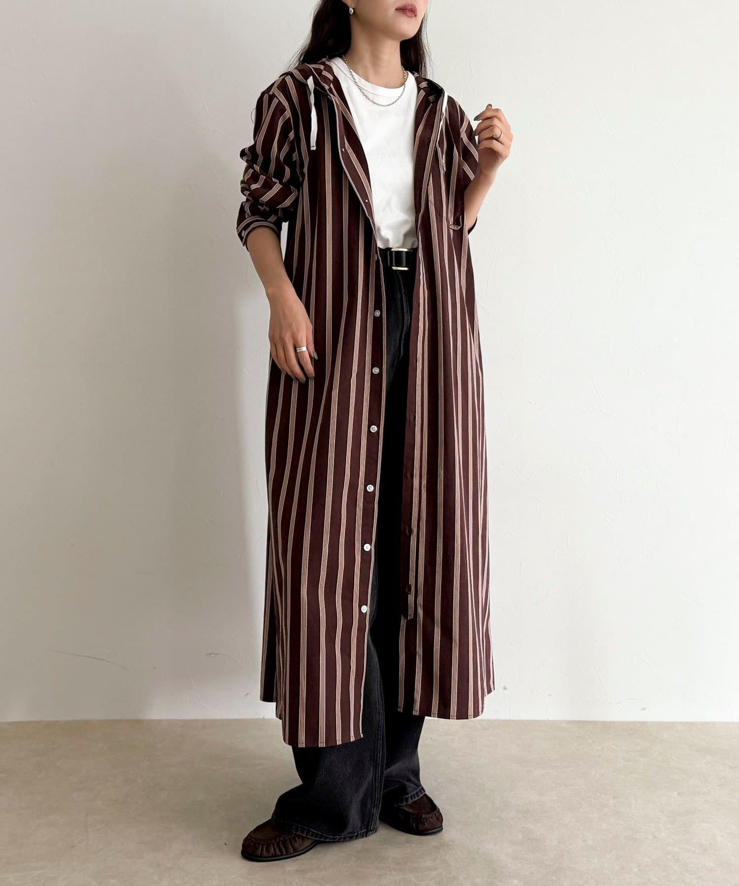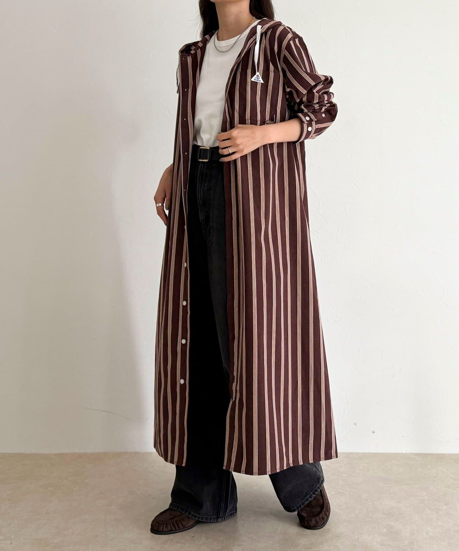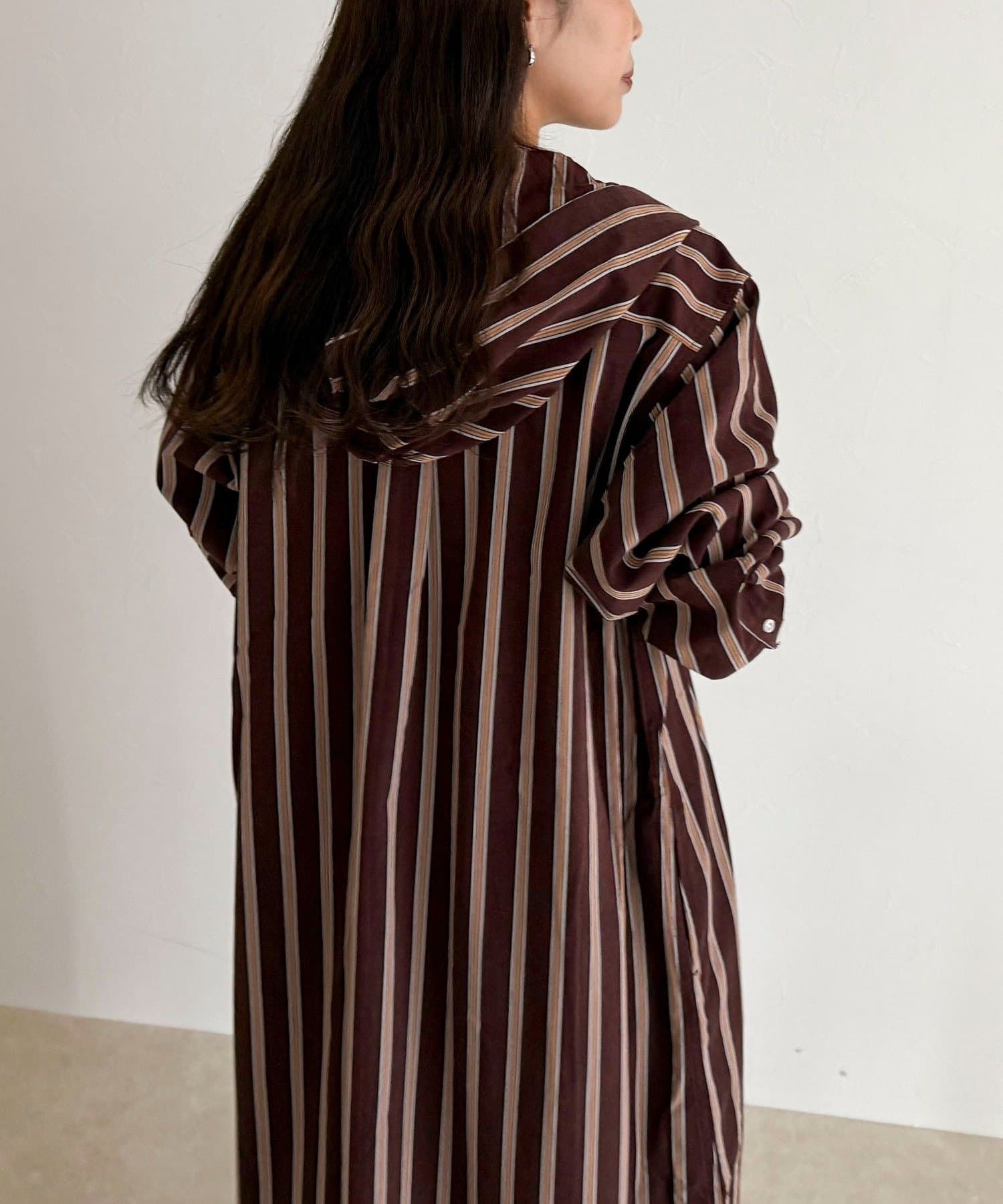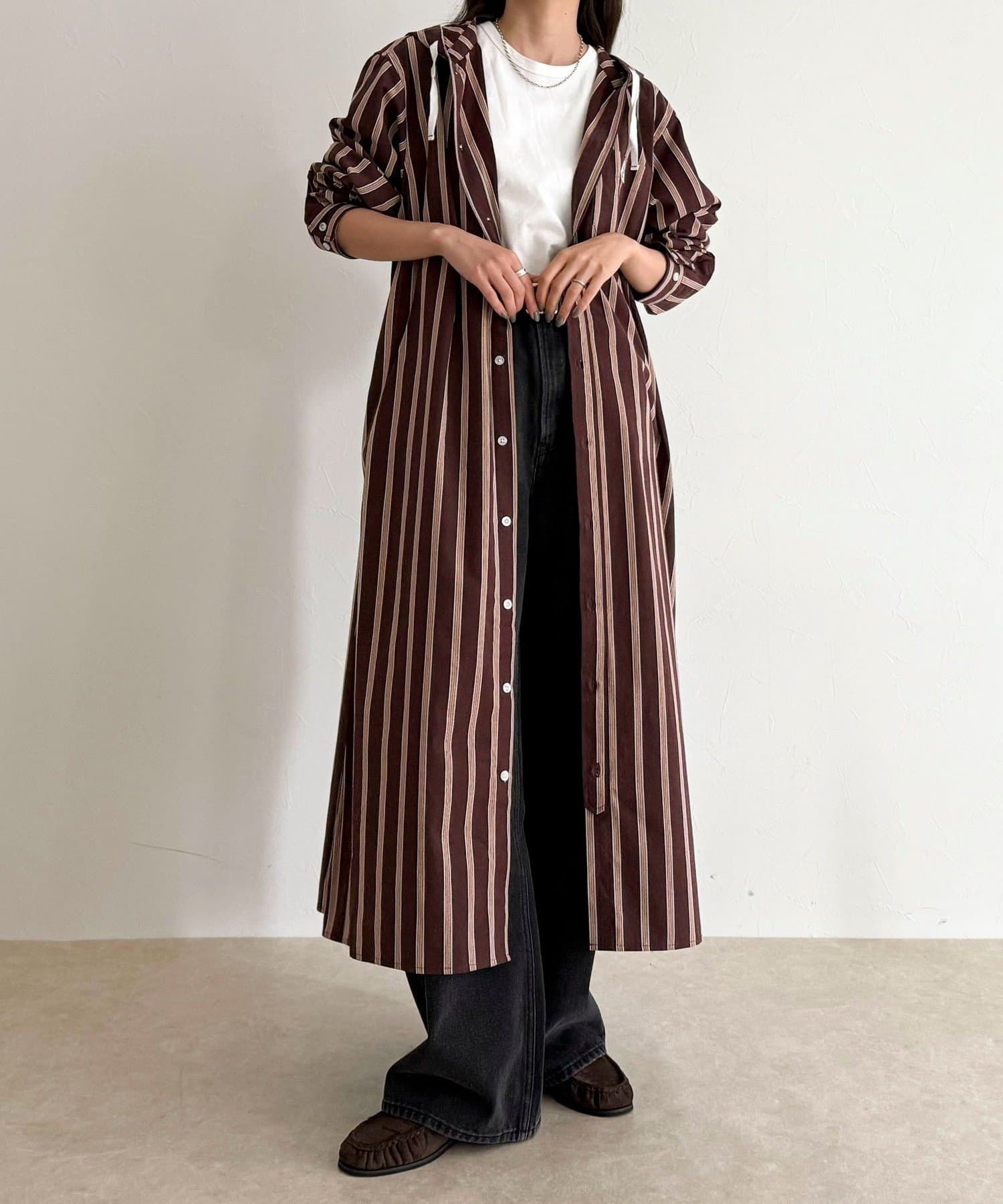 ・カジュアルなフードデザインを取り入れたシャツワンピース