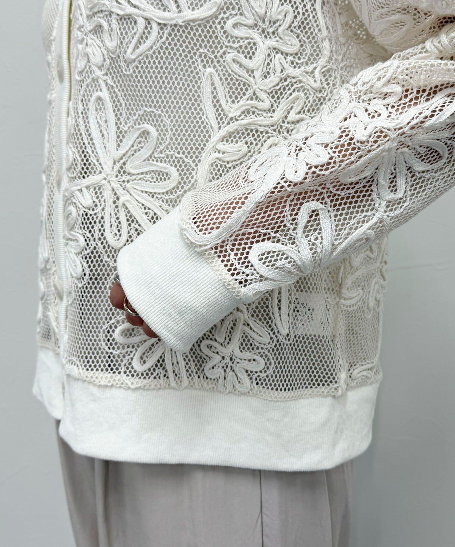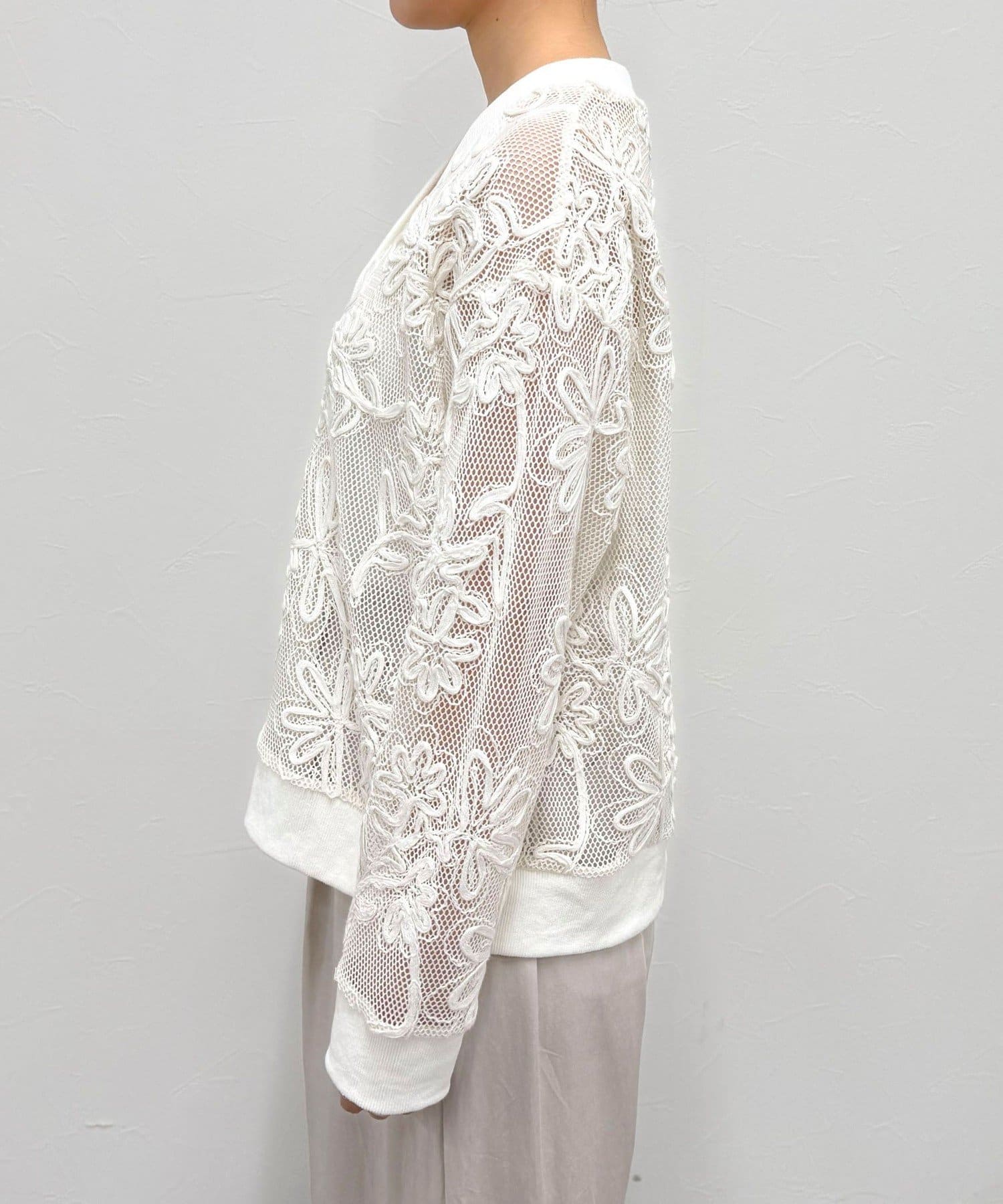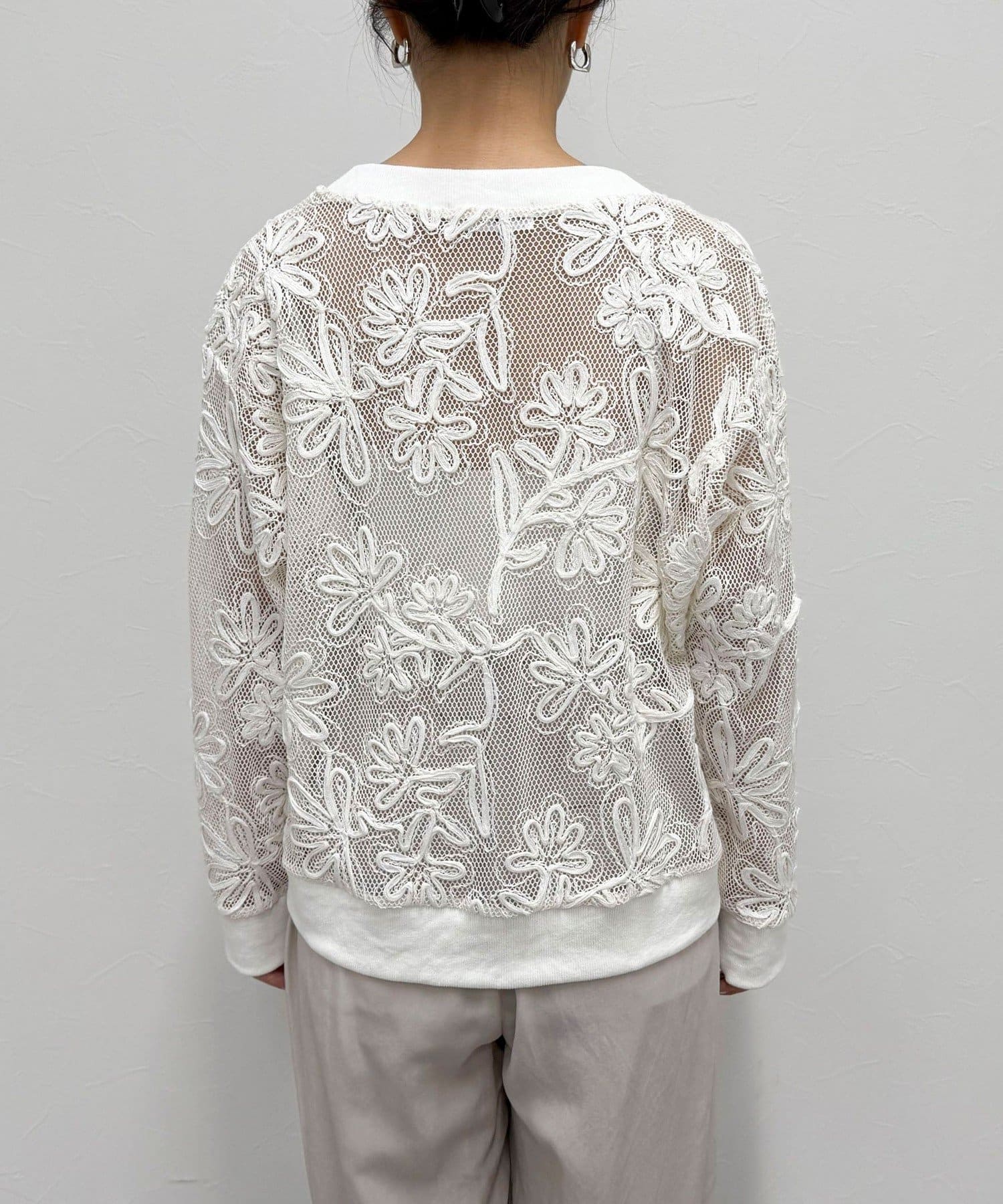 ・透け感のあるメッシュ地に刺繍をプラスした目を惹く1枚