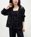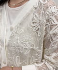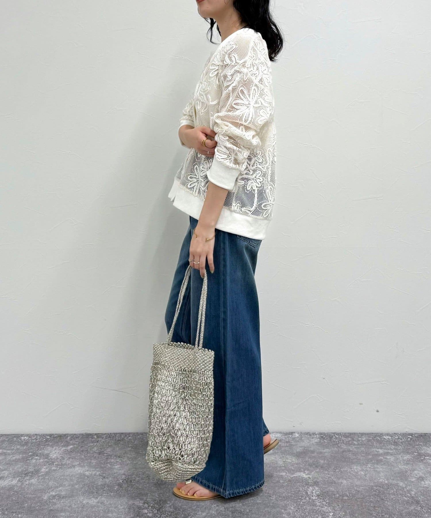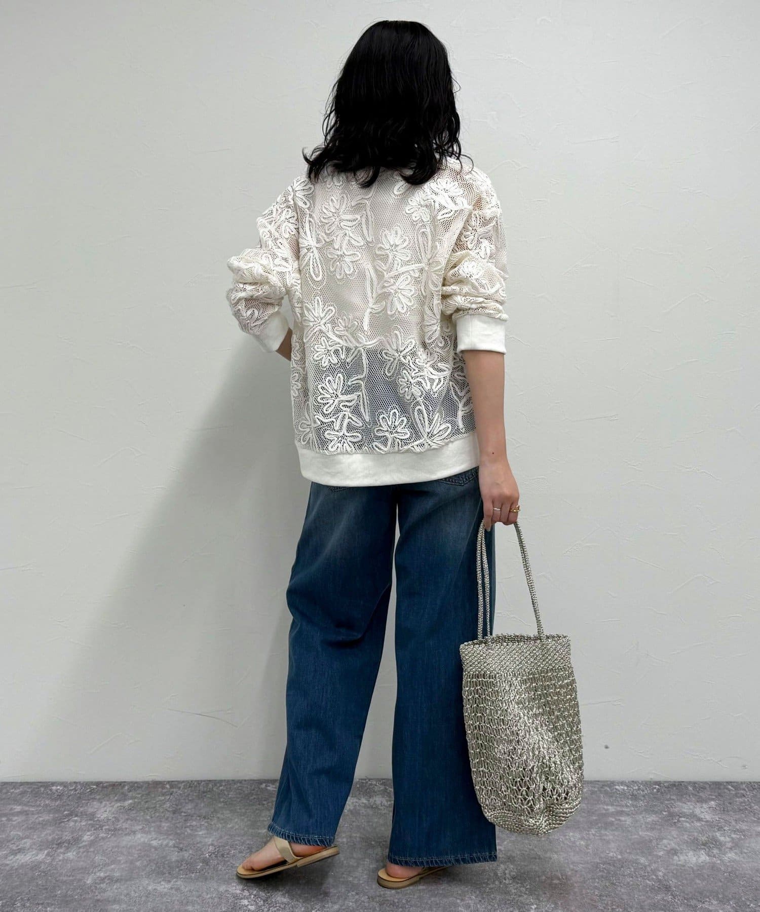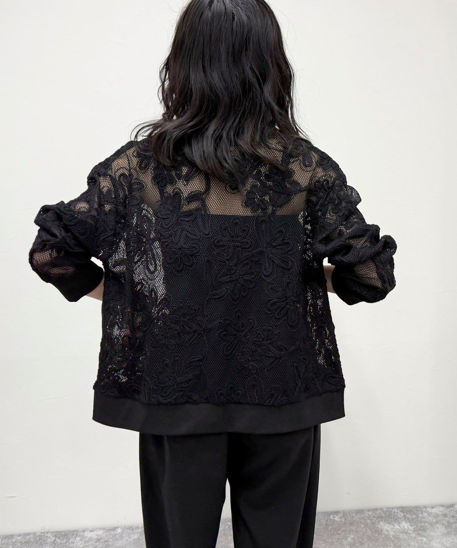 ・透け感のあるメッシュ地に刺繍をプラスした目を惹く1枚