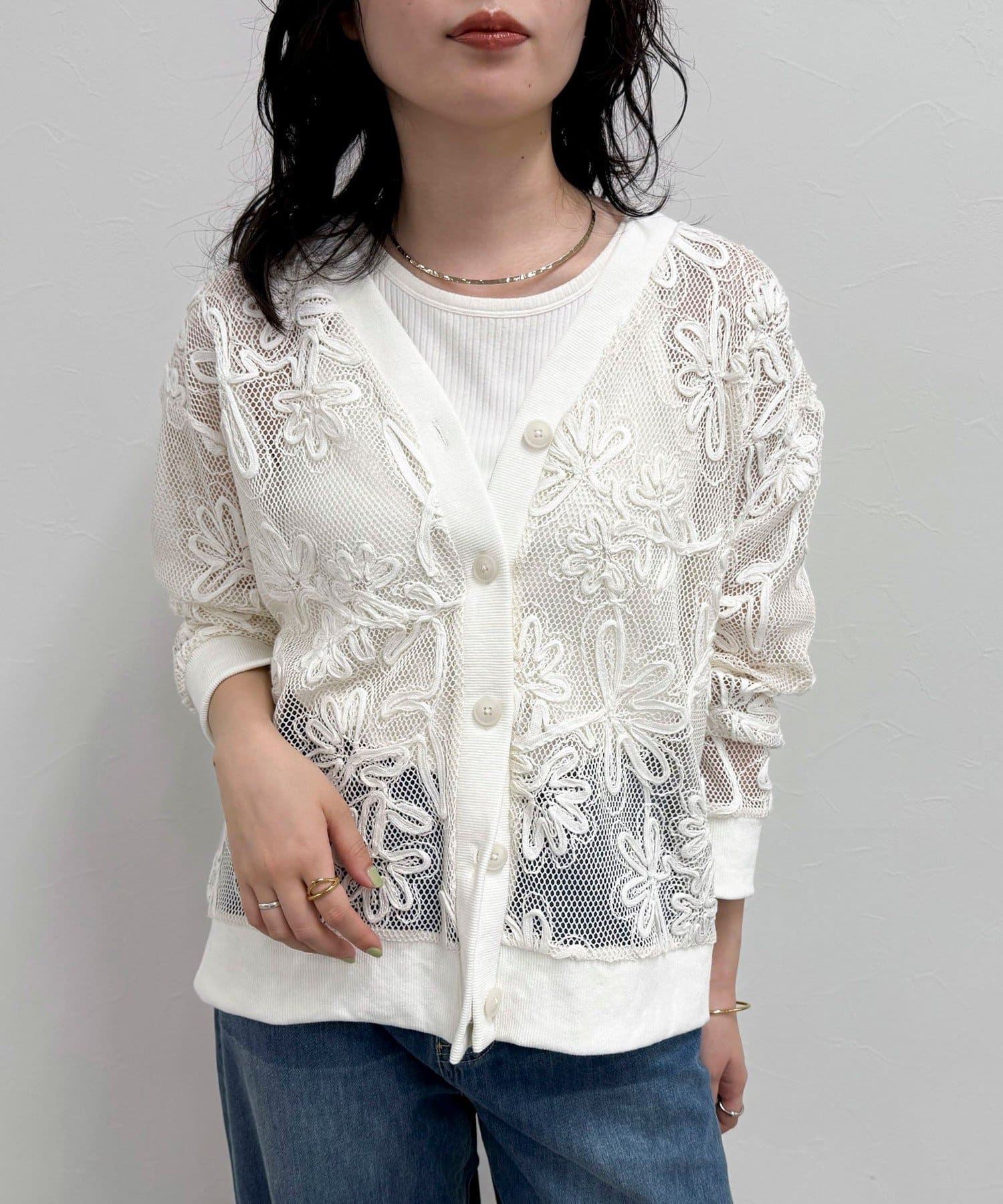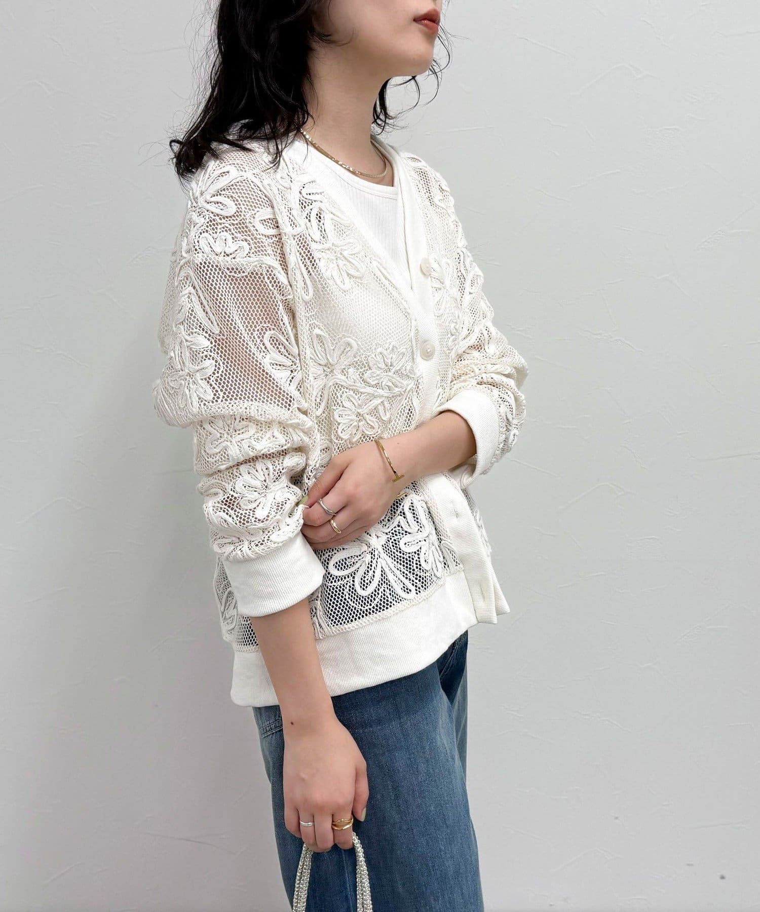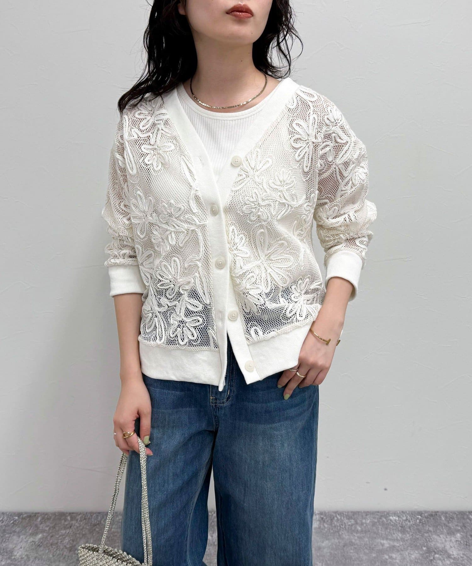 ・フラワー刺繍がこなれた印象に導いてくれるカーディガンです
