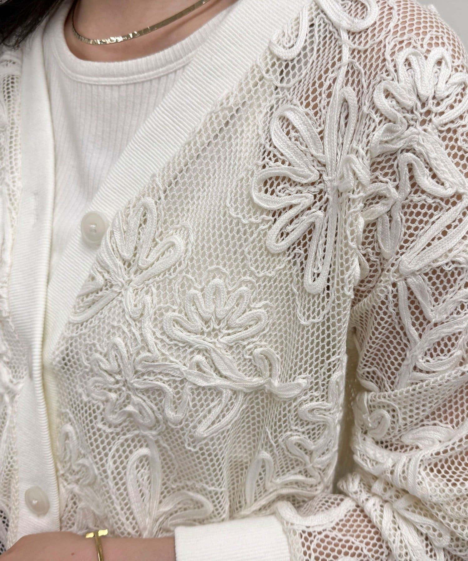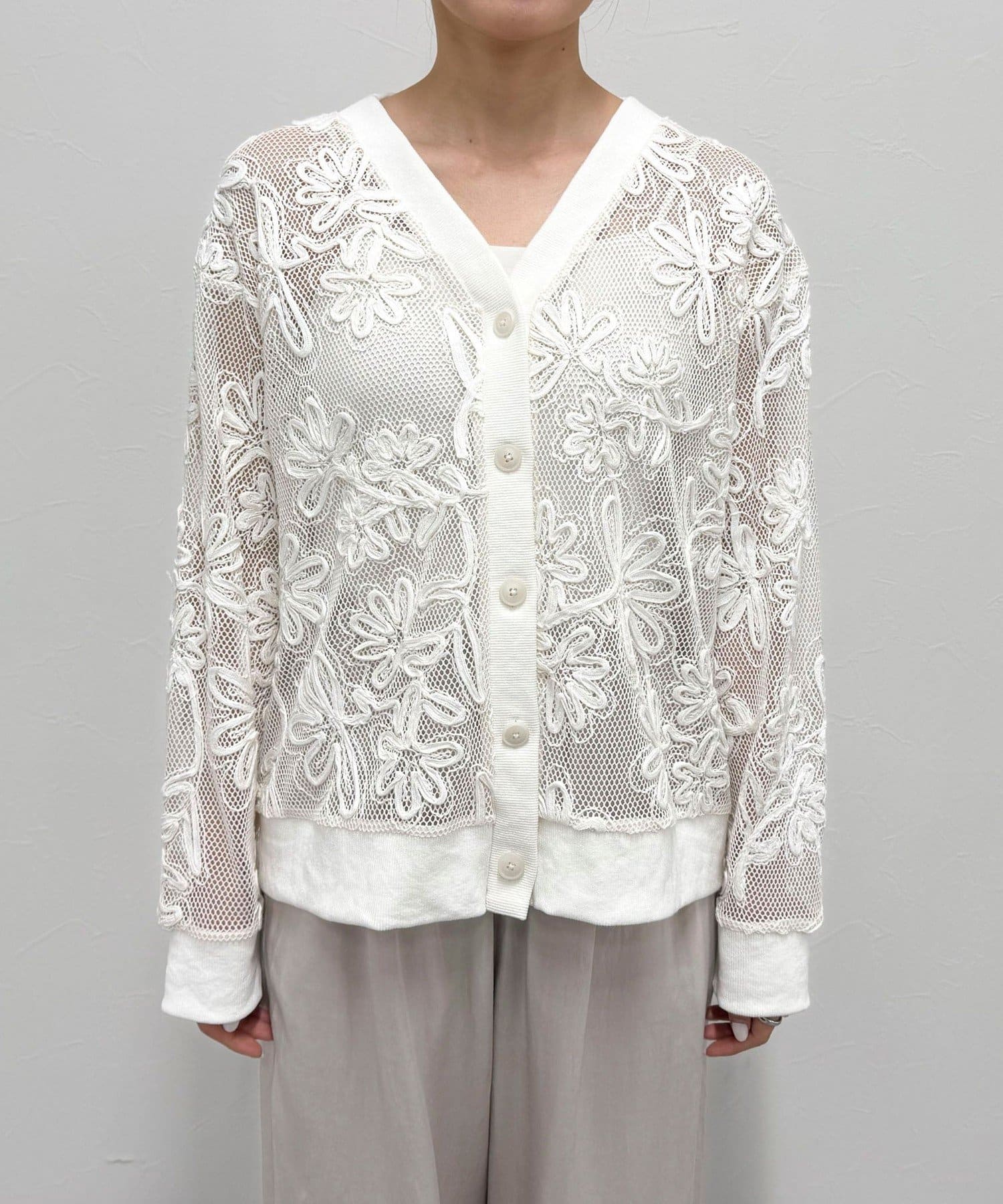 TOP > FREDY & GLOSTER > レディース > トップス > カーディガン/ボレロ > フラワーコード刺繍Vネックカーディガン