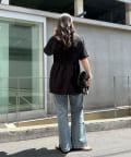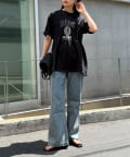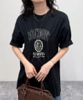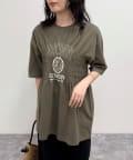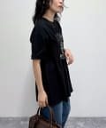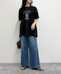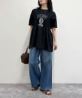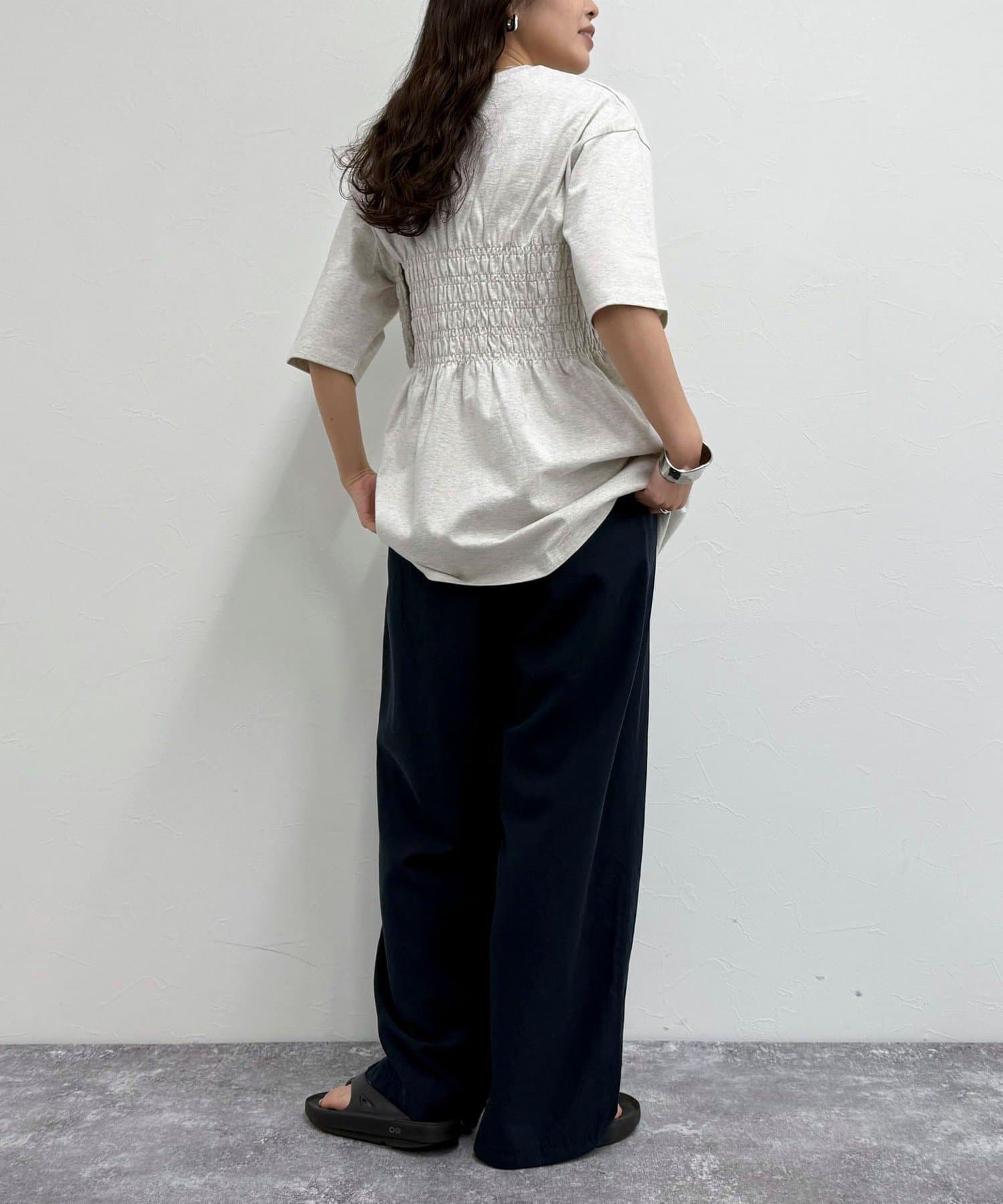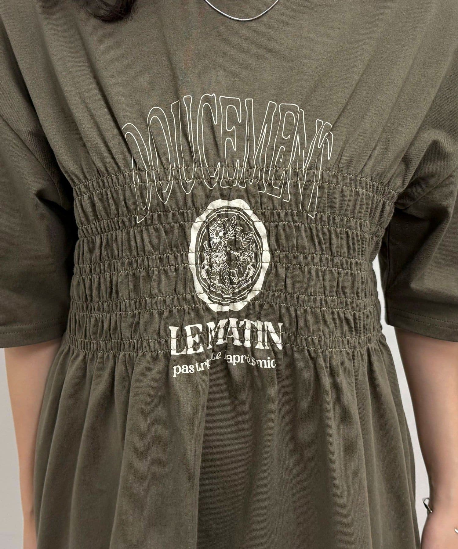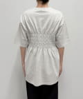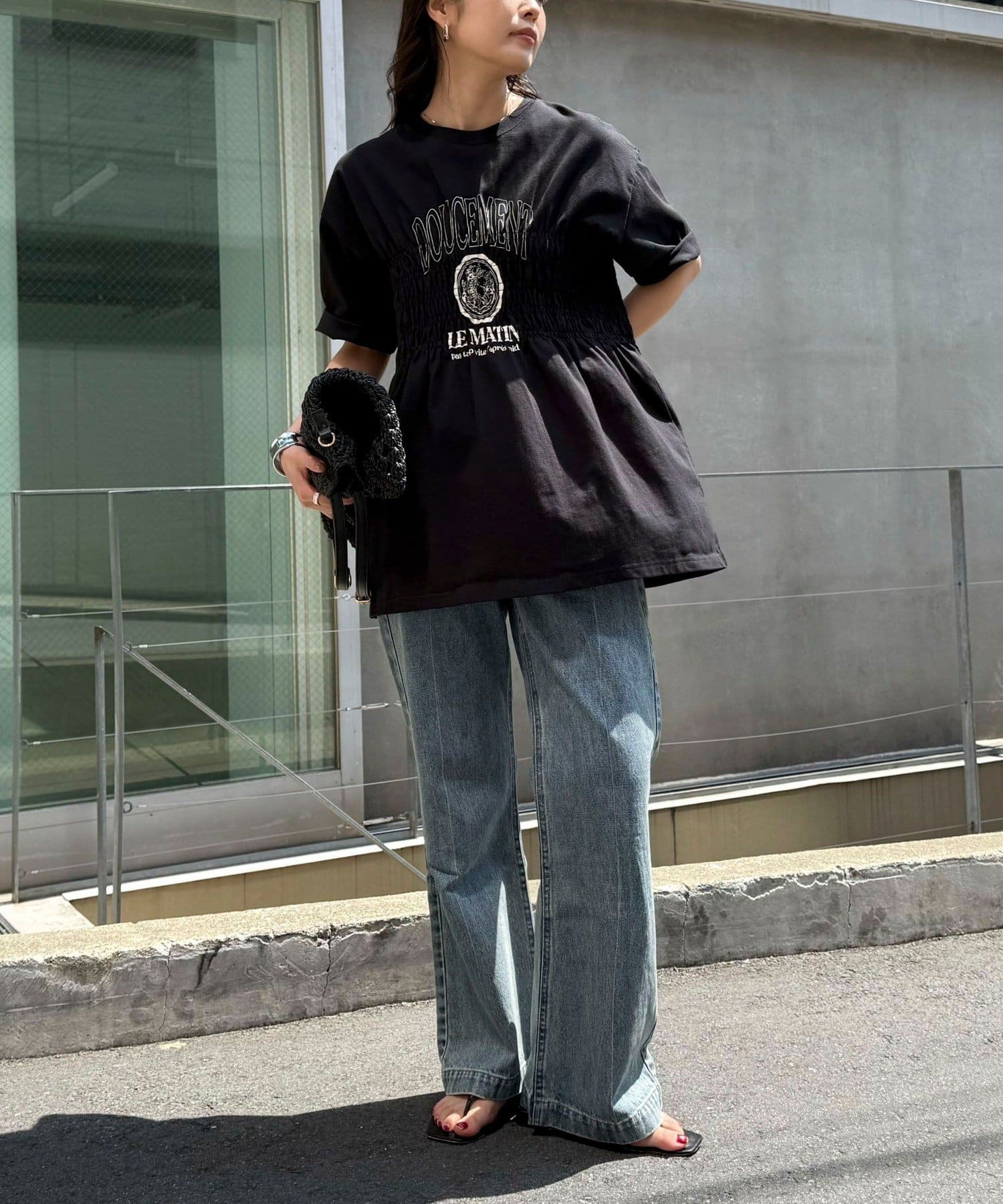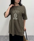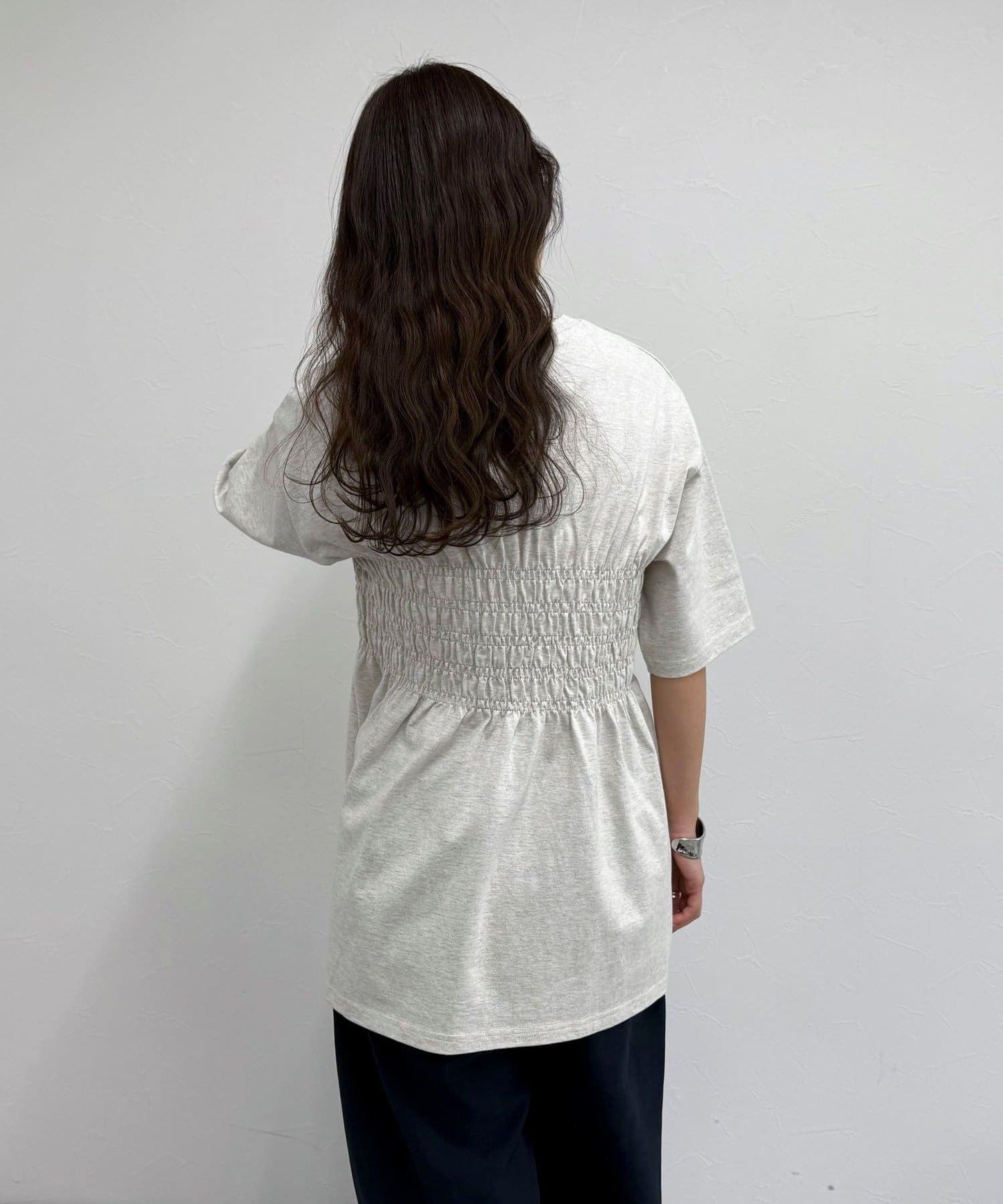 ・カジュアル感の強いロゴTにシャーリングをプラスし女性らしいシルエットに!