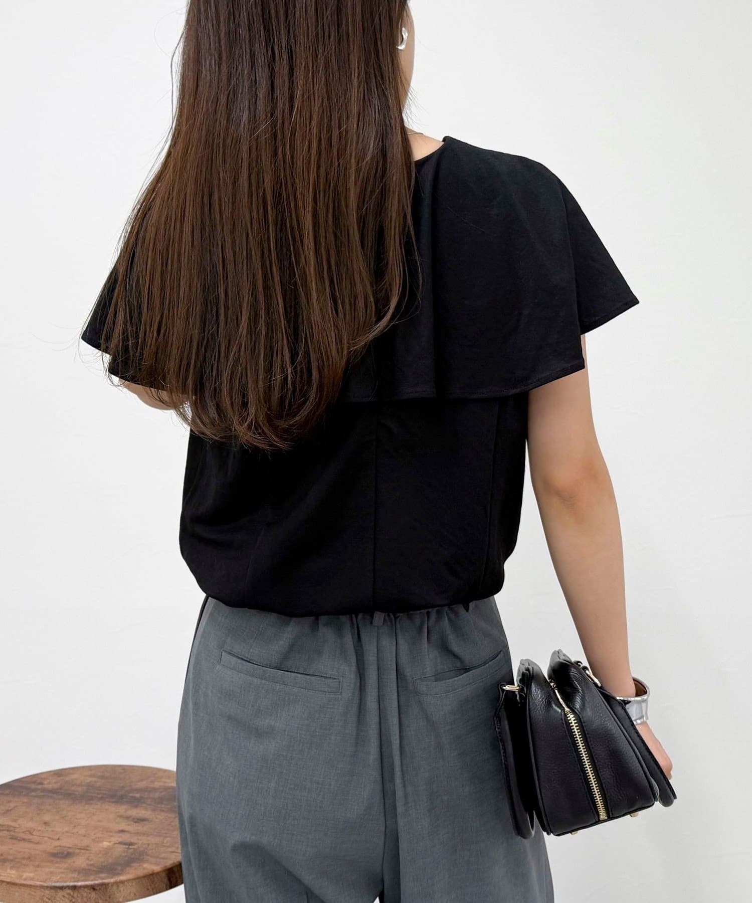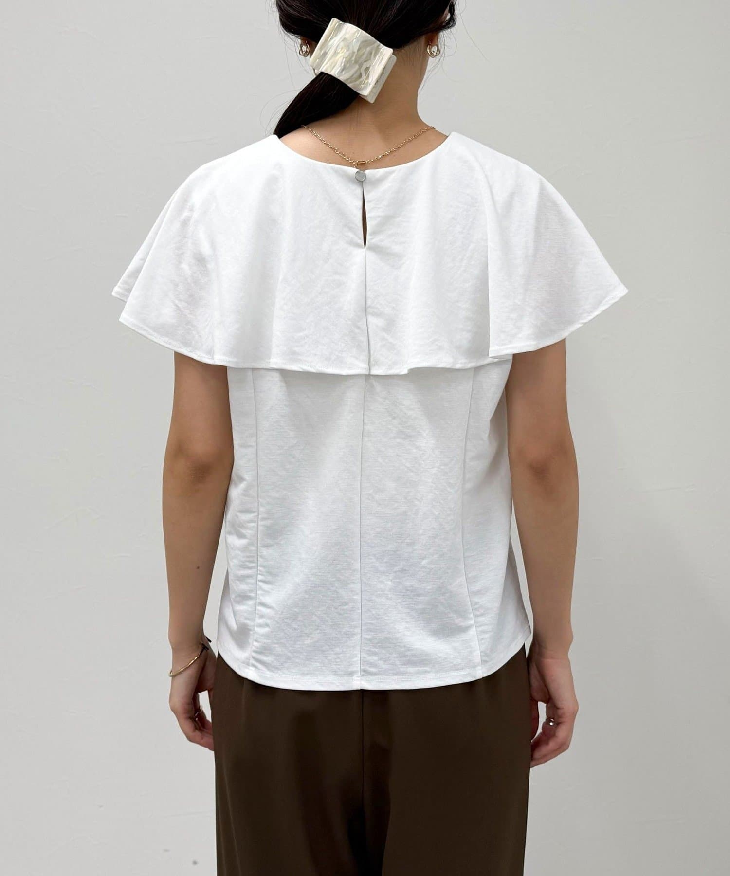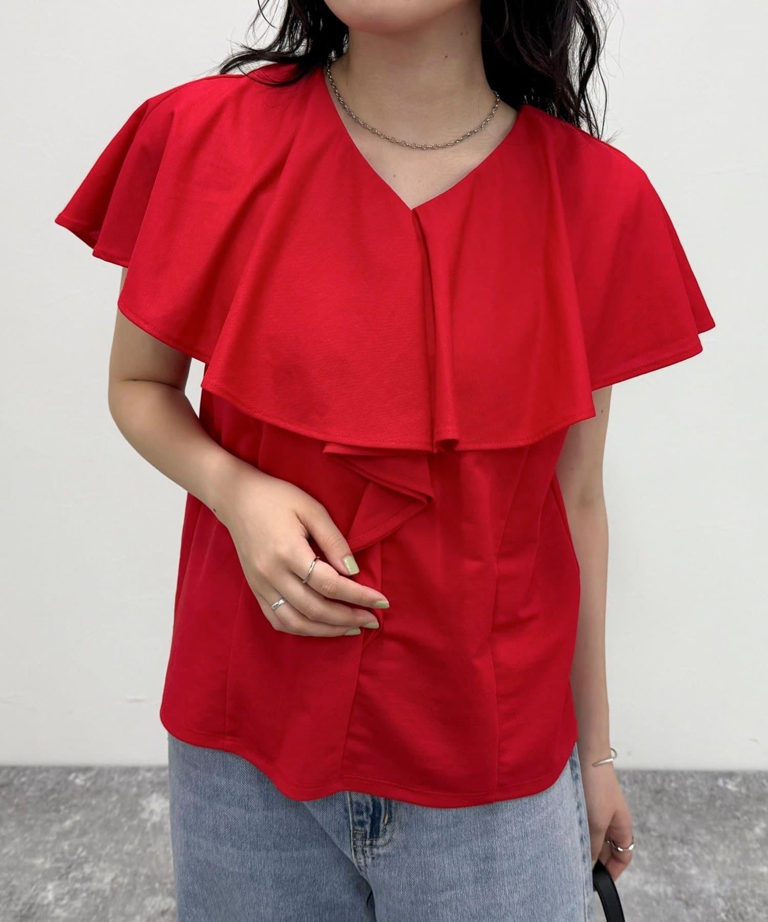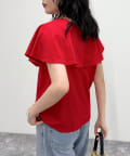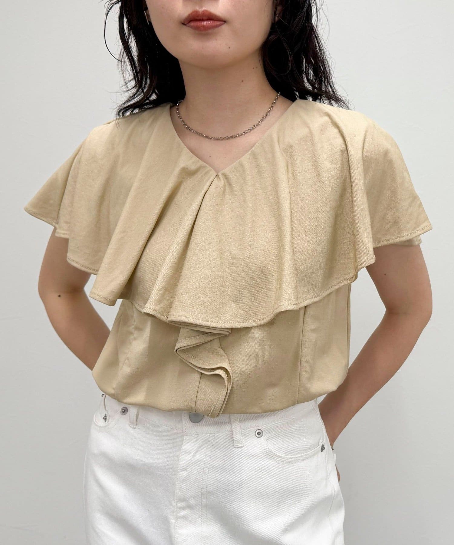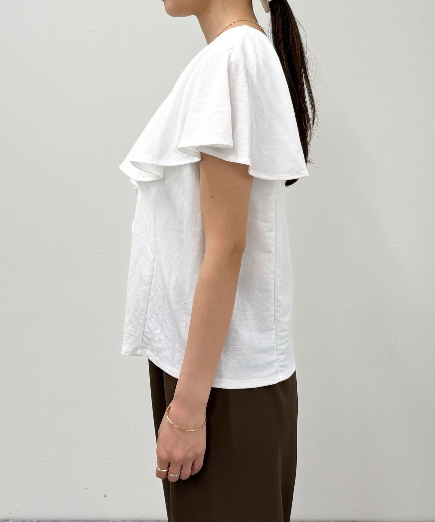 ・ふんわりとしたラッフルが顔周りを華やかに彩るカットソーブラウスです