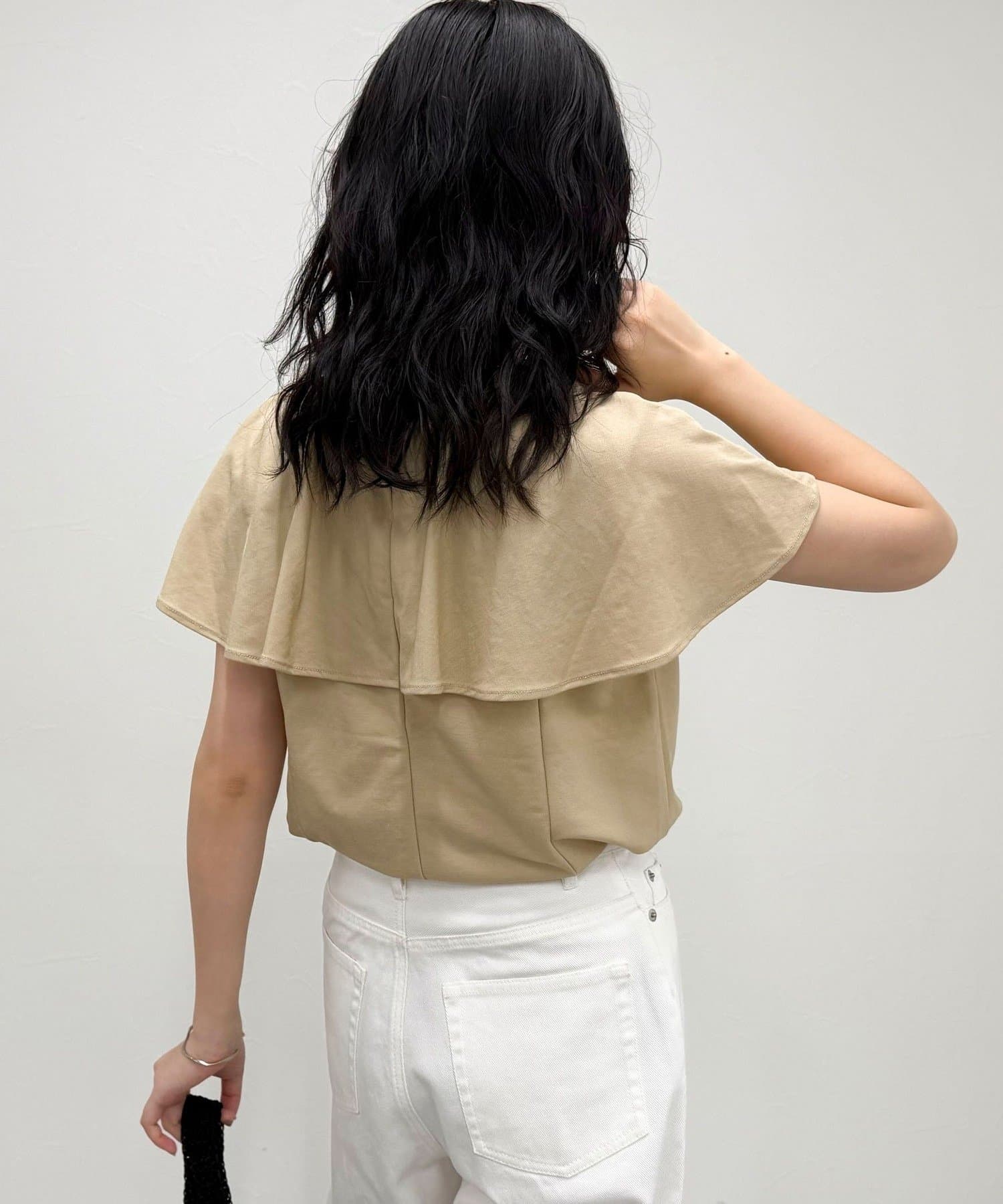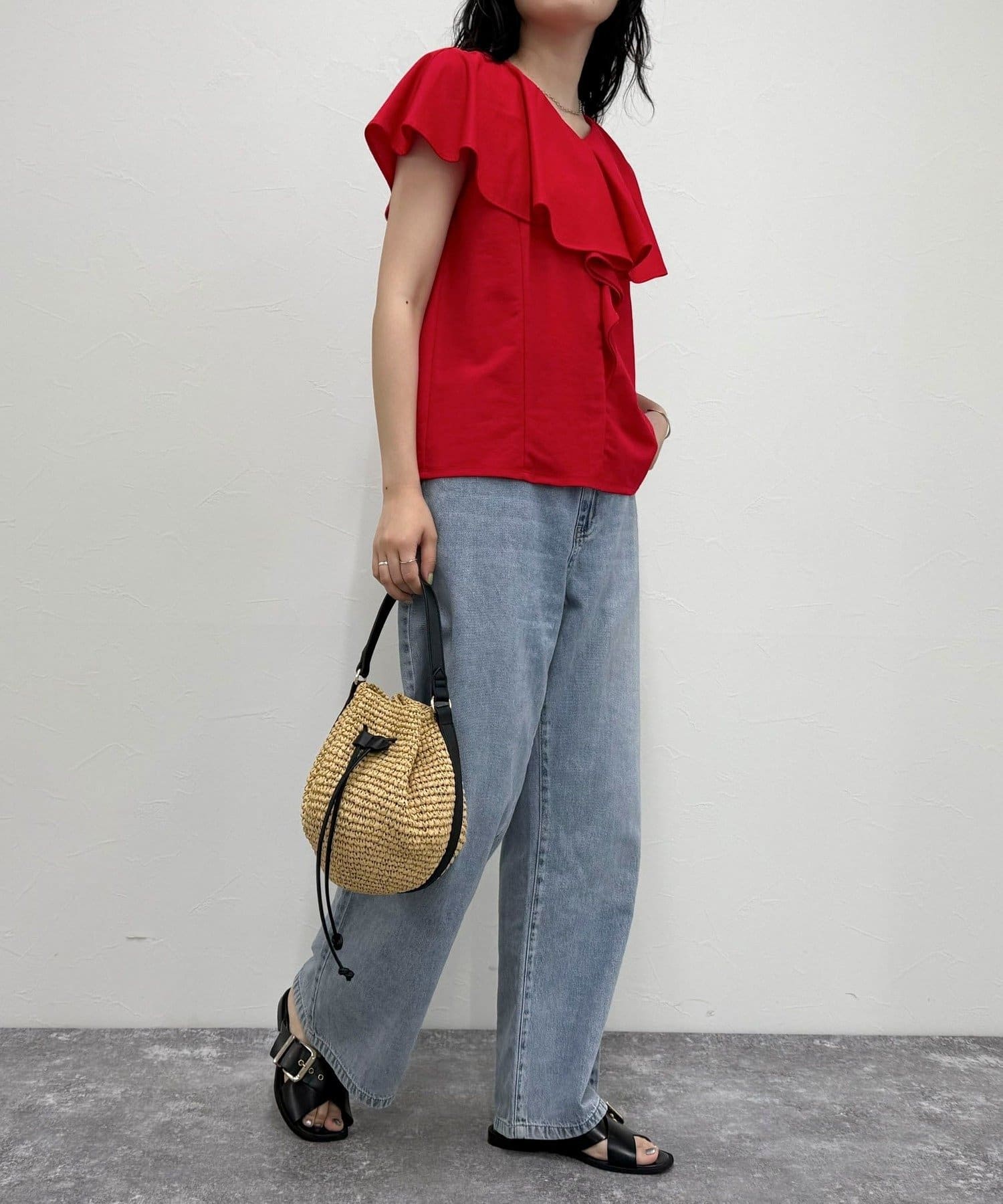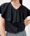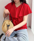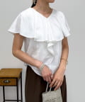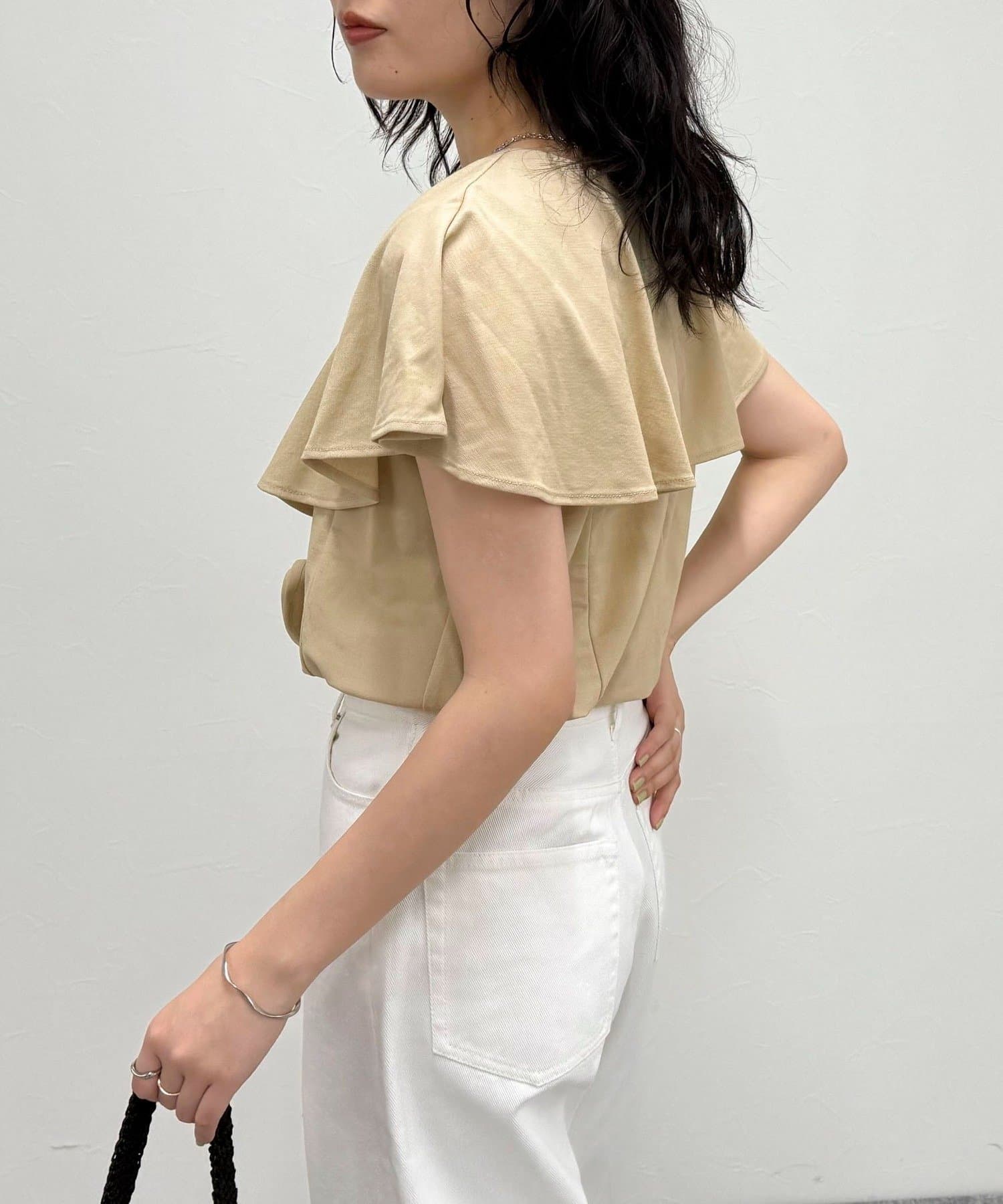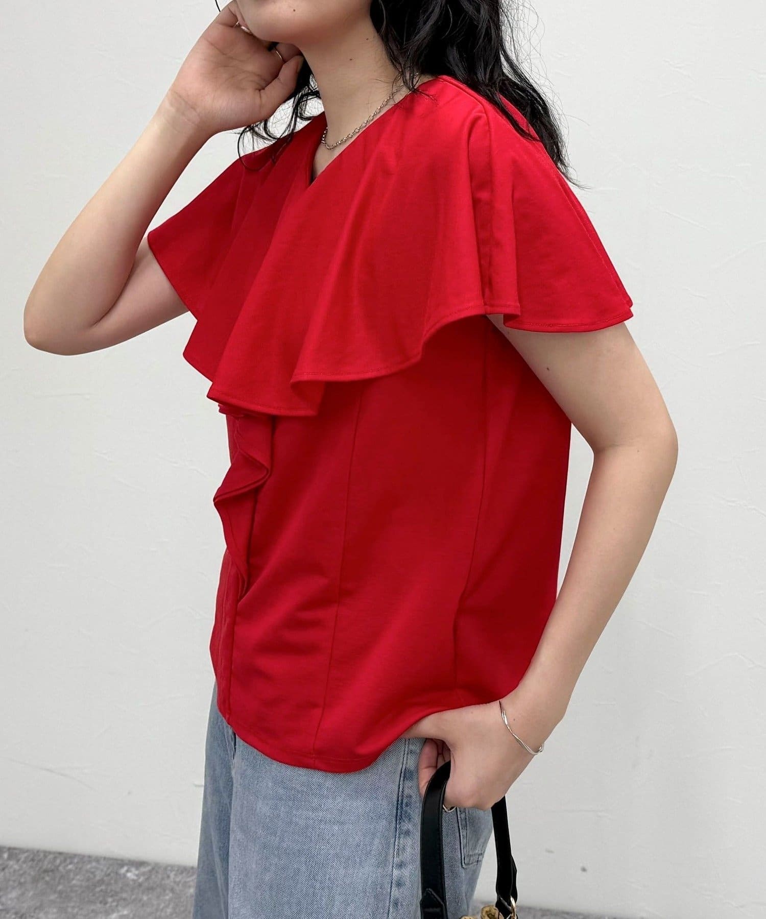 ・ふんわりとしたラッフルが顔周りを華やかに彩るカットソーブラウスです