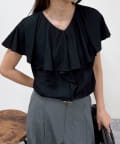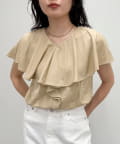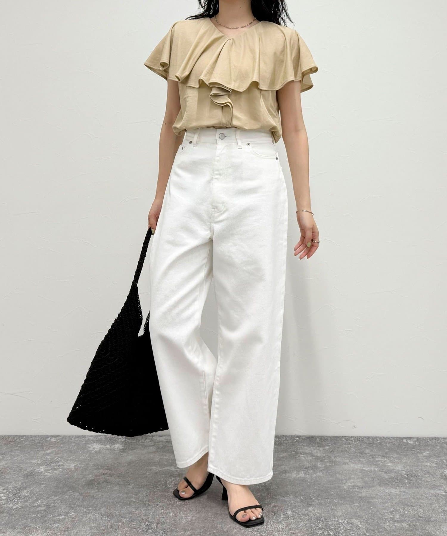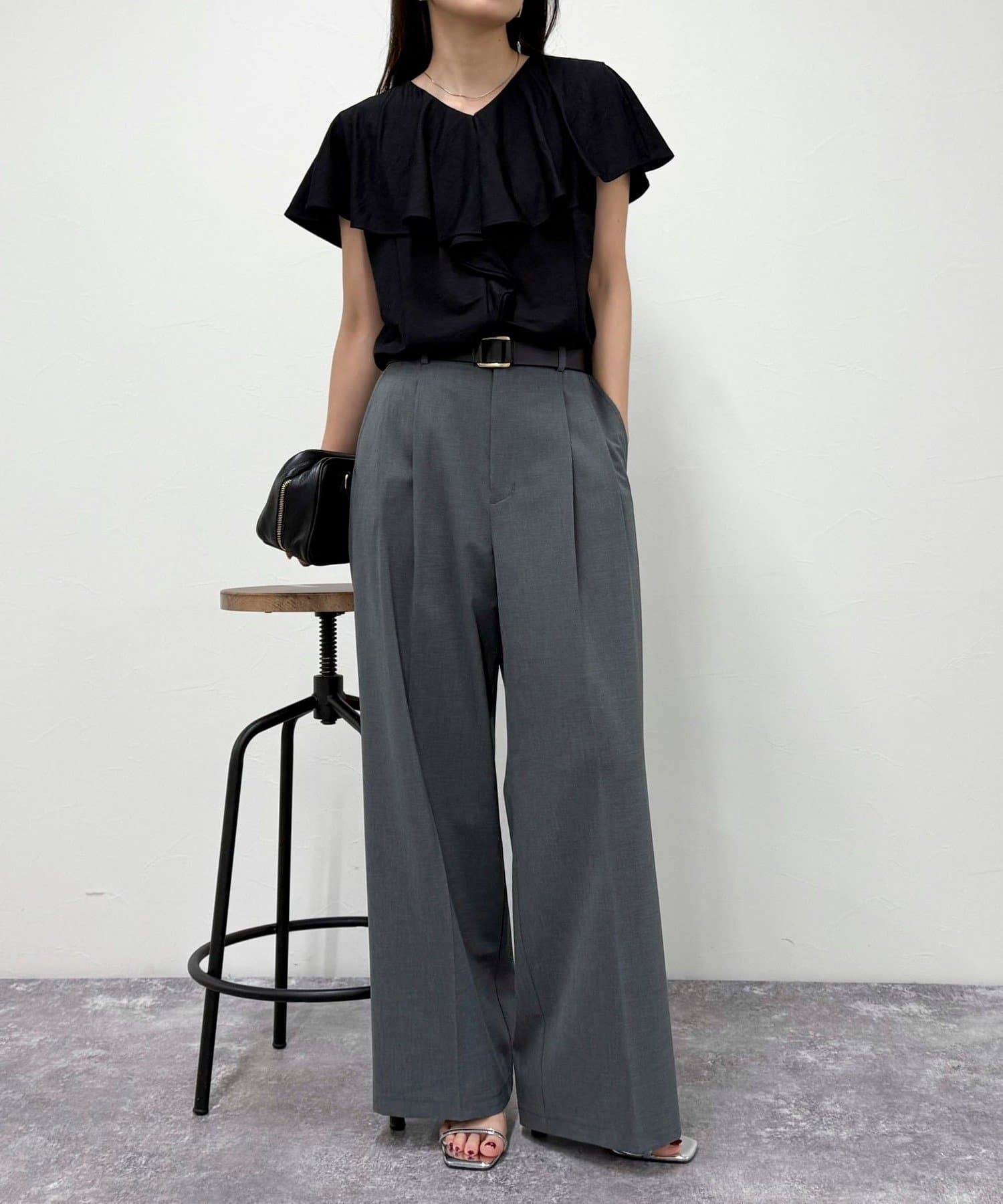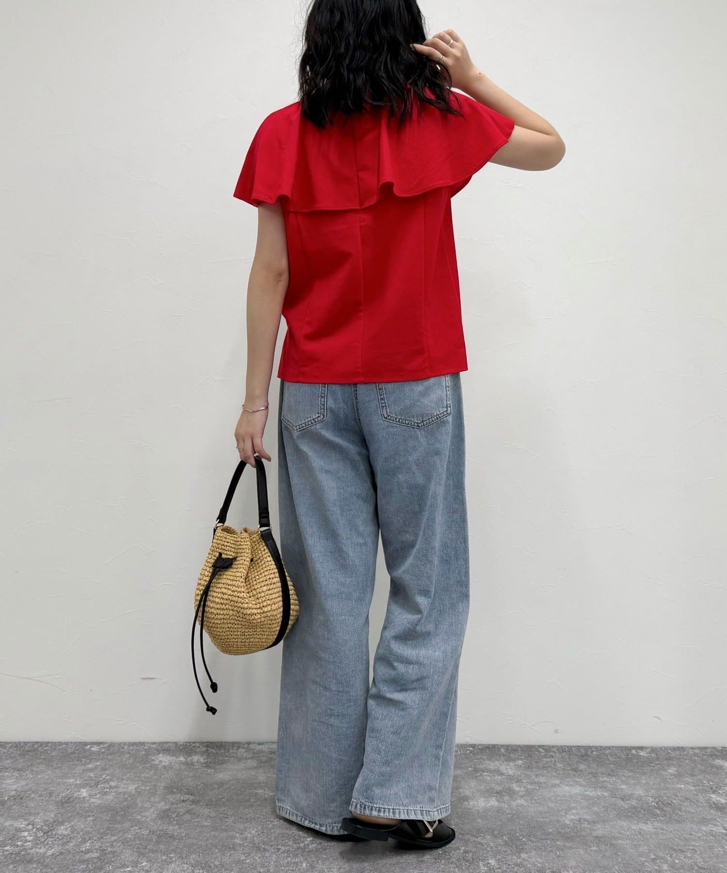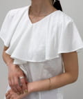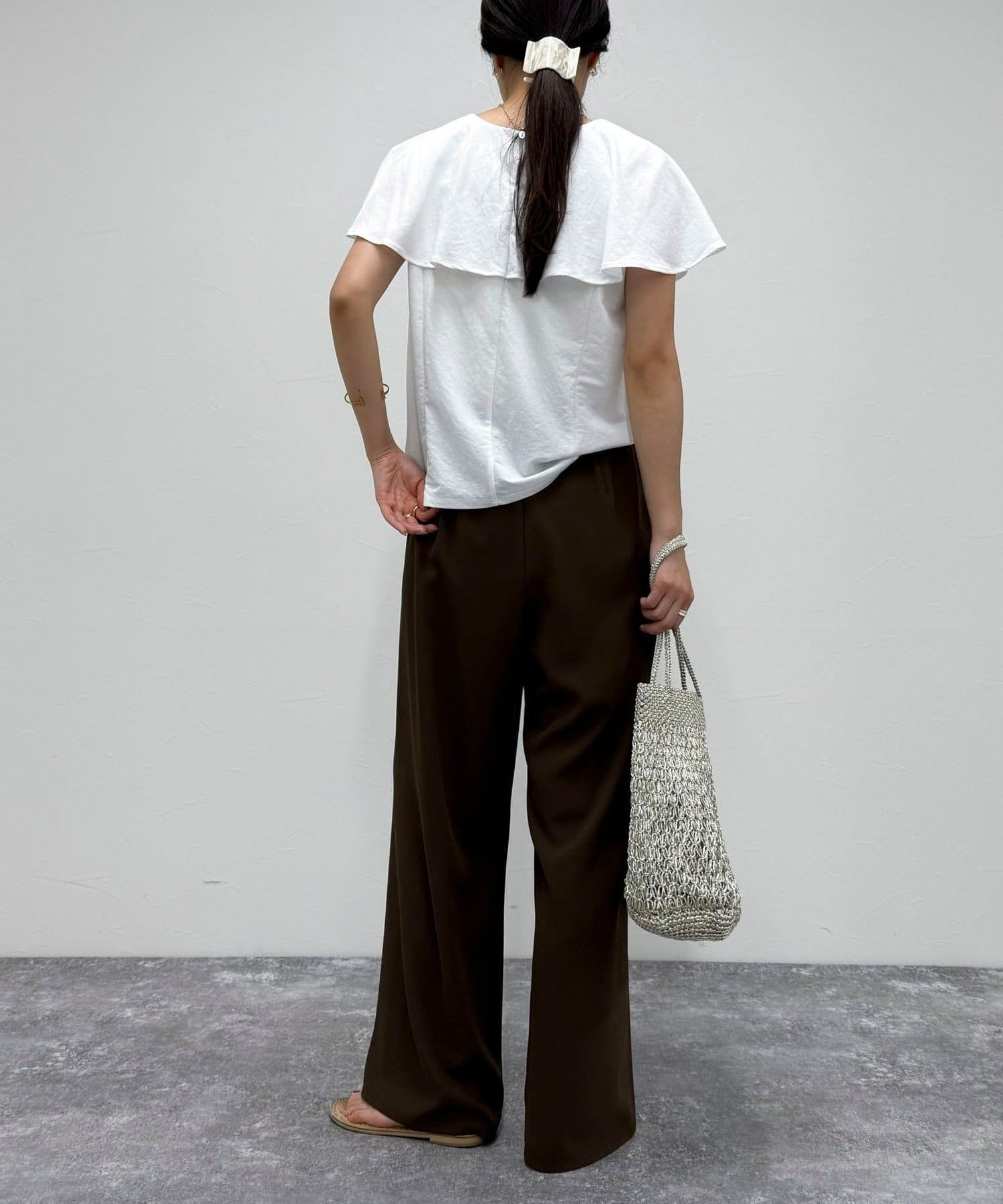 ・ふんわりとしたラッフルが顔周りを華やかに彩るカットソーブラウスです