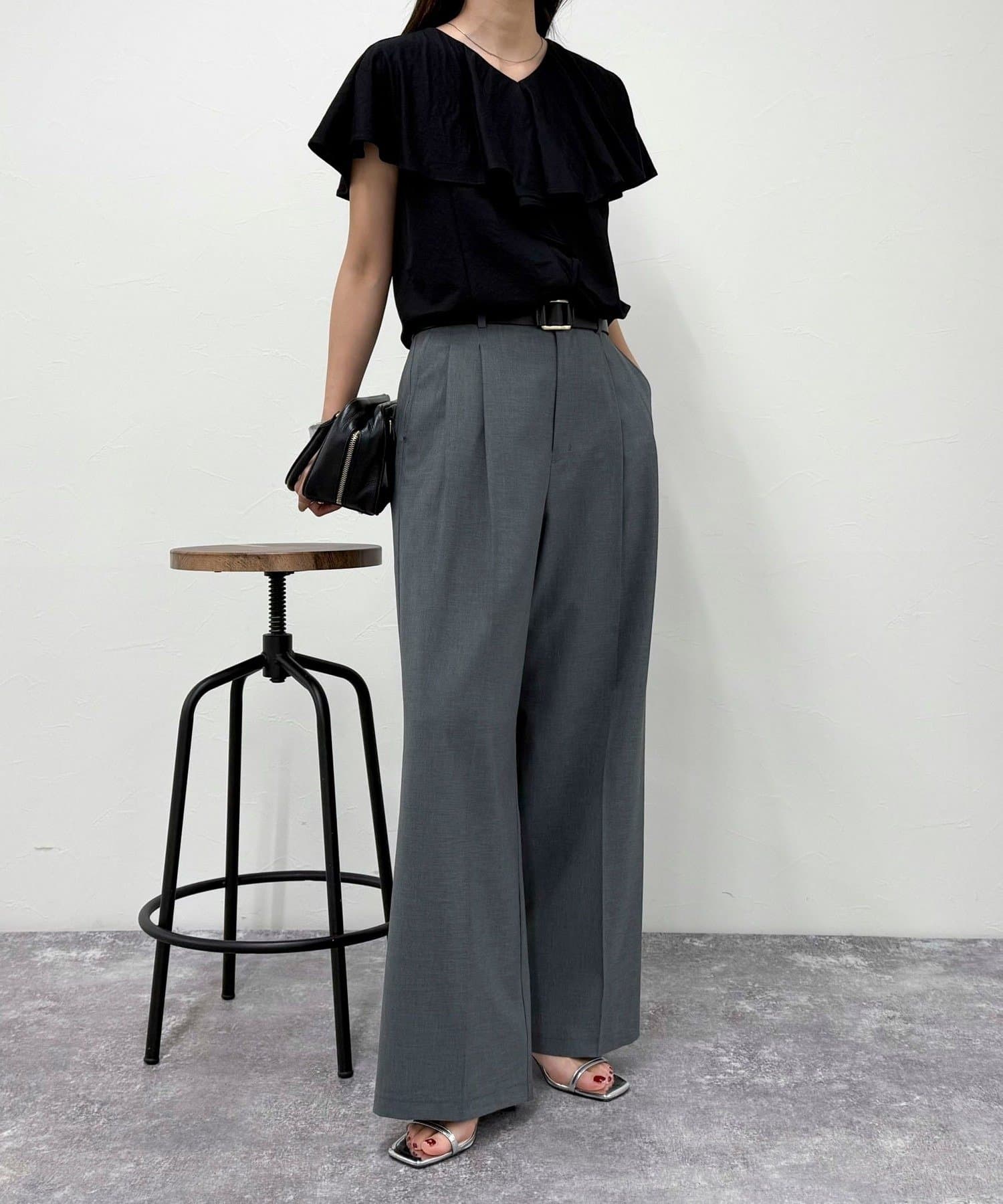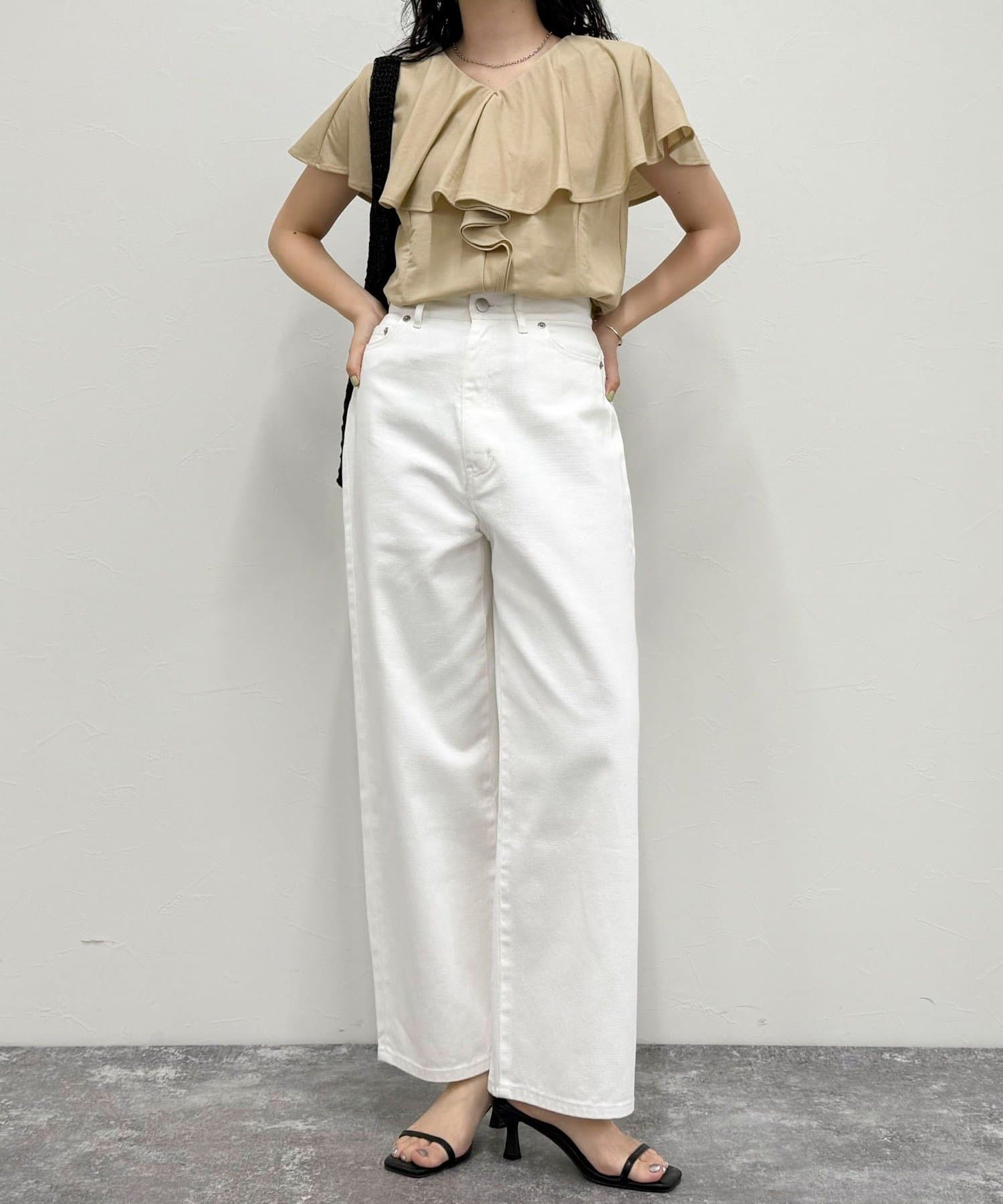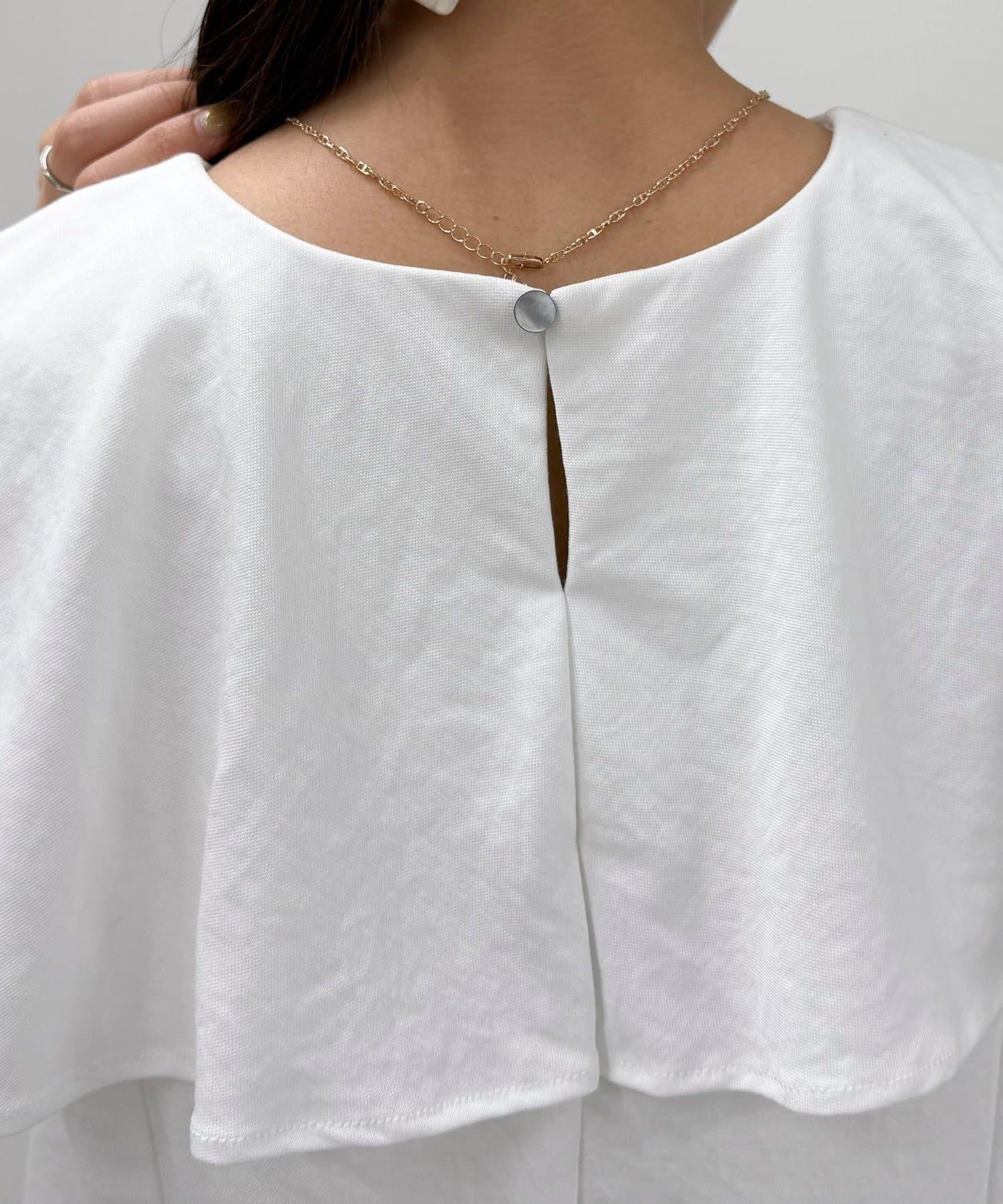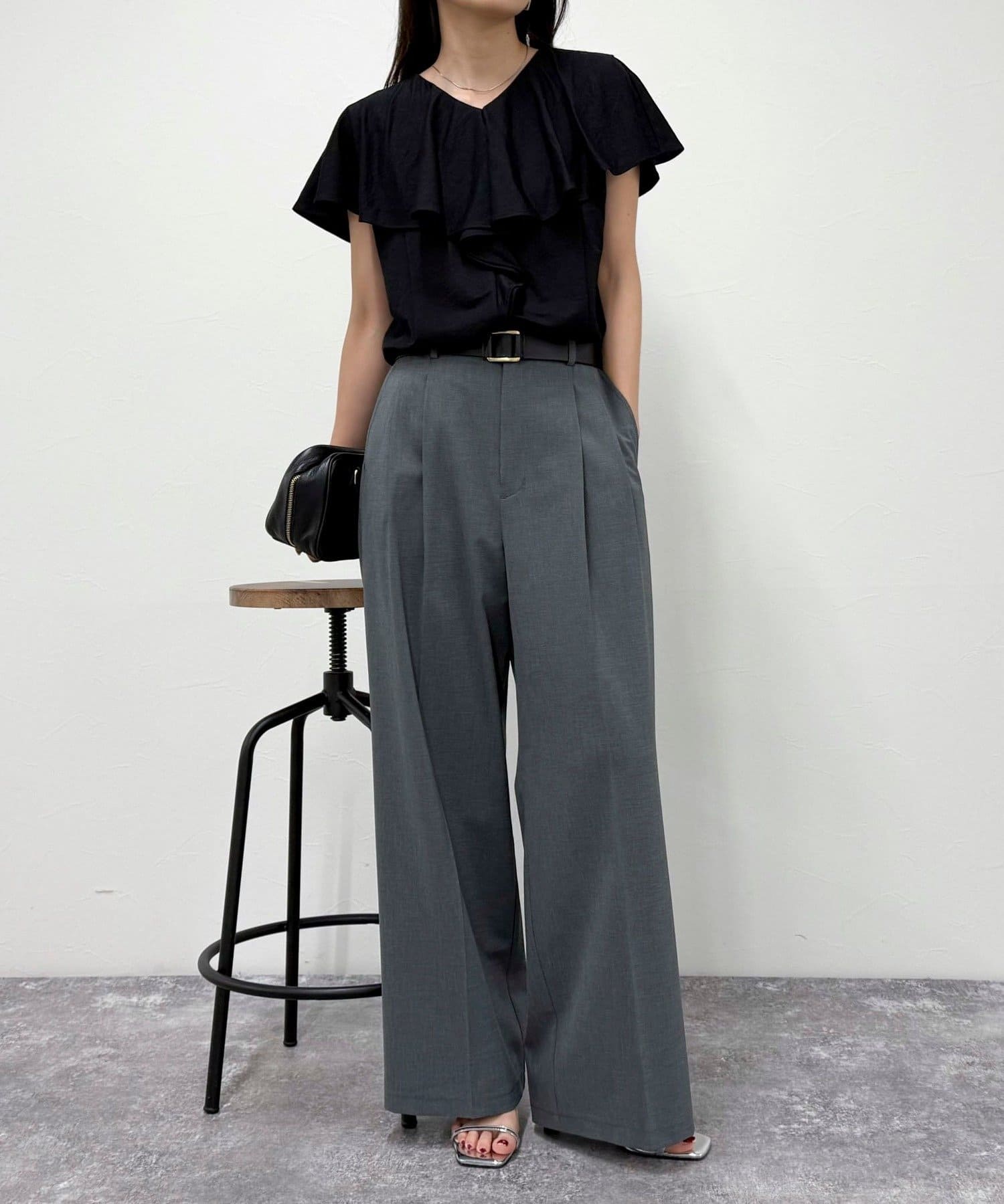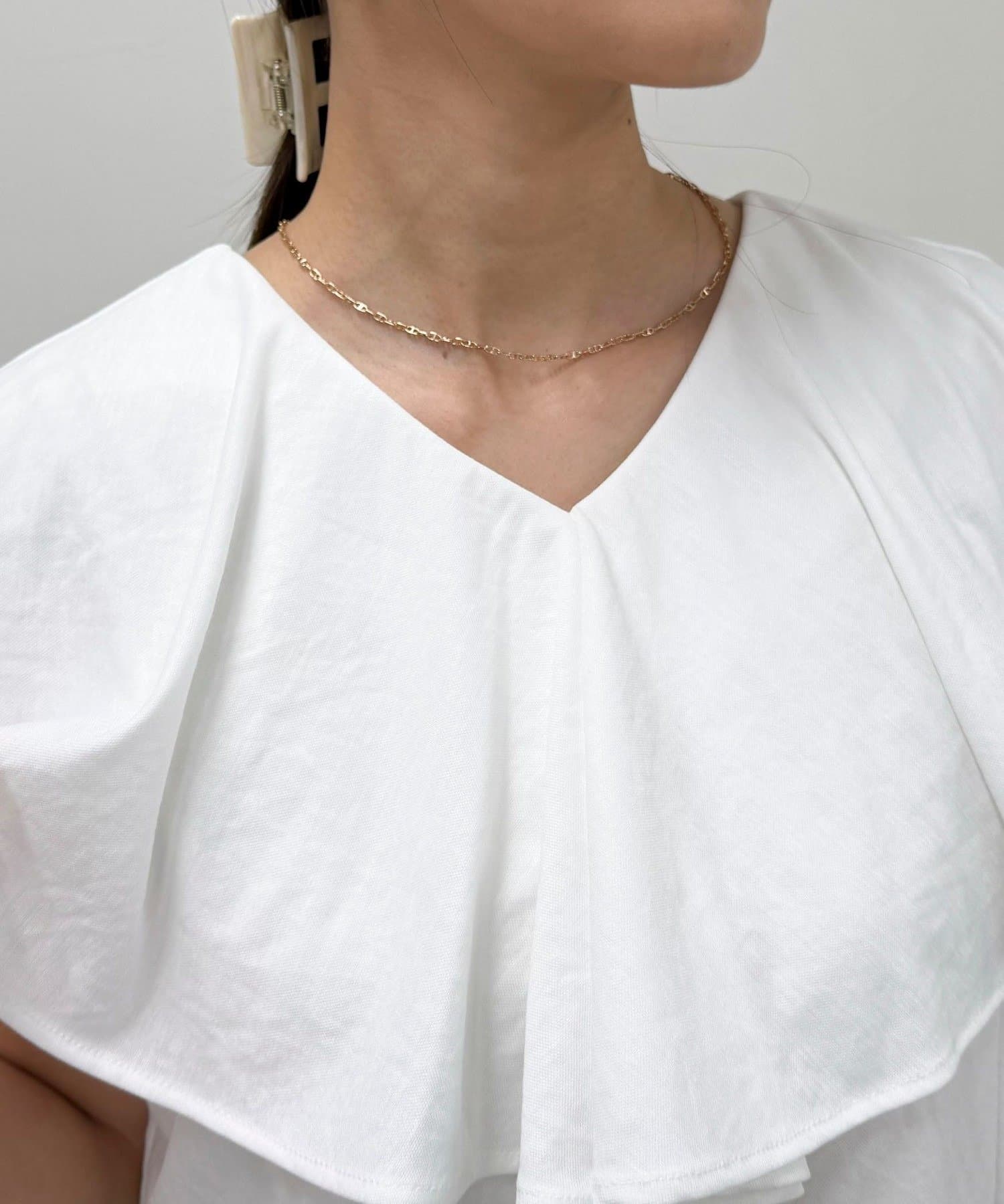 ・ふんわりとしたラッフルが顔周りを華やかに彩るカットソーブラウスです