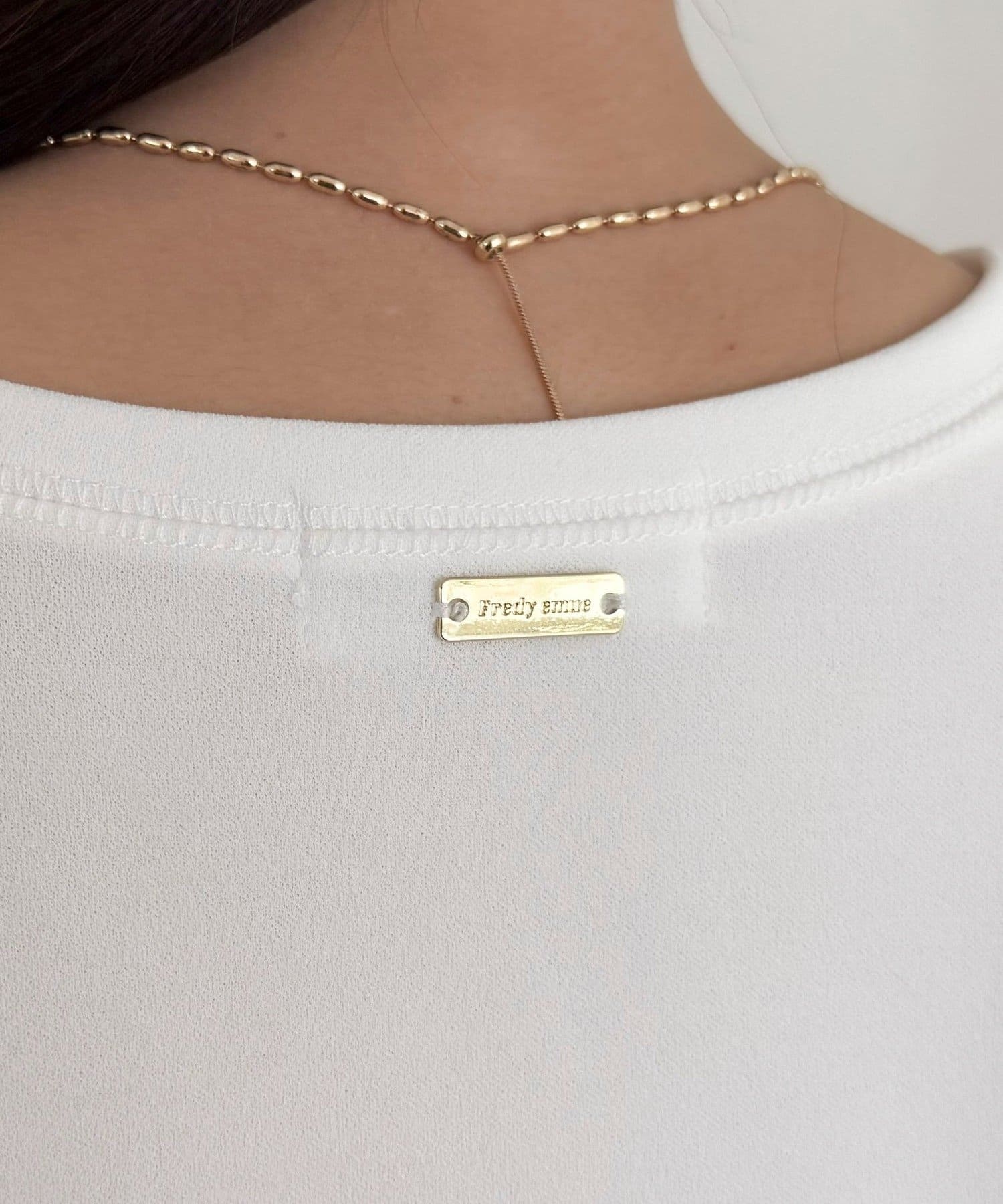 ・後ろに入ったさりげないブランドプレートがアクセントに