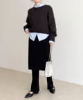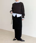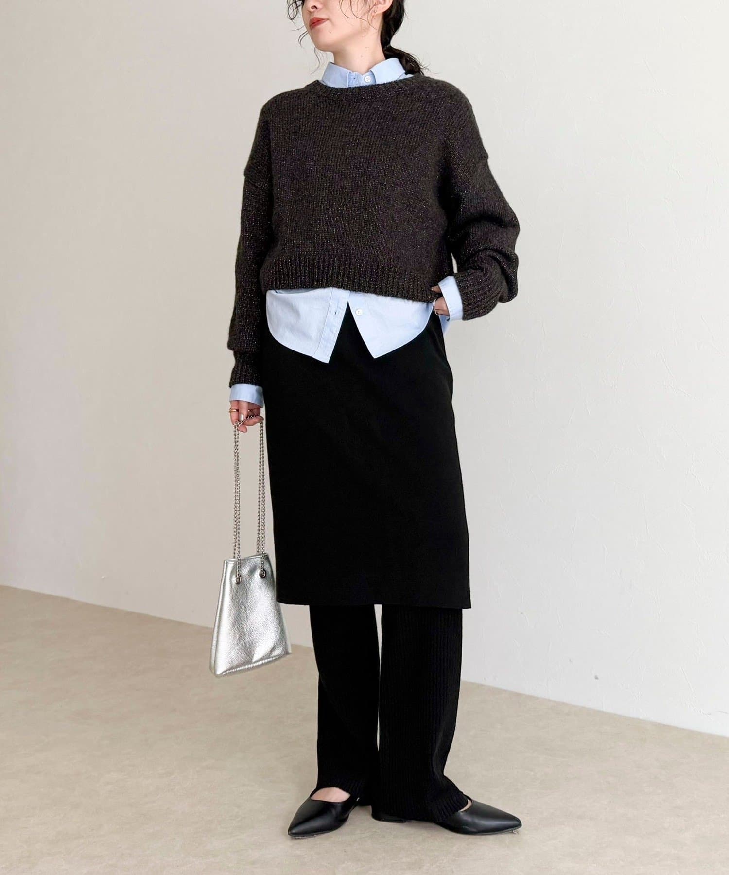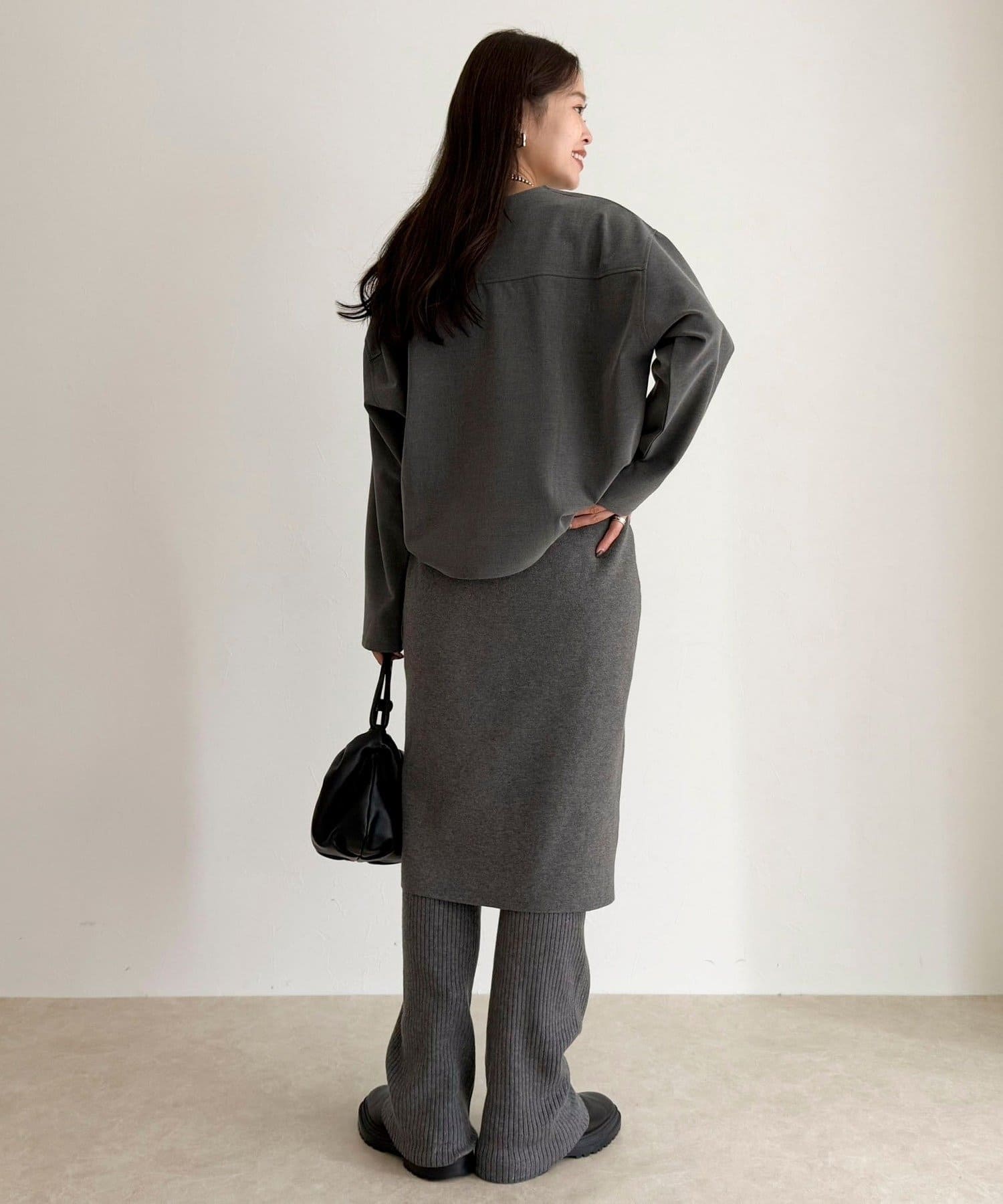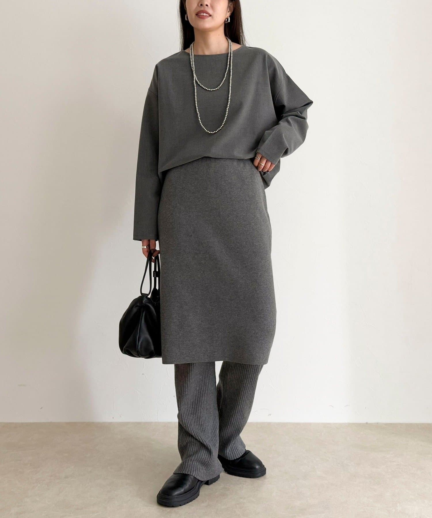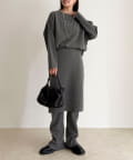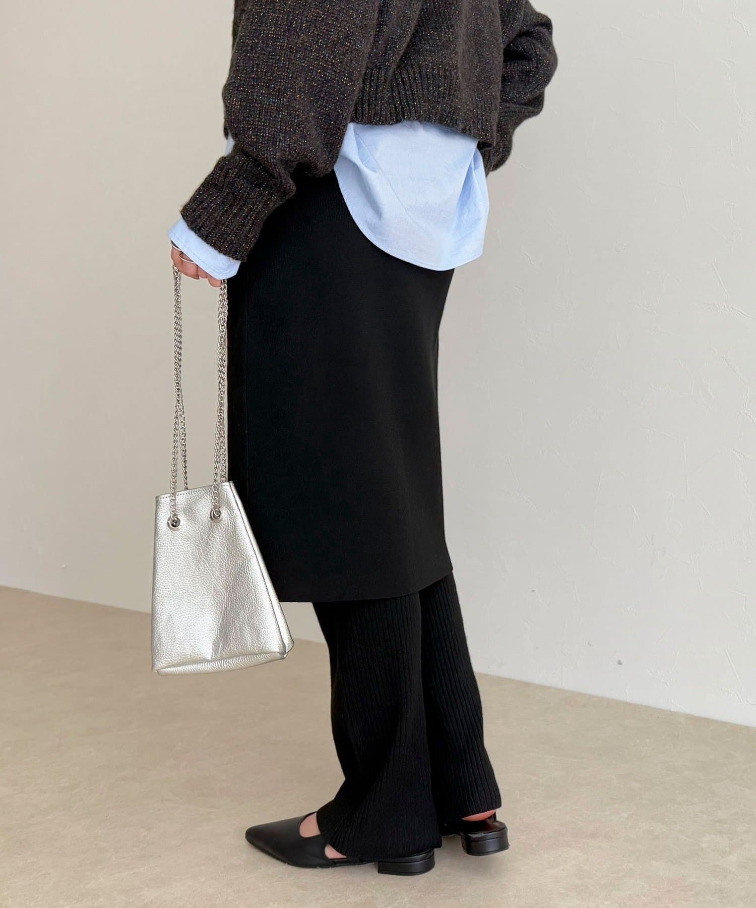 156cmスタッフ(38サイズ着用):リブ素材は伸びが良く窮屈感がなく、長時間の着用でも快適でした!気になるヒップラインをカバーしてくれて、脚がきれいに見えました。トップスをシンプルに合わせるだけで旬のスタイルが完成します◎