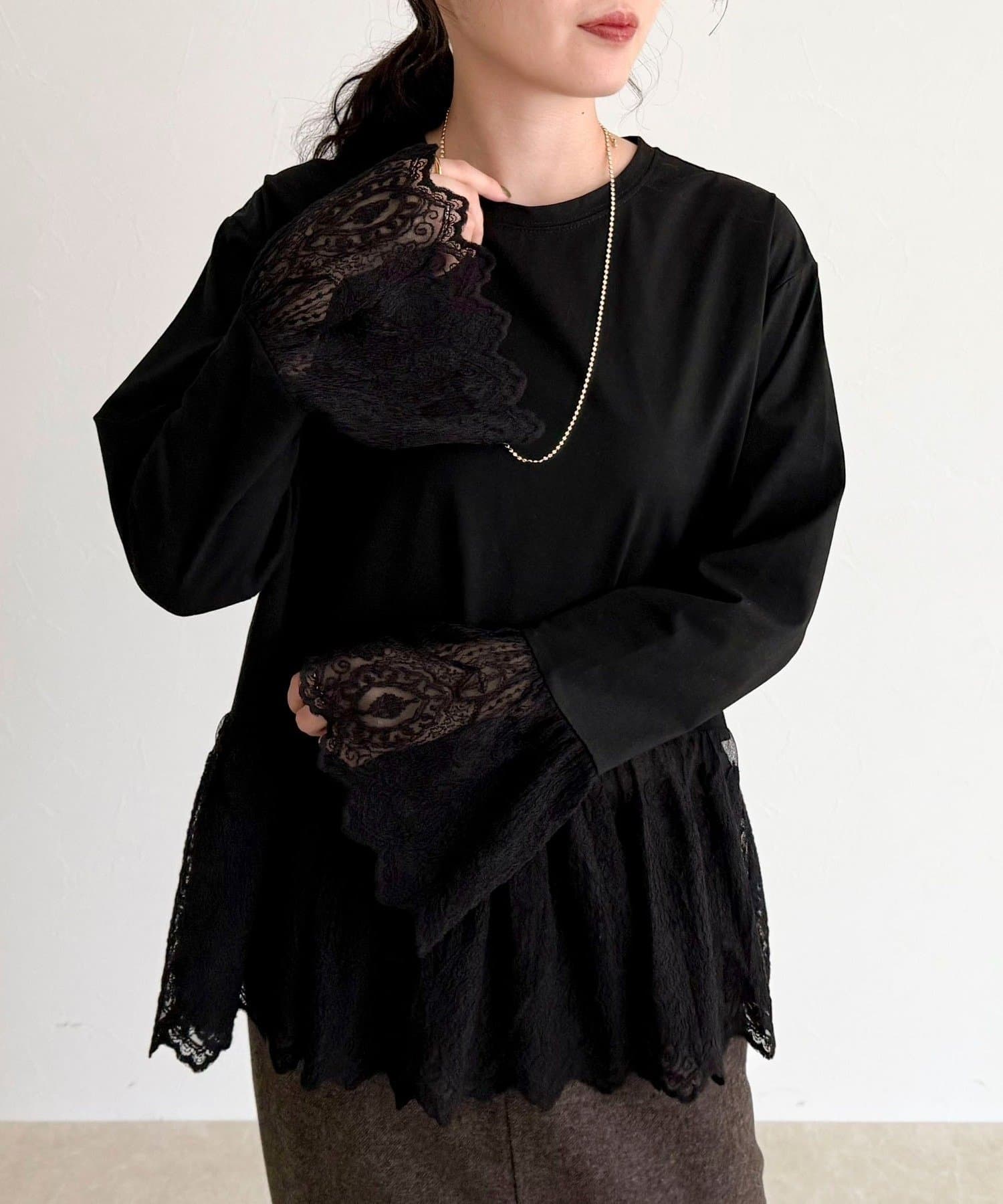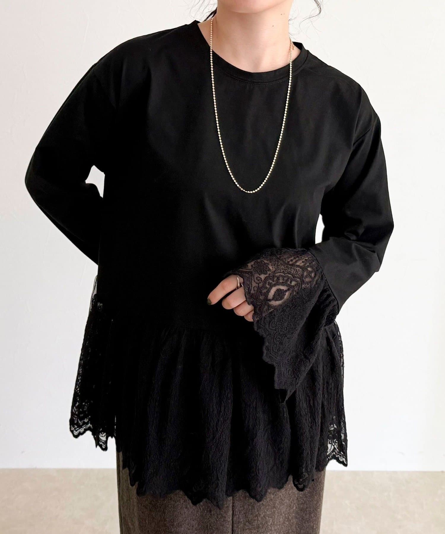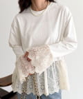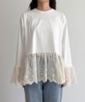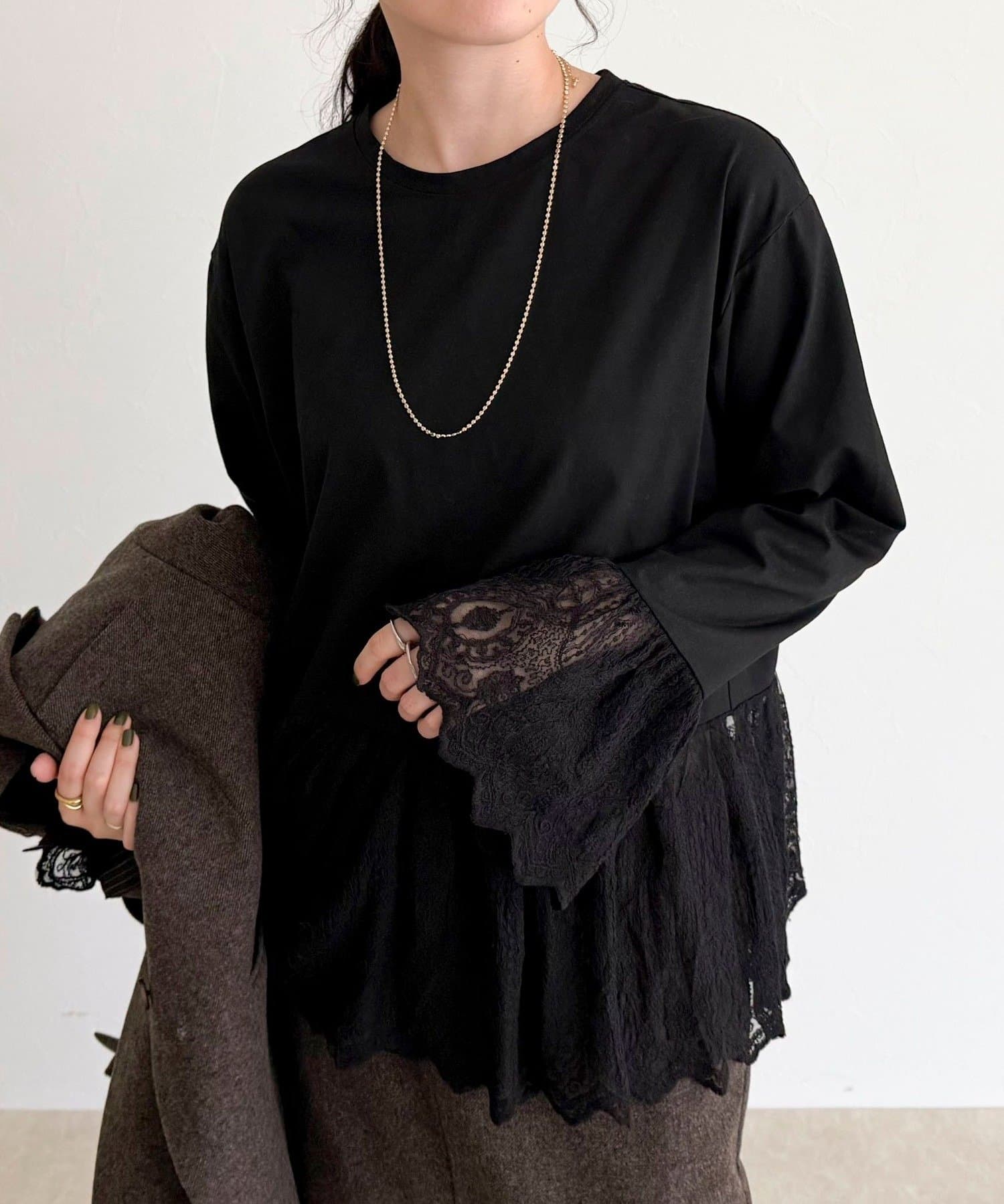 ・レース素材をドッキングした、1枚でフェミニンな印象が完成するロンT