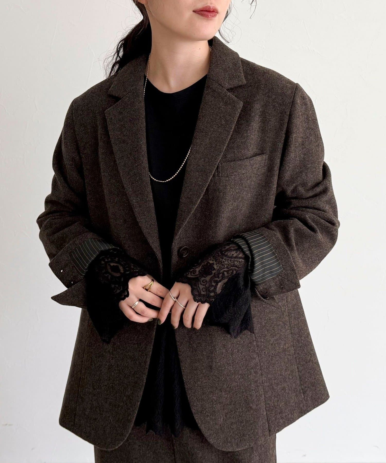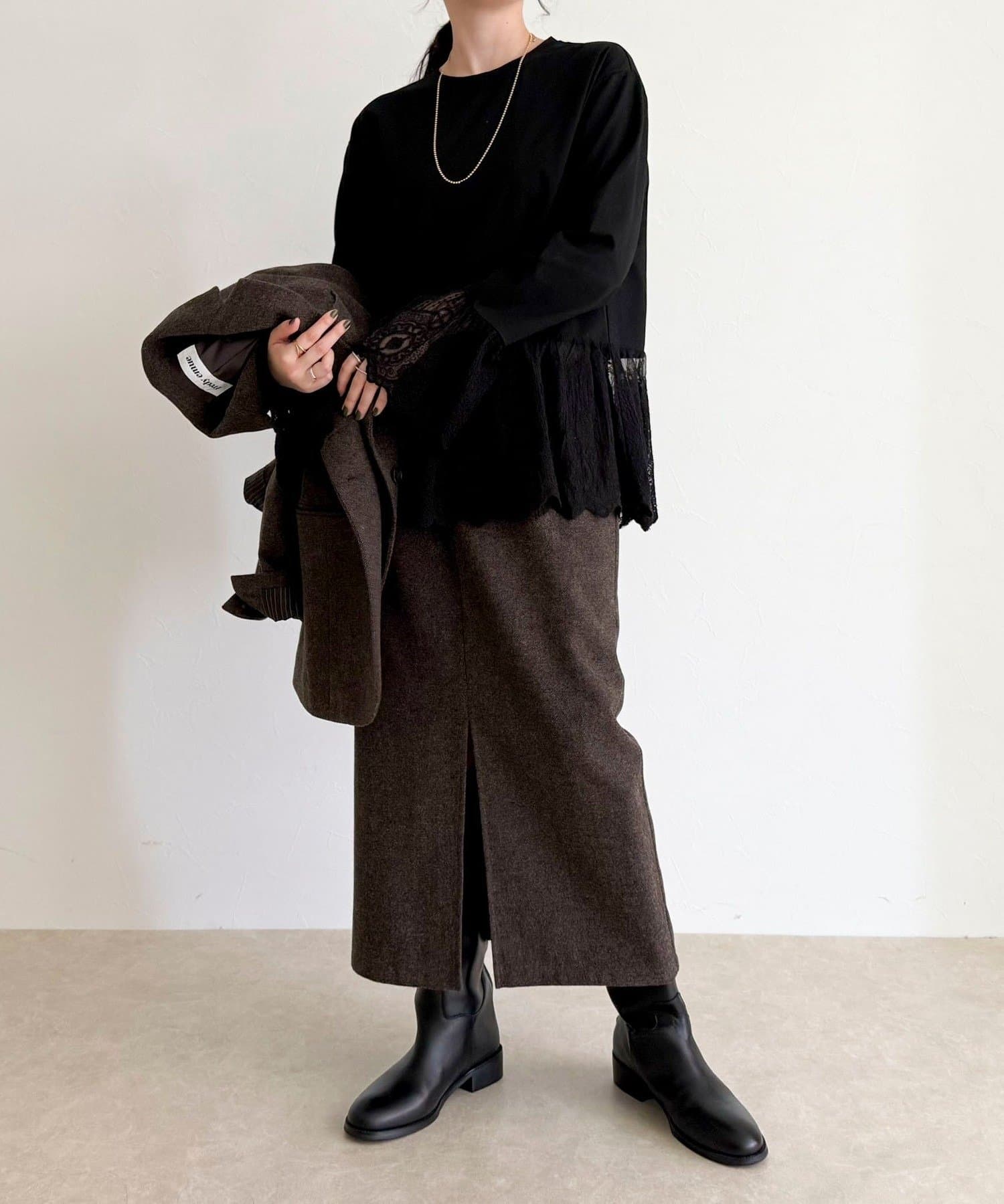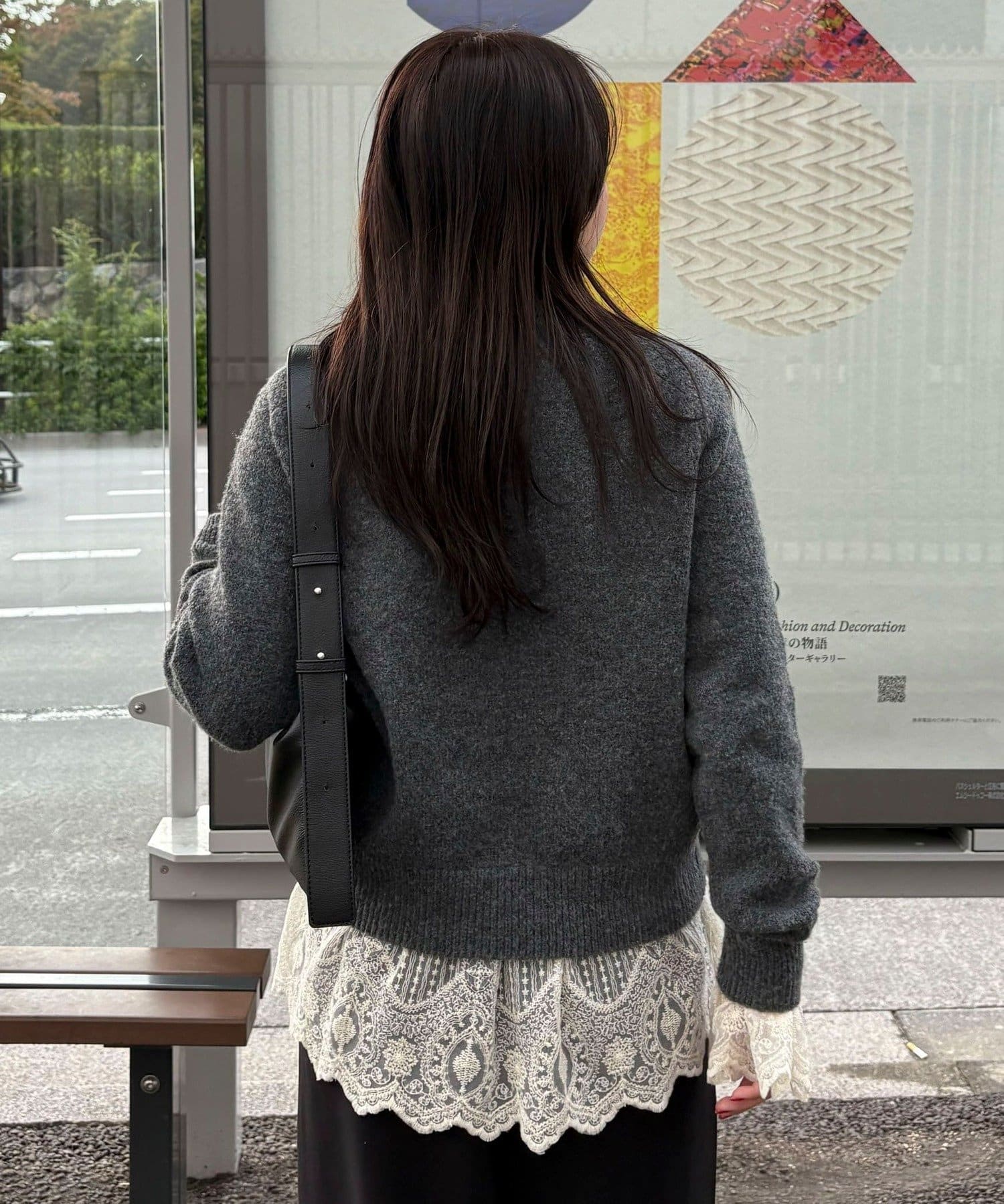 ・裾と袖にあしらったレースがアクセントになり、重ね着風のデザインで着こなしの幅が広がります